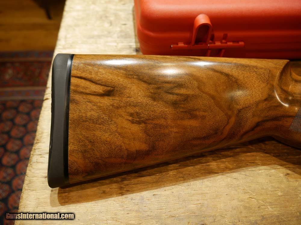 Description: This is a DISPLAY special, tiny blemish in the bluing on the right side of the barrel and tiny spot on front of grip, see last 2 pics. NIB never shot with full warranty. Caesar Guerini Summit Sporting over/under shotgun in 12 gauge. Limited Edition Black receiver. 30" barrels, 2 3/4" chambers. Schnabel fore end. Brand new in box. A beautiful sporting gun, ready for the range. From Caesar Guerini: "Caesar Guerini is offering in a very limited run, a special Black Edition of our Summit Sporting model. Only a select number of dealers will feature this LIMITED offering. Once they are gone, they’re gone! The Summit Sporting is an efficient tool designed to accomplish only one task: breaking targets. Every feature is carefully conceived and executed. The receiver is designed to withstand a lifetime of competitive shooting. When you compare the thick receiver walls and large bearing surfaces with any other over and under, it becomes clear this gun is designed for durability. No matter how unlikely they are to wear out, the trunnions and locking lugs can be easily replaced. The stock includes palm swell, cast off, and toe rotation for either a right or, as an option, a left hand shooter. Each barrel length is designed to balance perfectly while offering stability, and the 12 gauge model features our Maxis Bore and Choke System." Comes new in box with: Hard Plastic fitted locking case, 6 Maxis competition chokes with case and wrench, manuals, velvet stock and barrel sleeves. Please call or email with any questions. Must ship to FFL. ***$35 SHIPPING AND INSURANCE*** ***NO CREDIT CARD FEES*** SOLD Manufacturer: CAESAR GUERINI Condition: NIB Gauge Info: 12 |