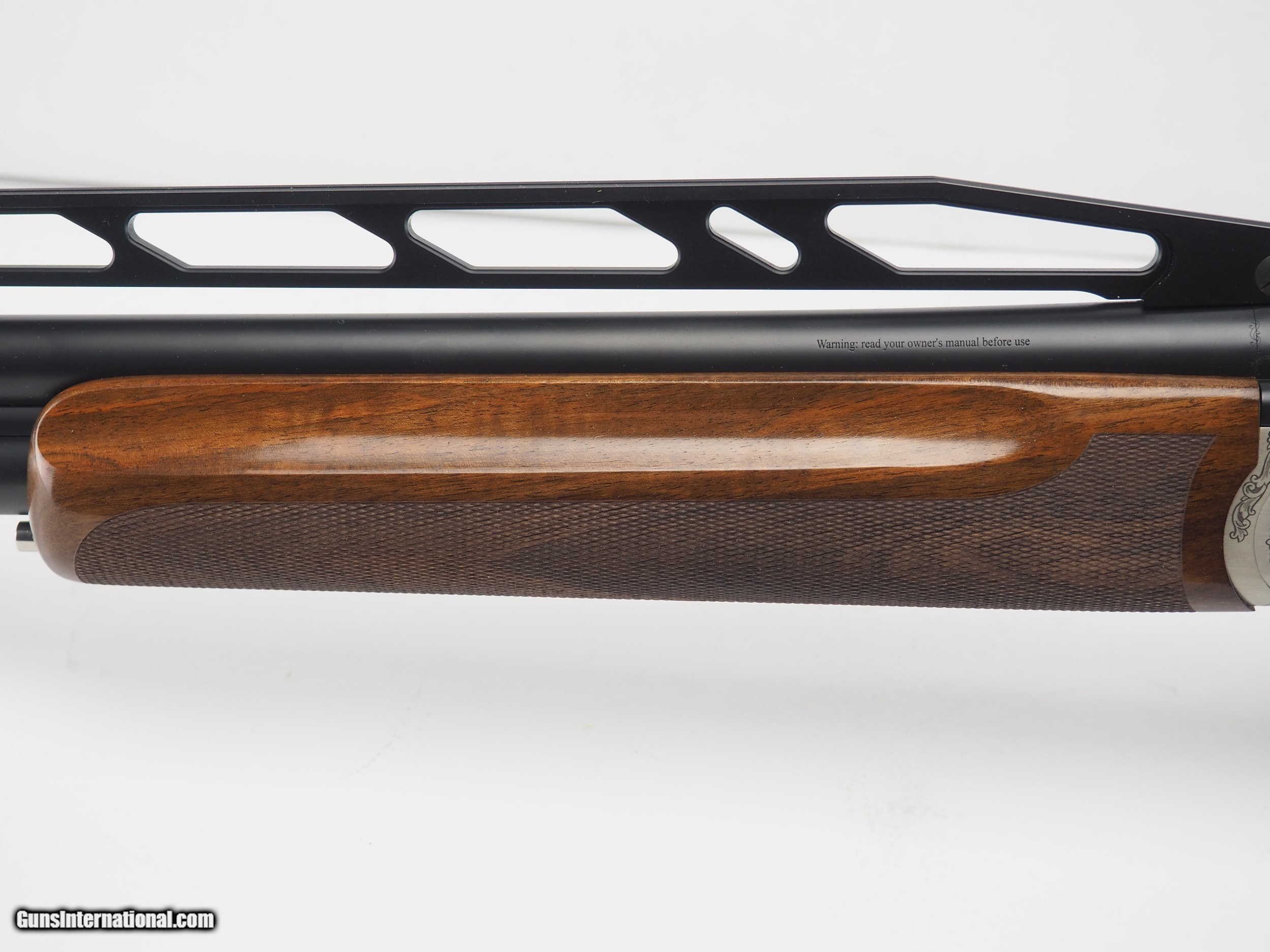 Description: One year old Summit Trap combo with between 1000 and 2000 rounds fired. The only flaw is that the stock finish has faded, which is very common anyway. The previous owner bought it from us, and decided to upgrade with zero complaints about the Guerini. He is the kind of guy whose used guns we will always take in because he takes outstanding care of his stuff. He's just one of those! Included is all the chokes, accsssories, tools, and paperwork. Drop at comb: 1.5" Drop at Monte Carlo: 1.6" Drop at heel: 2.5" Comb to grip: 4.75" Length of pull: 14.75" Cast at heel: .12" Cast at toe: .2" Pitch: 5° Gauge: 12 Barrel length: 32"/34" Receiver finish: Hand polished coin finish with Invisalloy™ protective finish Stock: Monte Carlo with DTS 4 way adjustable comb Finish: Hand rubbed oil Checkering: 26 lines per inch Recoil Pad: Ventilated soft black rubber Chamber: 2.75" Top Rib: Unsingle adjustable from 50/50 to 120; O/U adjustable from 50/50 to 100 Rib Height: 25mm (both) Forcing Cones: 5" Long “DuoCon” Avg. Bore: .735, “MAXIS” bore, chrome lined .735, “MAXIS” bore, chrome lined Chokes: LM, M, IM, LF, Sights: White Bradley style front, Silver center bead Fore-end: Semi-beavertail with finger grooves SOLD |
