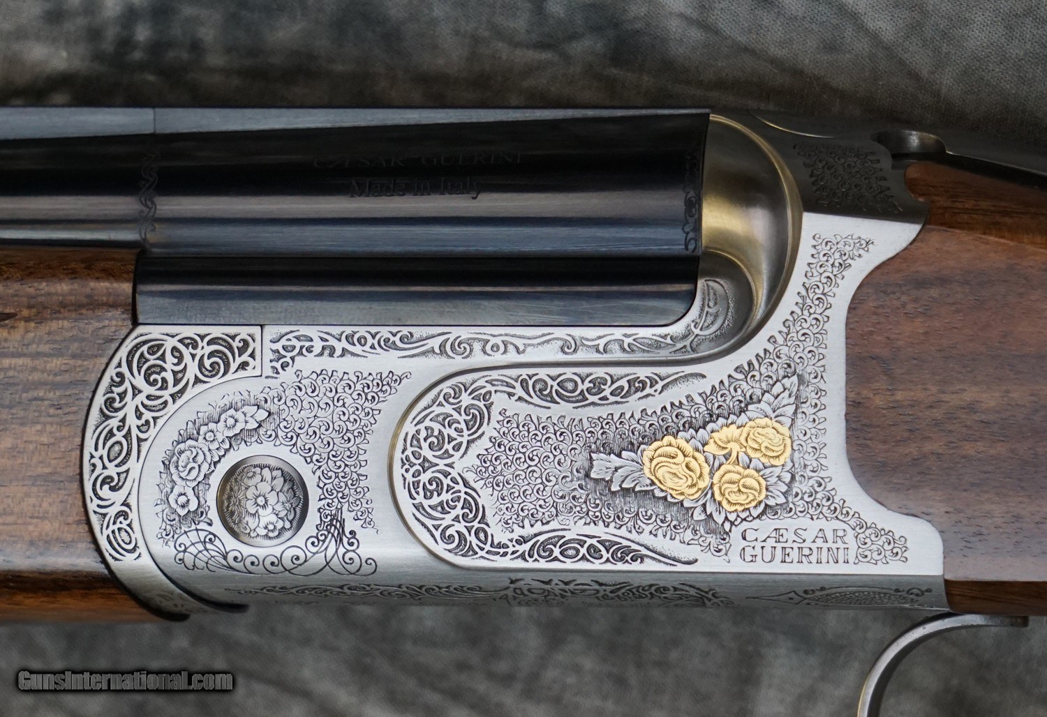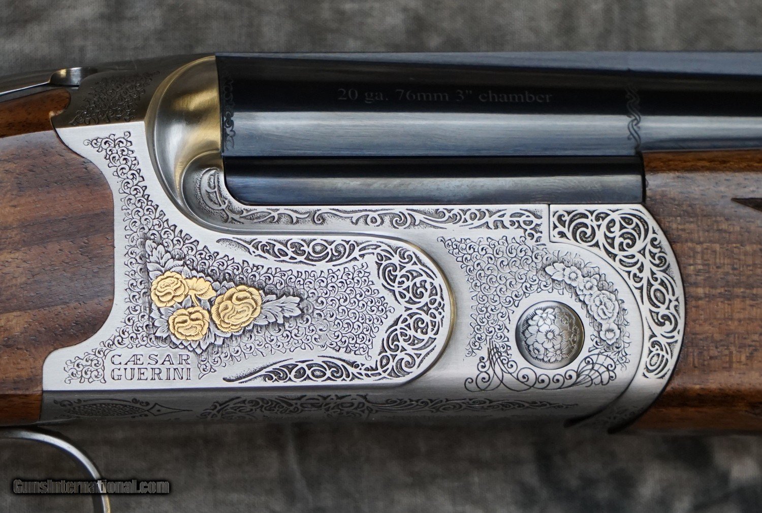 Description: New Caesar Guerini Syren Tempio Field 20GA with 28" factory choke tubed barrels, parallel game rib with solid side ribs. Nitride finished action featuring English rose and scroll engraving with gold inlay, factory selective trigger. Factory Monte Carlo Prince of Wales pistol grip stock to removable wood butt plate with dimensions specially designed for the female shooter, schnabel forearm. Includes factory case, chokes and tools. Call 626-633-1002 for pricing. SOLD Shotgun Gauge: 20 Gauge |