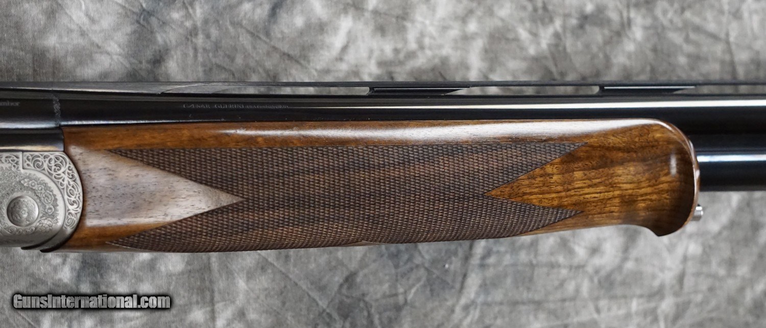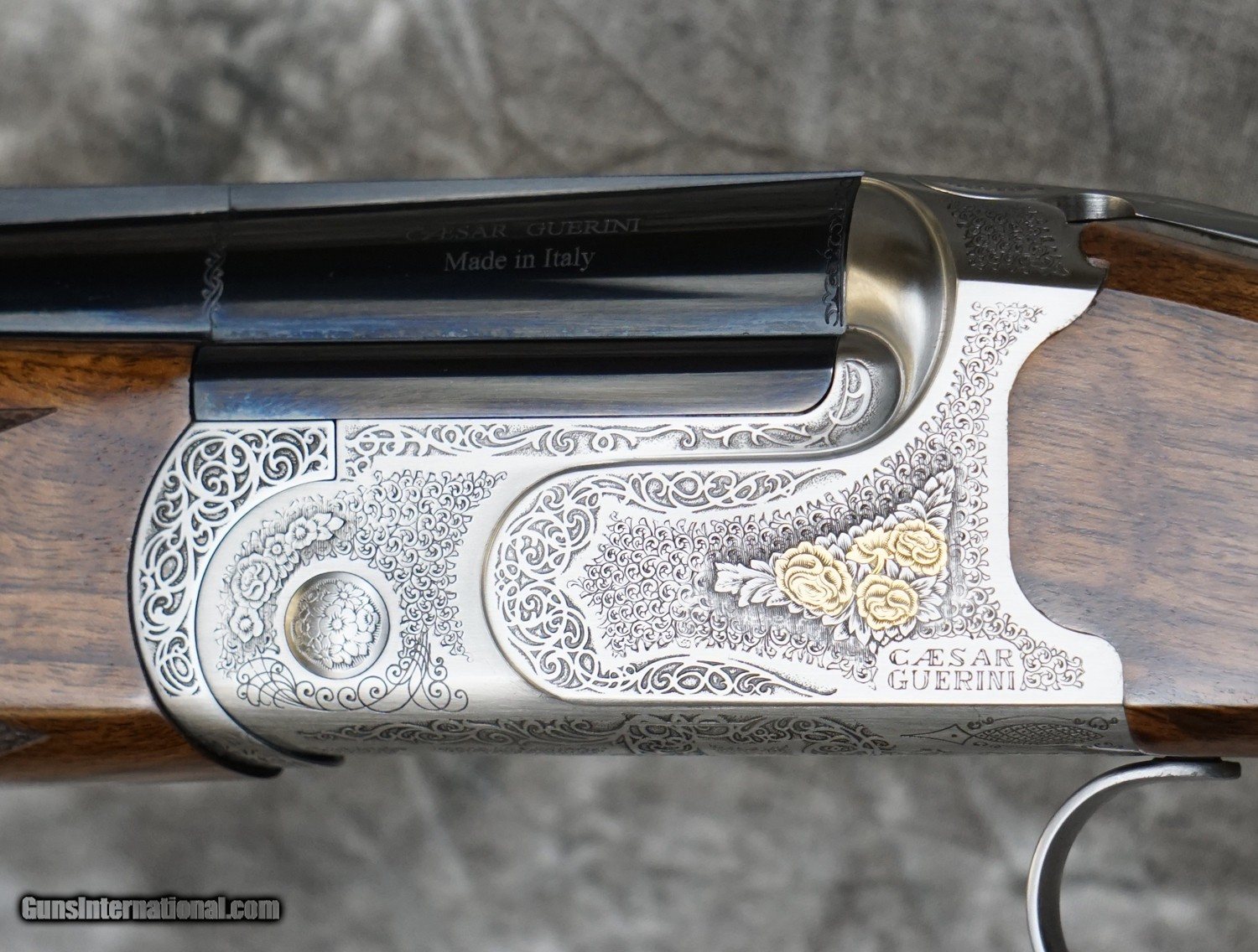 Description: New Caesar Guerini Syren Tempio Field 20GA with 28" factory choke tubed barrels, parallel game rib with solid side-ribs. Nitride finished action featuring English Rose & Scroll engraving with gold inlays. Factory Prince of Wales Monte Carlo game stock with dimensions specially designed for the female shooter, schnabel forearm. Includes factory case, chokes and tools. Call 626-633-1002 for pricing. SOLD Shotgun Gauge: 20 Gauge |