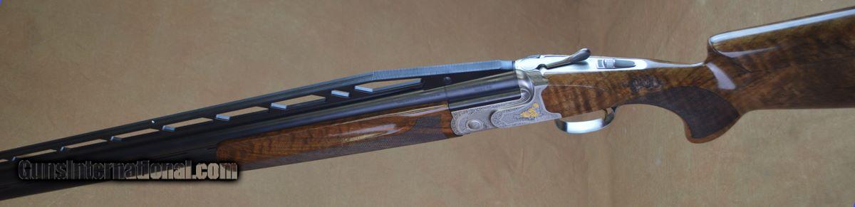 Description: Caesar Guerini Syren Tempio Trap 12GA with 32" factory adj. rib barrels, factory choke tubes. Factory nitride finished receiver with scroll engraving, gold roses. Factory Monte-Carlo adj. comb stock designed specifically for the female shooter. Minor handling marks in stock and forearm. Includes factory case, chokes and tools. SOLD |