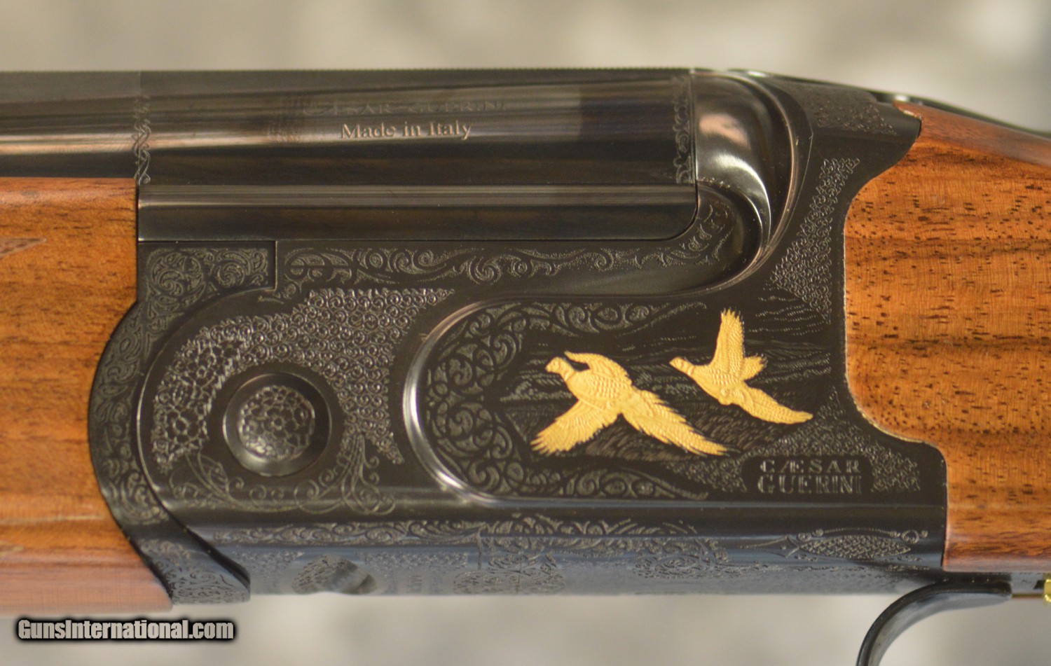 Description: New for 2020 Pacific Sporting Arms Exclusive Caesar Guerini Tempio Blued Edition Sporting 12GA with 30" factory flat tapered rib sporting barrels with factory removable extended choke tubes. Features blued action with fine English scrolls framing game scenes in gold. Factory upgraded pistol grip sporting stock with right-hand palmswell, factory adj. comb and schnabel forearm. Includes factory case, chokes and tools. Call 626-633-1002. SOLD Shotgun Gauge: 12 Gauge |