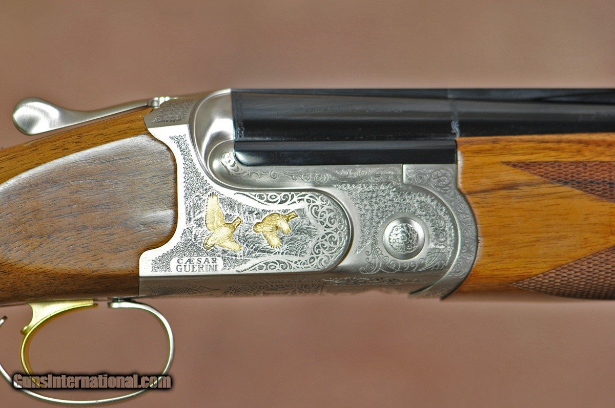 Description: New Caesar Guerini Tempio 12ga. Features factory flush choke tube 28" barrel with flat game rib. Engraved receiver featuring scroll patterns and gold roses. Highly figured left handed Prince of Wales stock with Schnabel forend. Comes in factory case. SOLD Shotgun Gauge: 12 Gauge |