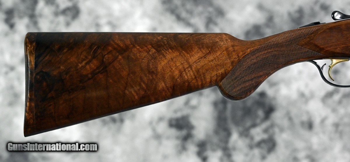 Description: Caesar Guerini Tempio SE Field 20ga. Features factory flush choke tube 28" barrels with flat field rib. Engraved receiver featuring scroll patterns with gold game scenes and fixed selectable trigger. Highly figured right hand Prince of Wales stock with Schnabel forend. Comes in factory case. Pacific Sporting Arms is the largest dealer in high grade shotguns in the world. SOLD Shotgun Gauge: 20 Gauge |