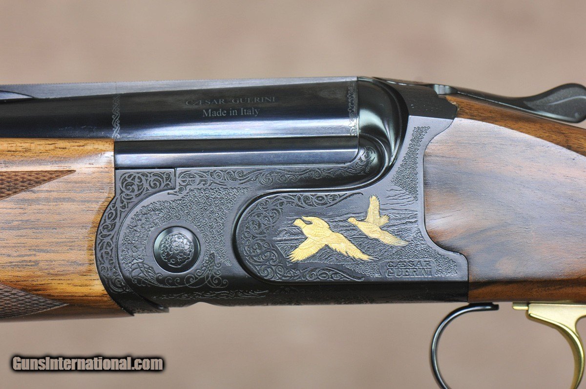 Description: New Arrival only available through Pacific Sporting Arms, Caesar Guerini Tempio Sporter . Features black receiver with Tempio engraving and Gold Pheasant and Grouse. Upgraded wood as part of the package, has a sporting stock with Schnabel fore arm and factory hard case. SOLD |
