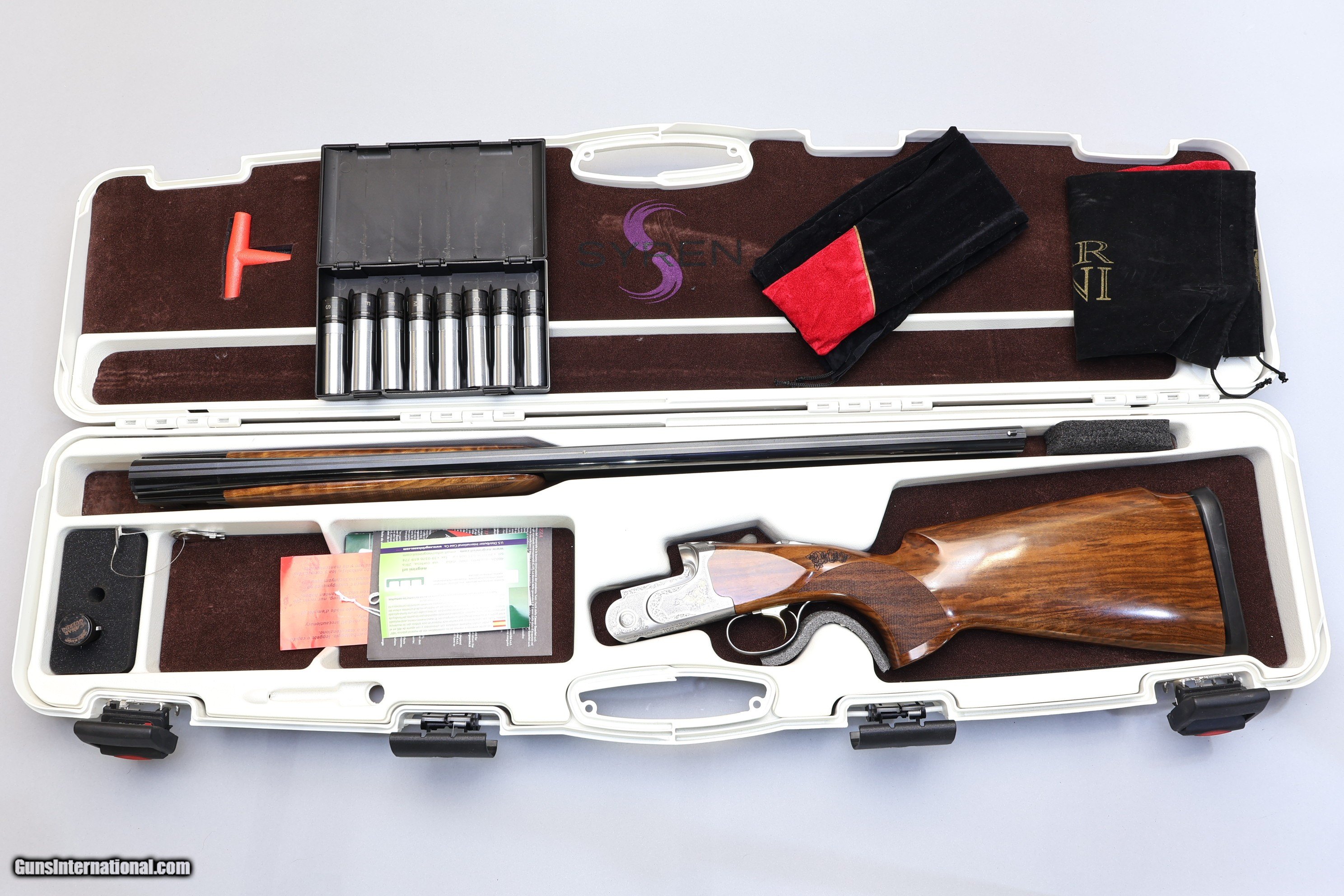 Description: Caesar Guerini Tempio Syren - 12Ga 28" Barrels with 8 multichokes Adapted Specs like 2 ¾" Chambers | 8 Multichokes, Maxis, Extended | 44 ¼" Overall Length | Excellent Condition | Original Maker's Case Caesar Guerini Tempio Syren, a premium Italian-made 12 Ga over/under shotgun, features 28" barrels, 2 ¾" chambers, and a ventilated rib. It wears a walnut Monte Carlo pistol-grip stock and an adjustable trigger, manual safety and barrel selector for precise, versatile field performance. The gun ships with eight extended Maxis choke tubes and a choke tool in the original case, providing a complete, ready-to-go package. The gun is in excellent condition with minimal use. It comes in the maker's white case and includes the eight extended Maxis choke tubes with choke tool. This Tempio Syren features a Monte Carlo stock with a pistol grip and right-hand cast; DAC to top ridge is 1 7/8" and to bottom ridge is 2 1/8"; LOP is 14" and LOP to Wood is 13 3/4". Overall length is 44 ¼" and weight is 7 lbs 12 1/2 oz. It was manufactured in Italy in 2015 and is offered with an FFL license requirement.