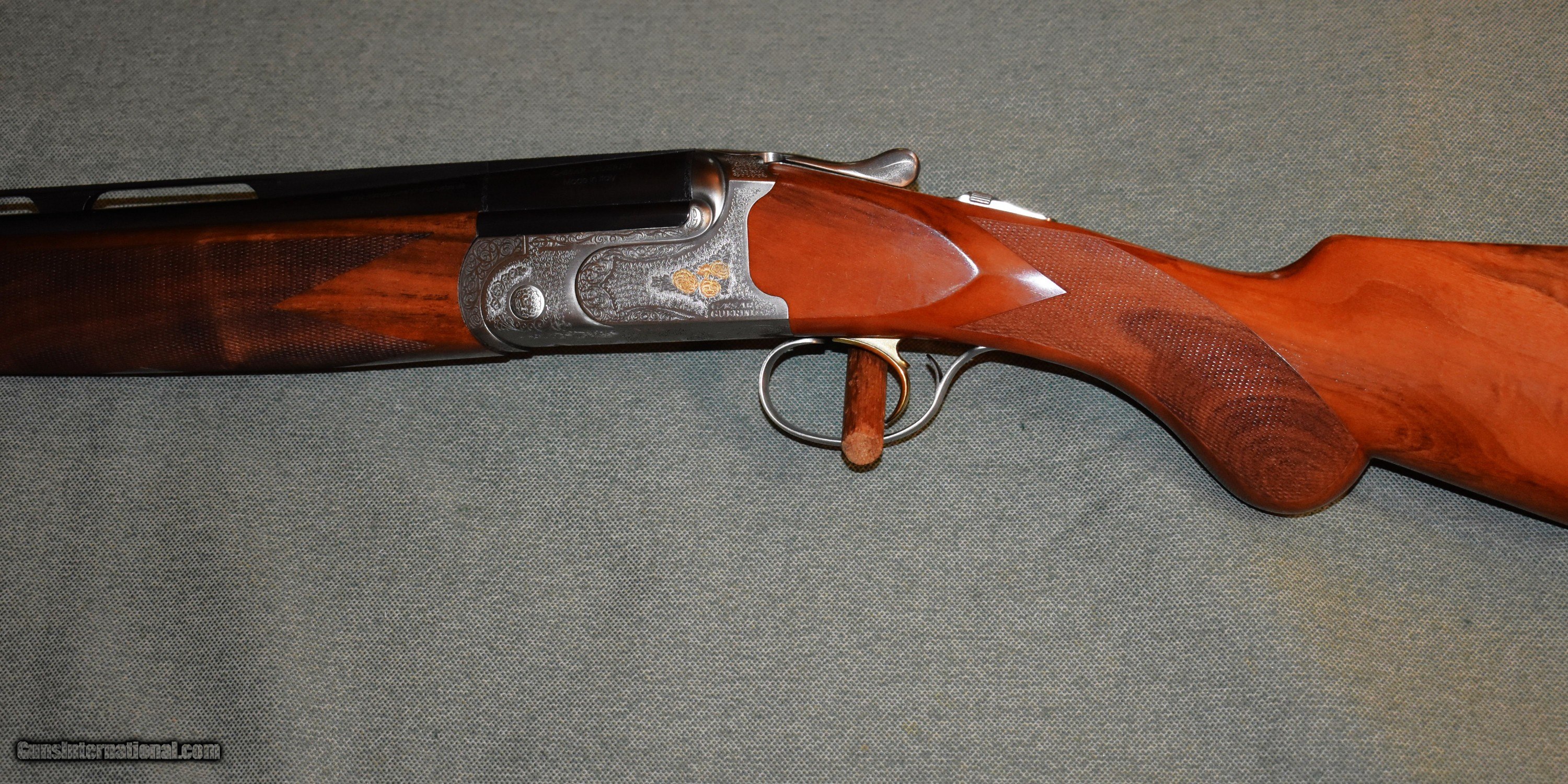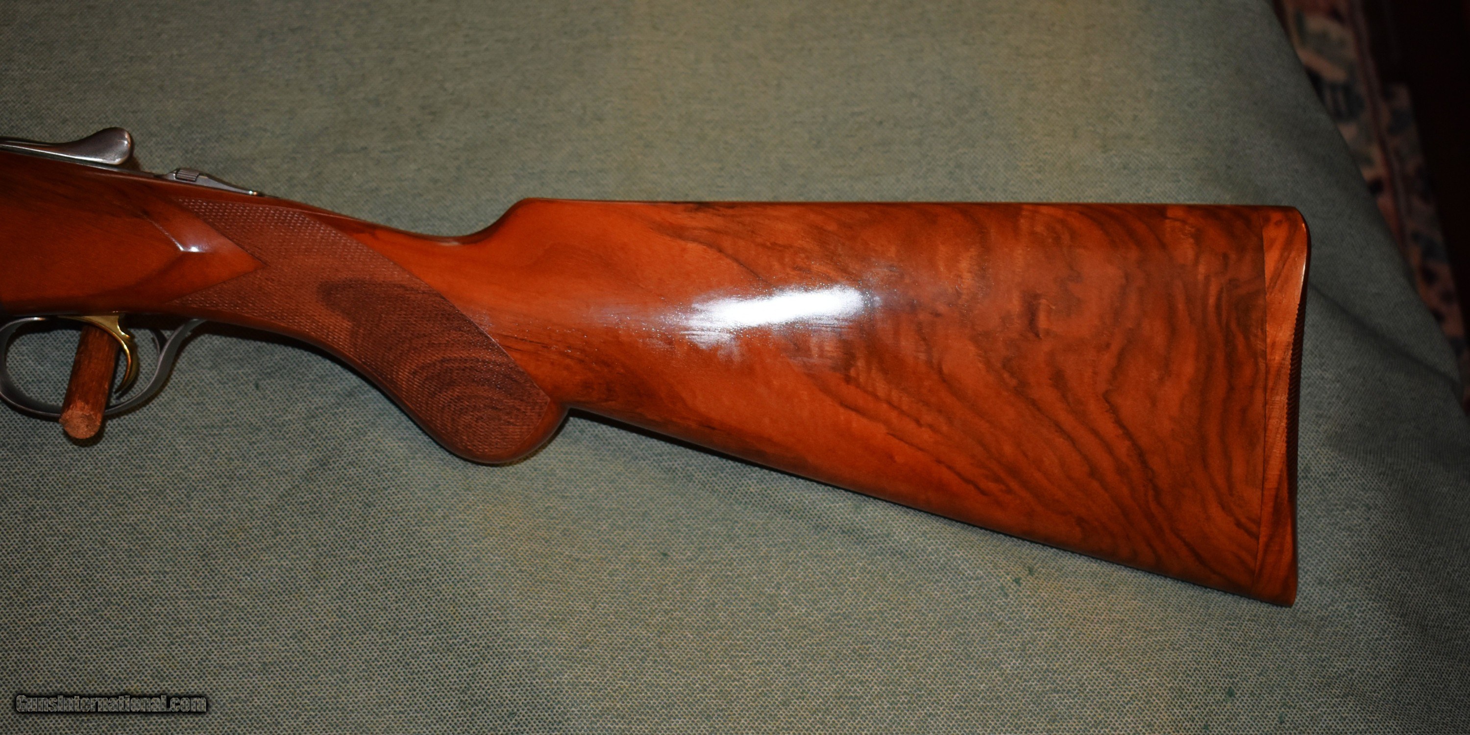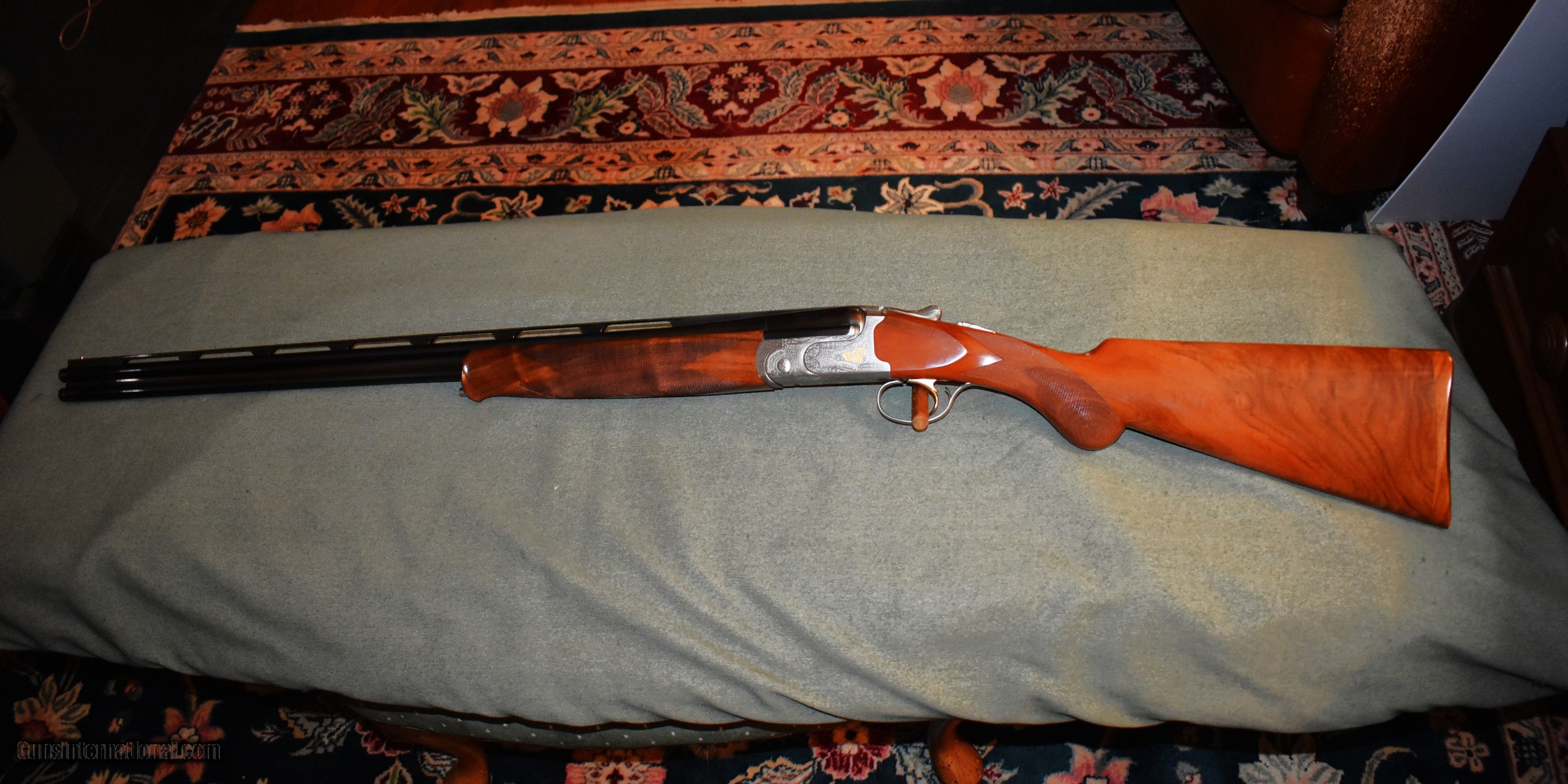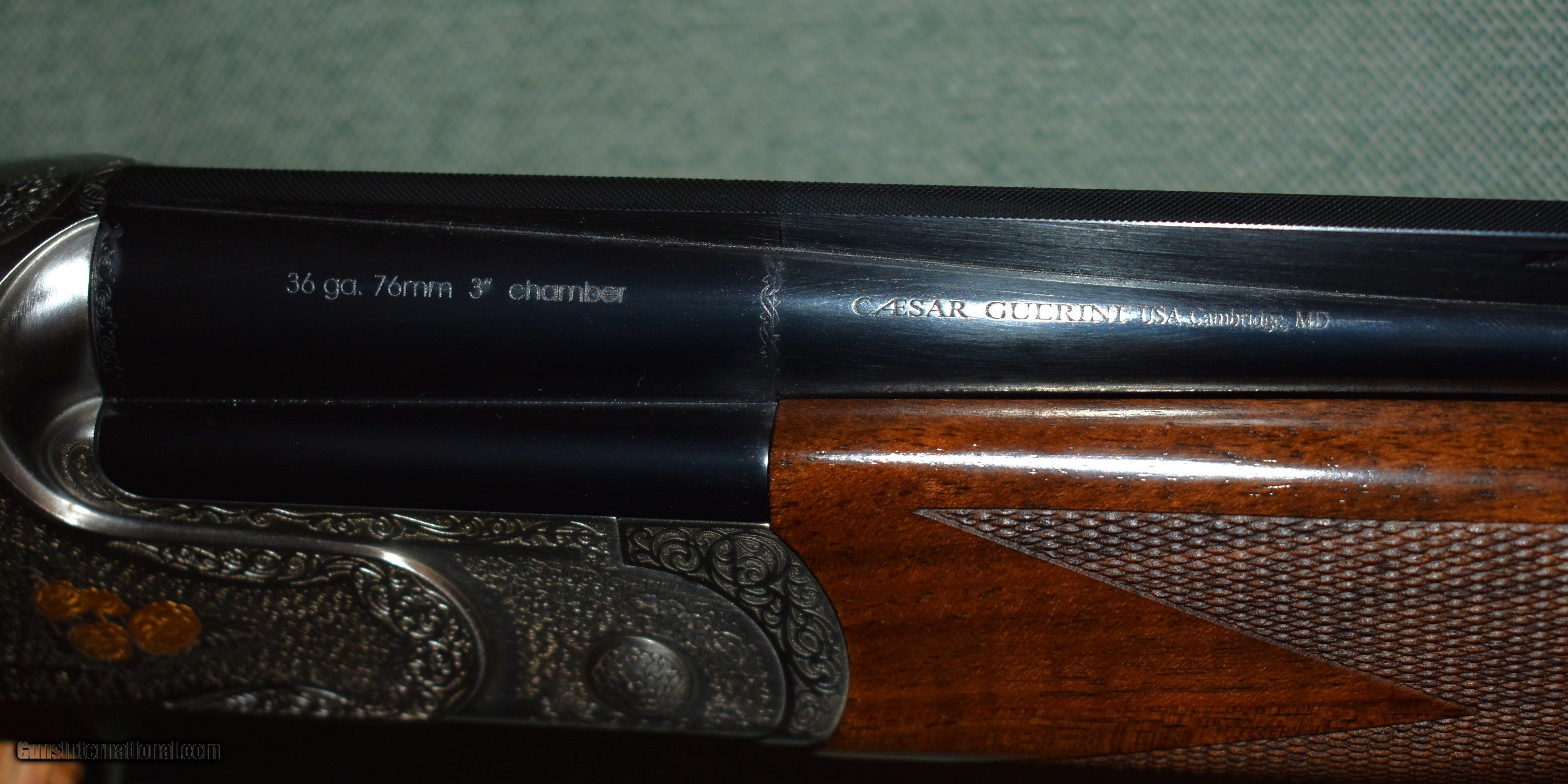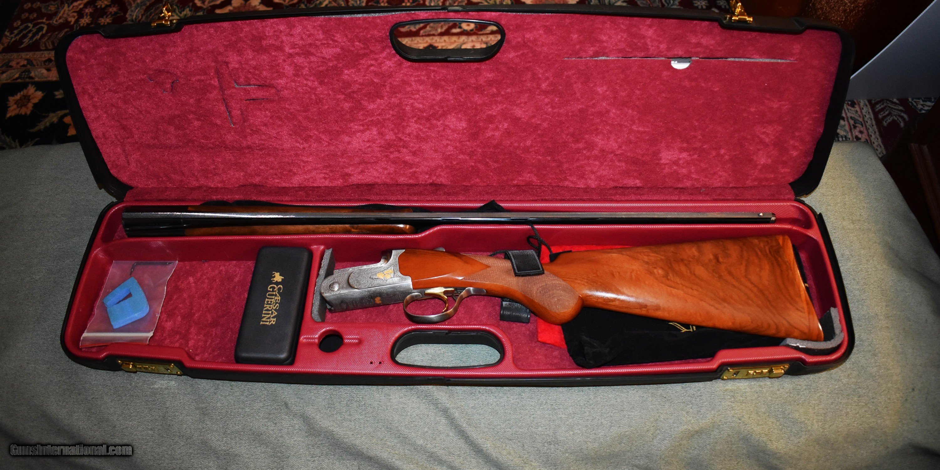 Description: Caesar Guerini Tiempio grade 410 gauge. This gun is in like new original condition. It retains 100% of the original metal and wood finishes. It has a 28" vent rib barrel with Guerini chokes. The highly figured stock has a factory wooden buttplate. The action is fully engraved with gold inlays. The bores are mint and bright. The gun comes in the factory case with two sets of chokes. One extended and one flush. A great small bore gun for upland birds or clays. Price includes shipping to your FFL. SOLD Shotgun Gauge: .410 Gauge Manufacturer: Caesar Guerini Model: Tiempio Serial Number: 144649 Barrel Length: 28 Chambers: 21/2"and 3 Ejectors: Yes Condition: mint Metal Condition: mint Wood Condition: mint Bore Condition: mint Action: Over Under Triggers: Single Selective Butt Pad: factory wood butt Rib: Ventilated Chokes: Guerini chokes Case: factory case |