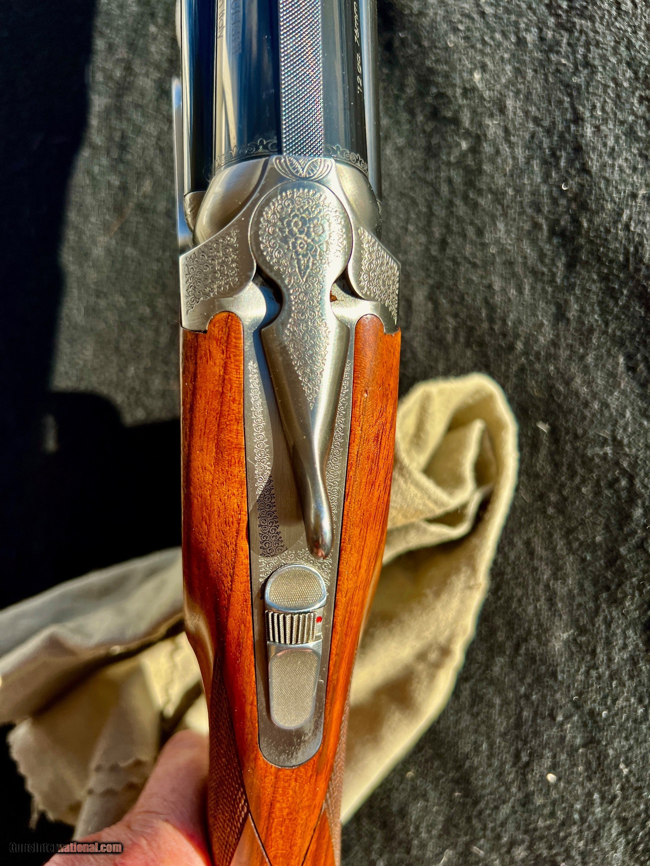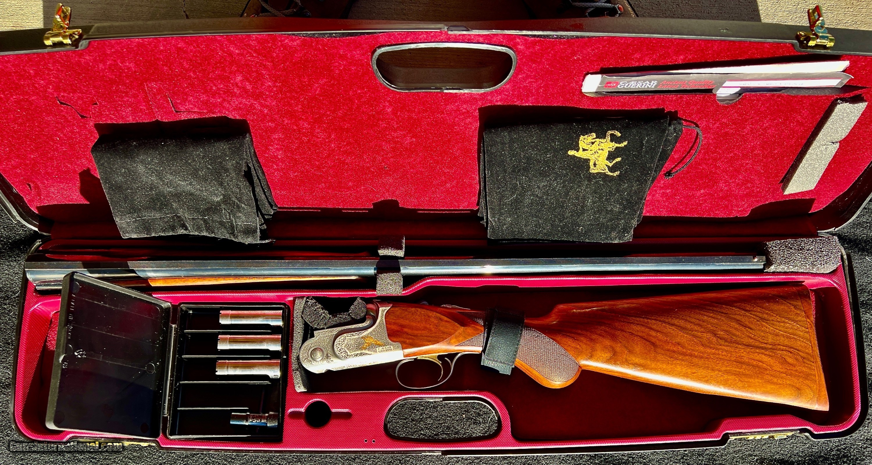 Description: Beautiful Caesar Guerini Tiempo! Lightly used and in near new condition. Comes in the Factory hard case with all origional chokes, choke wrench and owners manual. Buy this as new Tiempo and save $1475 off the new retail of $6125!! Previously chosen by the Editors of Field and Stream Magazine as “Best of the Best”in Shotguns, the Tempio is designed to be a sleek and fast pointing shotgun in the field; the perfect companion for upland game hunters. Its low-profile receiver matched with a trim stock, classic Prince-of-Wales grip and Schnabel fore-end make the gun a perfect match for fast game birds. The Tempio features a contemporary style of “ornato” scroll with tasteful gold accents. The action is further enhanced by a nickel finish protected by our proprietary Invisalloy™ coating. Each Caesar Guerini game gun is carefully engineered to balance near the hinge point, distributing the weight evenly between the hands, which is the secret to a finely crafted shotgun. The Tempio also features a deluxe grade of Turkish walnut enhanced with a hand rubbed oil finish. All Caesar Guerini field guns come with a velvet lined lockable hard case and five precision patterned flush chokes (CYL, IC, M, IM, F). A plastic choke case is also included. Buyer pays actual shipping plus insurance to their FFL Please call or text with any questions. Shotgun Gauge: 12 Gauge Manufacturer: Caesar Guerini Model: Tiempo Field Barrel Length: 28 Bore Info: 12 GA Chambers: 3 inch Condition: As New Metal Condition: 98% Wood Condition: 98% Bore Condition: Bright / Shiny Triggers: Gold Single Selective Stock Comb: 1.5 Stock Heel: 2.25 Stock Cast: Right Hand Fore End: Schnabel Butt Pad: Factory Walnut LOP: 14.75 Finish: Hand Rubbed Oil Weight: 6 LBS 14 OZ Sights: Single Bead Chokes: CL, IC, MOD, IM, F Case: Factory Item Location: Helena, MT Price: $4,650.00 Buy Now Contact Seller |