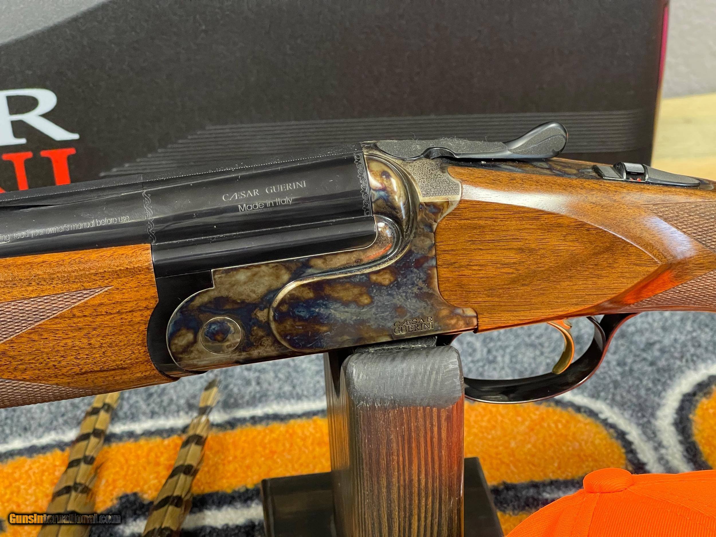 Description: The Casesar Guerini Woodlander is not you average Upland Filed Gun and when you get out there and experience the Woodlander you see and feel exactly what we mean. At Caesar Guerini upland bird hunting is a passion. They wanted a gun that would truly reflect our love of fall coverts, autumn foliage, wet gun dogs, and the smell of wood smoke. The Woodlander is the shotgun you imagine in such a setting. It was created to be a classic upland game gun for tight cover and fast-flushing birds. The case color hardened action exudes an understated elegance. It is embellished with a single gold ruffed Grouse executed in the Bulino style while nicely figured Turkish walnut featuring a traditional oil finish speaks of quality from a bygone era. The meticulously fitted wood butt plate allows for snag-free gun mounts and adds a custom look and feel. We purchased this outside our normal dealer purchase program. Being that we are a Caesar Guerini Elite Dealer and getting our hands the Woodlander has been a bit of a challenge we jumped on the opportunity. This gun is new (never fired) and NO handling marks! Our price on this one is better than you might expect because of the way we acquired it... Yes, it has the Caesar Guerini Lifetime Warranty! The MSRP on the Woodlander $4,275... We have this one listed at $3,847.00 SOLD Shotgun Gauge: 12 Gauge Manufacturer: Caesar Guerini Model: Woodlander Serial Number: 159627 Chambers: 3 Ejectors: Auto Condition: New Metal Condition: New Wood Condition: New Bore Condition: New Barrels: O/U Blued Steel Action: Break Stock: Turkish Walnut Stock Drop: Drop at Comb 1.5" Drop at Heel 2.25 Stock Cast: Cast at heel .12 / Cast at toe .3 Fore End: Schnabel Rib: Width 7mm (.27”) parallel and ventilated Finish: Case colored with Invisalloy™ protective finish Weight: 6lbs. 14oz. Sights: Silver front bead Chokes: 5 nickel plated, flush fitting chokes Engraving: gold ruffed Grouse executed in the Bulino style Case: Plastic hard case with fit interior and velvet stock sleeve and barrel sleeve Item Location: Wisconsin |