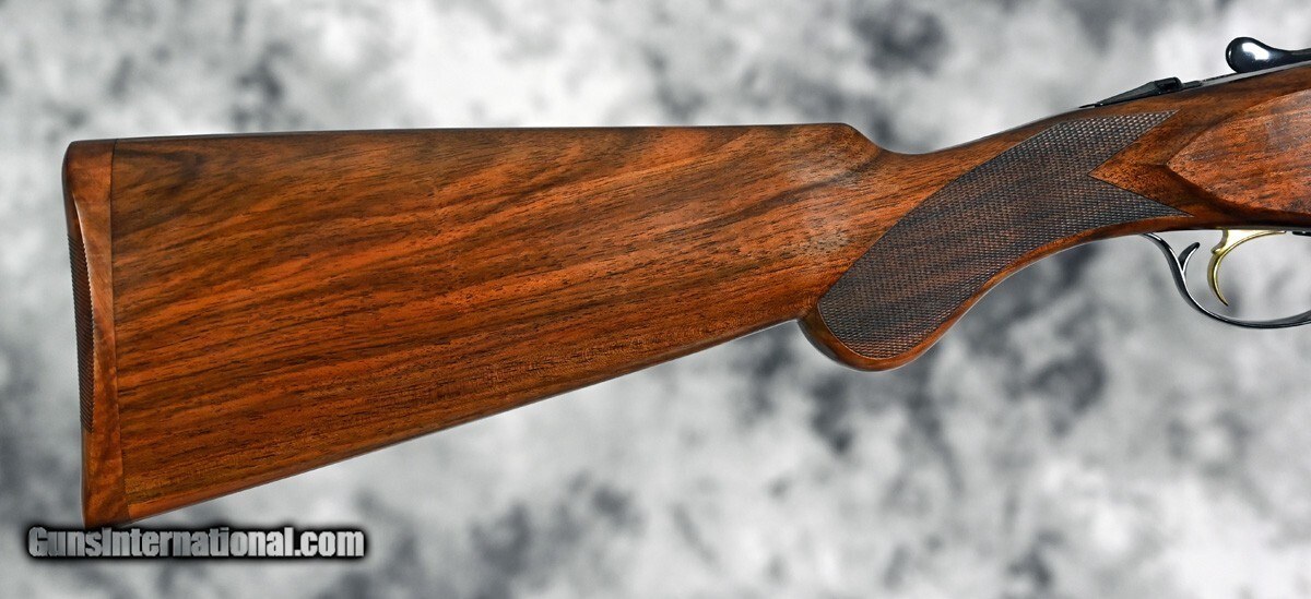 Description: Pre-owned, in excellent condition, Caesar Guerini Woodlander 12ga. Features factory flush choke tube 28" barrels with thin game rib. Case color receiver with gold upland birds and fixed selectable trigger. Highly figured right hand Prince of Wales stock with wood checkered buttplate and Schnabel forend. Comes in factory case. Pacific Sporting Arms is the largest dealer in high grade shotguns in the world. Shotgun Gauge: 12 Gauge Price: $3,795.00 Contact Seller |