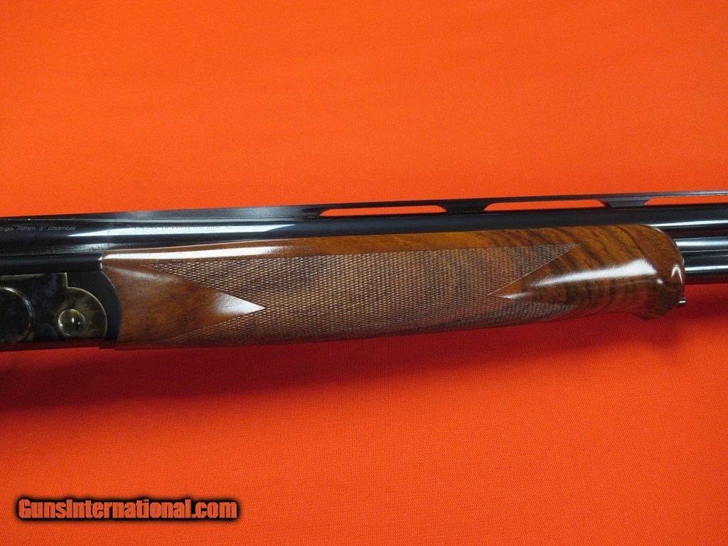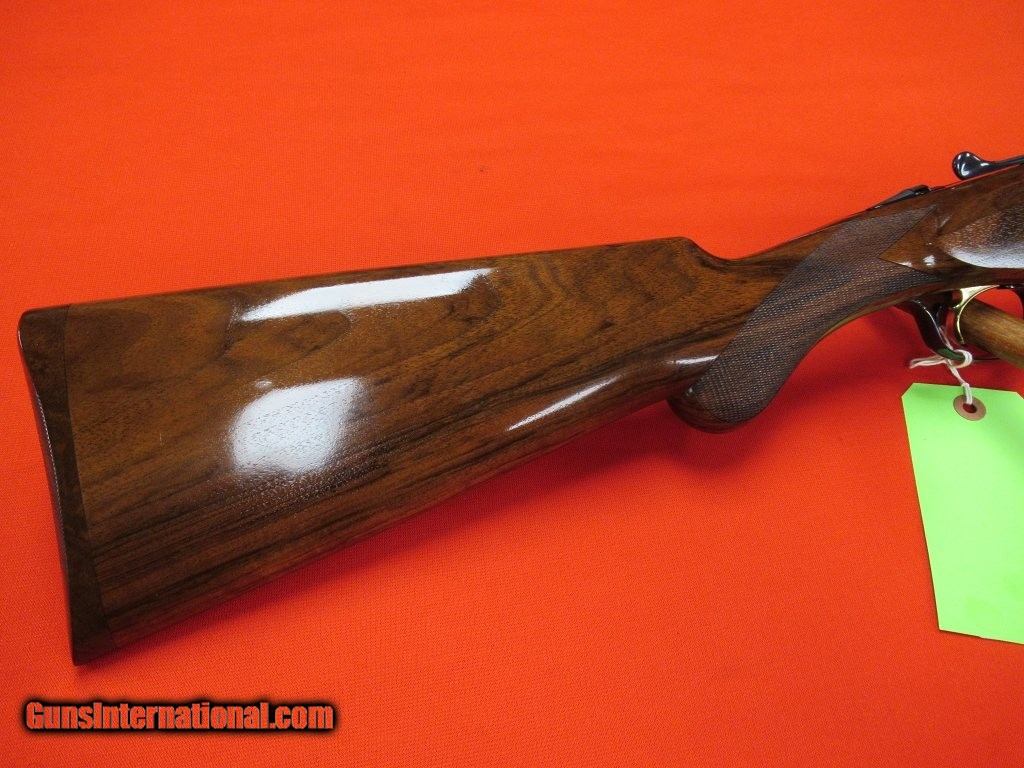 Description: Case colored receiver with nicely figured stock and forend. This gun features a gold grouse in flight on the underside of the action. This is one sharp looking piece. Factory case and extras included. SOLD |