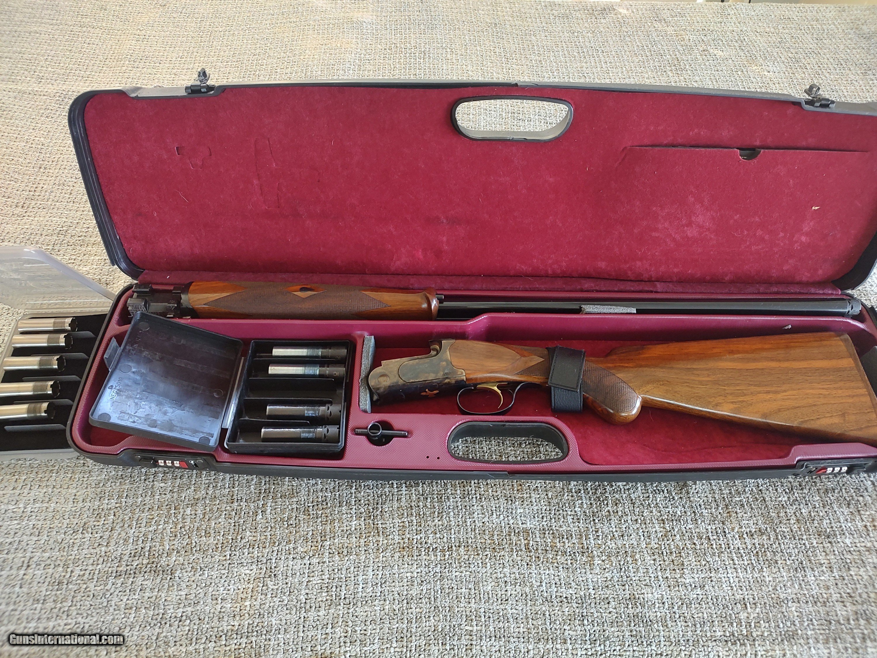 Description: Woodlander 20 ga, 30" barrels. No modifications, all factory original. Nice wood grain. 5 CG flush chokes, 2 IC CG extended chokes, 2 Briley Ext skt, 2 Briley ext LM. 2000 - 3000 rds. Comes with factory hard case shown SOLD Shotgun Gauge: 20 Gauge Manufacturer: Caesar Guerini Model: woodlander Condition: very good Metal Condition: very good Wood Condition: very good Bore Condition: very good |
