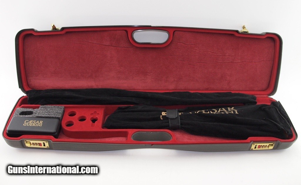 Description: Caesar Guerini Woodlander O/U 28 GA with factory hard case, 26" vented rib bbls, 2 3/4" chambers, 5 choke tubes (F, IM, M, IC, C), single selective trigger, auto-ejectors, Schnabel forend, Prince of Whales grip with wood butt plate, color case hardened action, Bulino style engraved with gold inlay grouse, blued barrels - trigger guard, and all paper work. This shotgun MFG 2008 with Serial# 103975 is in like new condition. Add 3% for Credit Card S&H $35.00 SOLD |
