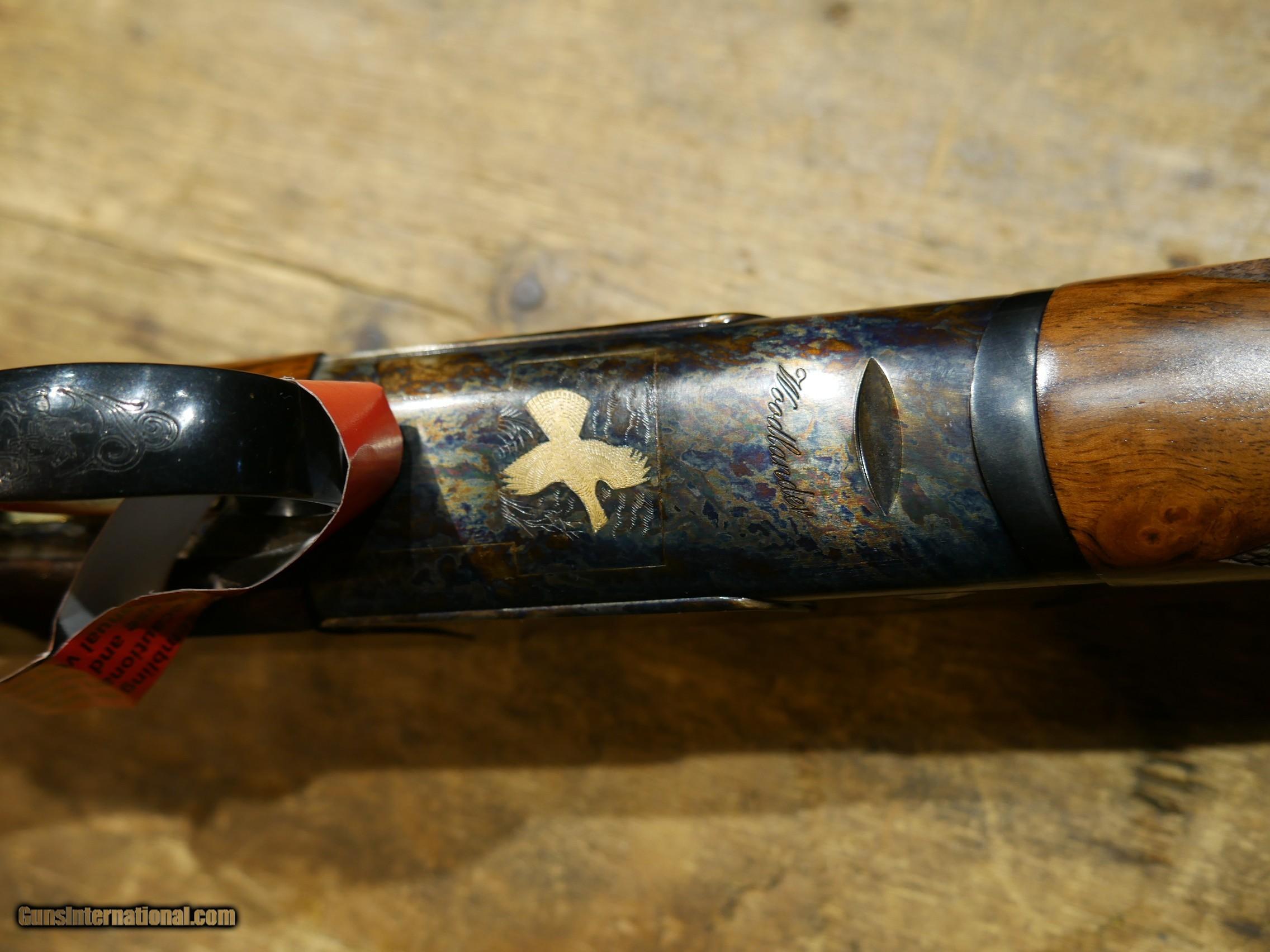 Description: ***WE ARE A CAESAR GUERINI ELITE DEALER, AS SUCH THIS GUN COMES WITH THE PITSTOP PROGRAM FOR LIFE!*** ~~~Good, distinctive lines, above average for the Woodlander~~~ ***CALL FOR BEST PRICE*** Caesar Guerini Woodlander over/under shotgun in 20 gauge. 28" ventilated rib barrel with 6mm rib. 3" chambers. Beautiful case-colored receiver with Invisalloy protective finish. Schnabel forend. Wood buttplate. Single selective trigger with manual safety. 6lbs 13oz. From Caesar Guerini: "At Caesar Guerini upland bird hunting is a passion. We wanted a gun that would truly reflect our love of fall coverts, autumn foliage, wet gundogs, and the smell of wood smoke. The Woodlander is the shotgun you imagine in such a setting. It was created to be a classic upland game gun for tight cover and fast-flushing birds. The case color hardened action exudes an understated elegance. It is embellished with a single gold ruffed Grouse executed in the Bulino style while nicely figured Turkish walnut featuring a traditional oil finish speaks of quality from a bygone era. The meticulously fitted wood butt plate allows for snag-free gun mounts and adds a custom look and feel. The Woodlander is also offered with an optional English straight stock. The lightweight barrels incorporate solid mid ribs to keep out debris, 7mm top rib in 12 gauge and 6mm top rib in sub gauges. If your priorities are traditional good looks and superior handling, then the Woodlander is the gun for you." Comes new in box with: Hard plastic locking case, 5 chokes with case and wrench, manuals, velvet stock and barrel sleeves. Please call or email with any questions. Must ship to FFL. ***$35 SHIPPING AND INSURANCE*** ***NO CREDIT CARD FEES*** ***ALL WARRANTIES ARE HANDLED BY THE MANUFACTURER*** ***NO WARRANTIES THROUGH SILVER CREEK OUTFITTERS IMPLIED OR EXPRESSED*** ***MUST CALL TO COMPLETE TRANSACTION*** ***PLEASE BE IN CONTACT WITH A RECEIVING FFL AND BE PREPARED TO PROVIDE THEIR EMAIL ADDRESS OR AT LEAST THEIR PHONE WHEN MAKING PAYMENT*** SOLD Shotgun Gauge: 20 Gauge Manufacturer: CAESAR GUERINI Model: A11331 Condition: NIB |