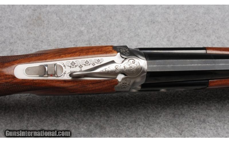Description: This is a Cesar Guerini Summit Sporting Over/Under shotgun in 12 Gauge with 2 3/4 inch chambers and ejectors. It is designed for compettive shooting with thick receiver walls and large bearing surfaces. The trunions and locking lugs are replaceable. The receiver is hand polished coin finish with Invisalloy protective finish. the 30 inch vent rib barrels have the Maxis bore and choke system with 6 Maxis competition choke tubes included-M, LM, S, C, and 2 IC. The stock is 26 Line Per Inch checkered hand rubbed walnut with a palm swell on the pistol grip and a Schnabel fore end. Included is a Cesar Guerini fitted case. SOLD Caliber Info: 12 Gauge Chambers: 2 3/4 Metal Condition: As New Wood Condition: As New Bore Condition: As New Barrels: 30" Vent Rib Triggers: Single DTS Trigger Stock: 26 LPI Checkered Hand Rubbed Walnut with a Pistol Grip Palm Swell Stock Dimensions: LOP 14 3/7" DAC 1 1/2" DAH 2 1/4 Fore End: 26 LPI Checkered Hand Rubbed Walnut with a Schnabel Butt Pad: Black Rubber Weight: 7 Pounds 14 Ounces Sights: White Bradley Style Front and Silver Md Bead Chokes: Maxis Bore and Choke system with M, LM, S, C, and 2 IC Maxis Competition Chokes Included Extras: Ejectors. Comes with the Cesar Guerini fitted case Item Location: Hamburg, PA |