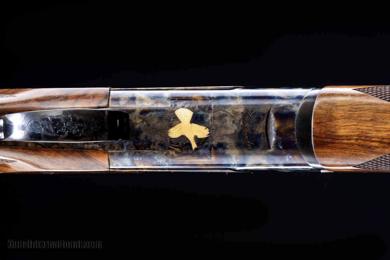 Description: At Caesar Guerini upland bird hunting is a passion. We wanted a gun that would truly reflect our love of fall coverts, autumn foliage, wet gundogs, and the smell of wood smoke. The Woodlander is the shotgun you imagine in such a setting. It was created to be a classic upland game gun for tight cover and fast-flushing birds. The case color hardened action exudes an understated elegance. It is embellished with a single gold ruffed Grouse executed in the Bulino style while nicely figured Turkish walnut featuring a traditional oil finish speaks of quality from a bygone era. The meticulously fitted wood butt plate allows for snag-free gun mounts and adds a custom look and feel. The Woodlander is also offered with an optional English straight stock. The lightweight barrels incorporate solid mid ribs to keep out debris, 7mm top rib in 12 gauge and 6mm top rib in sub gauges. If your priorities are traditional good looks and superior handling, then the Woodlander is the gun for you. All Caesar Guerini field guns come with a velvet lined lockable hard case and five precision flush chokes (CYL, IC, M, IM, F). A plastic choke case is also included. SOLD Manufacturer: Caesar Guerini Caliber Info: 20 Gauge Action: Over / Under Gauge Info: 20 Gauge |