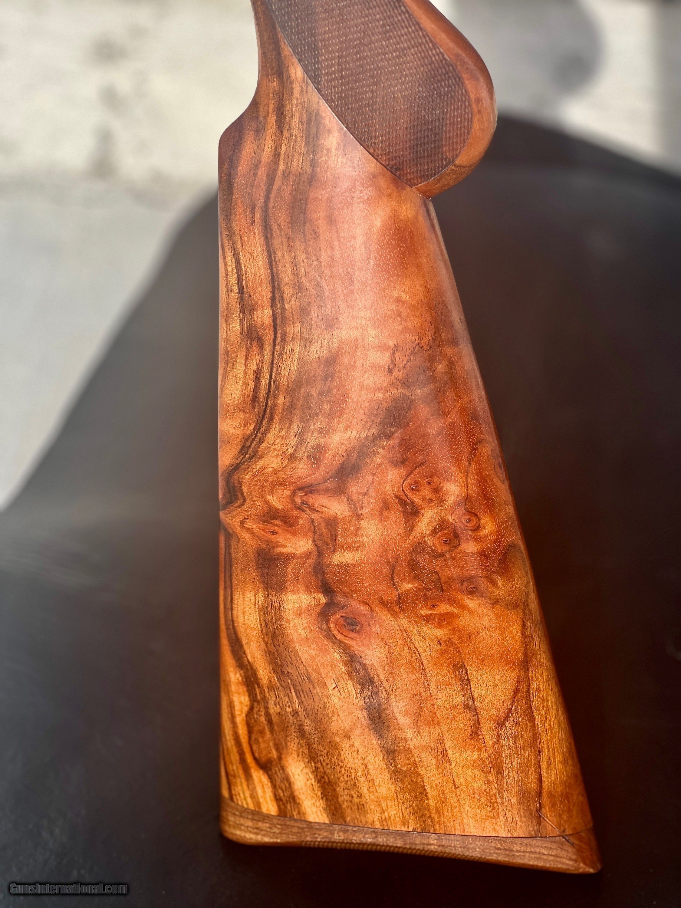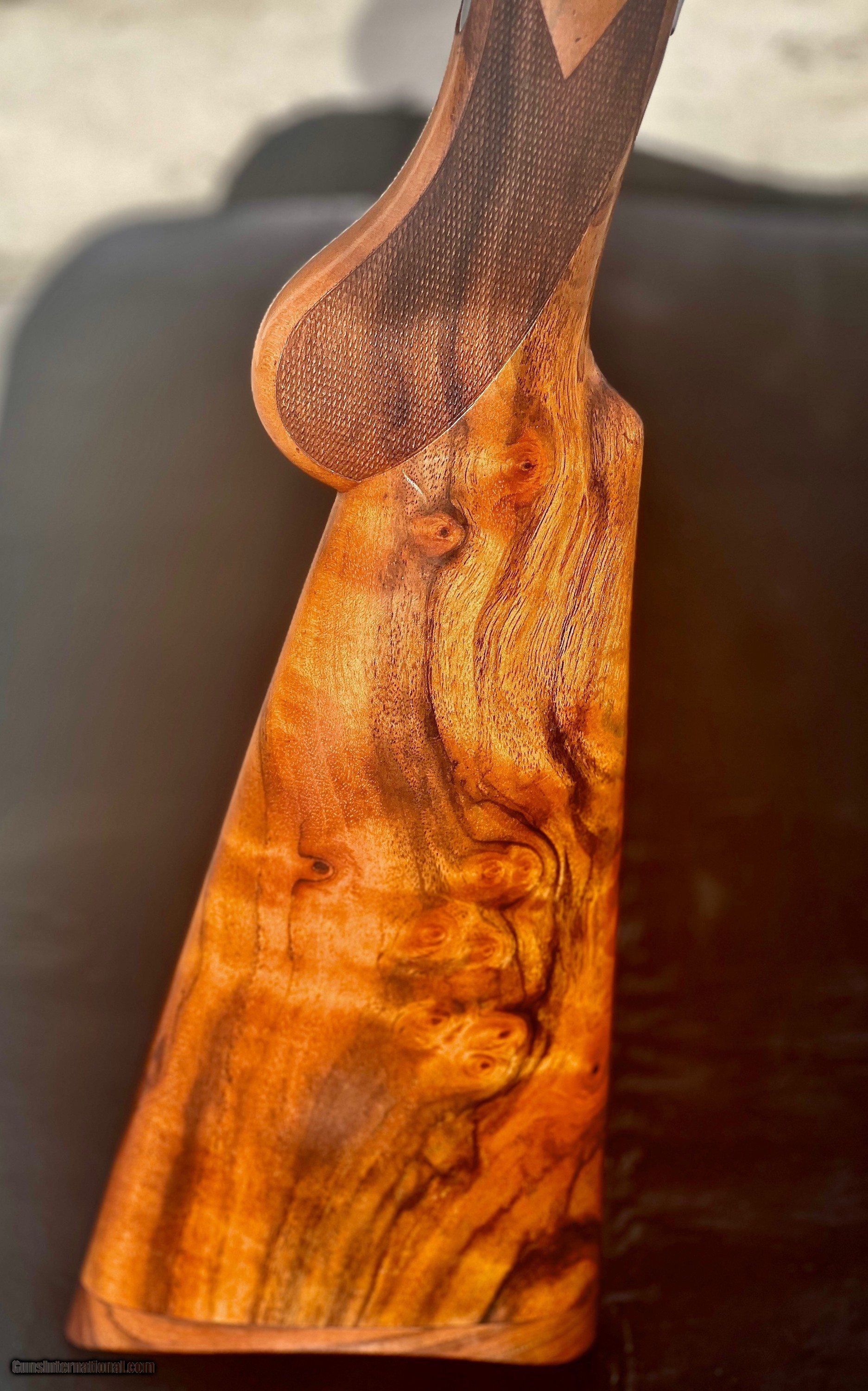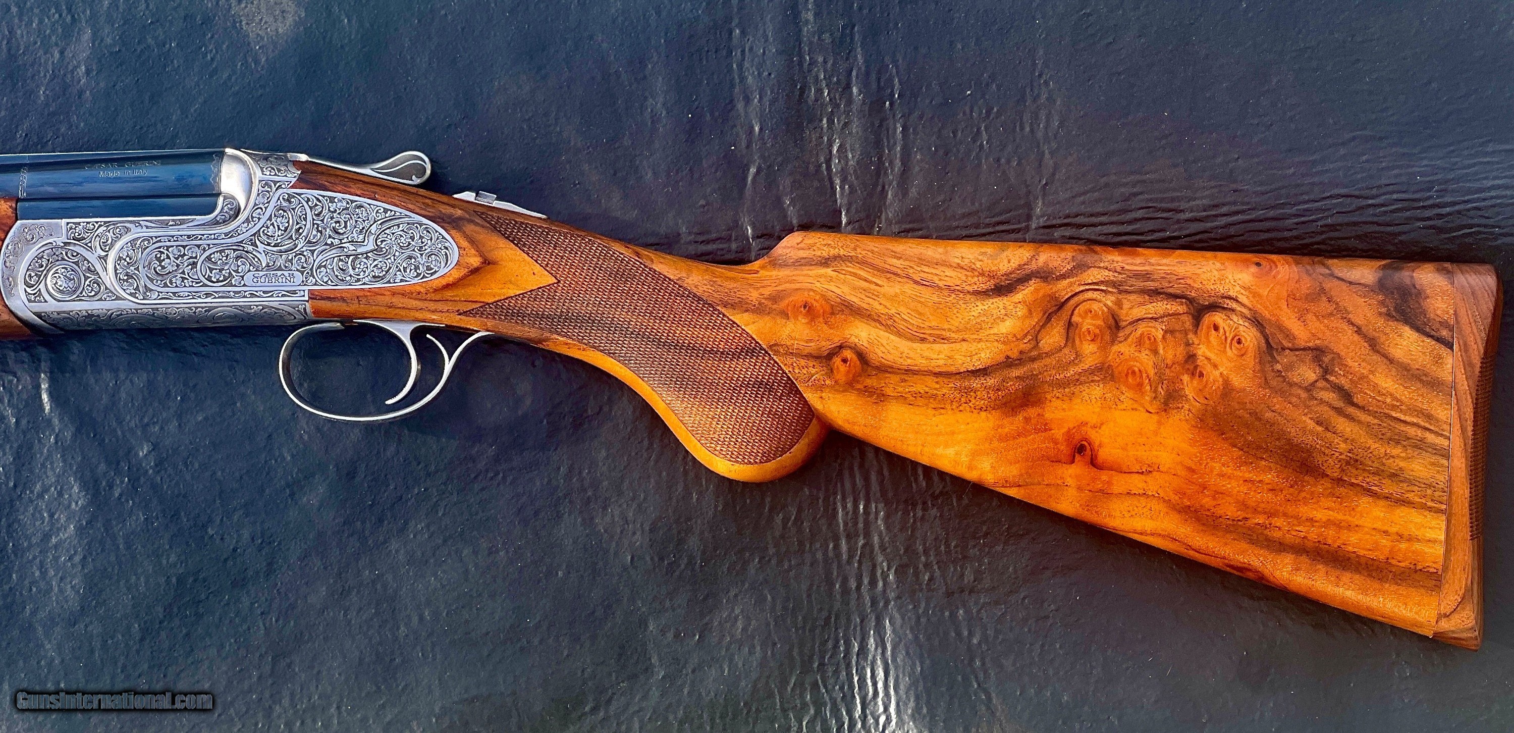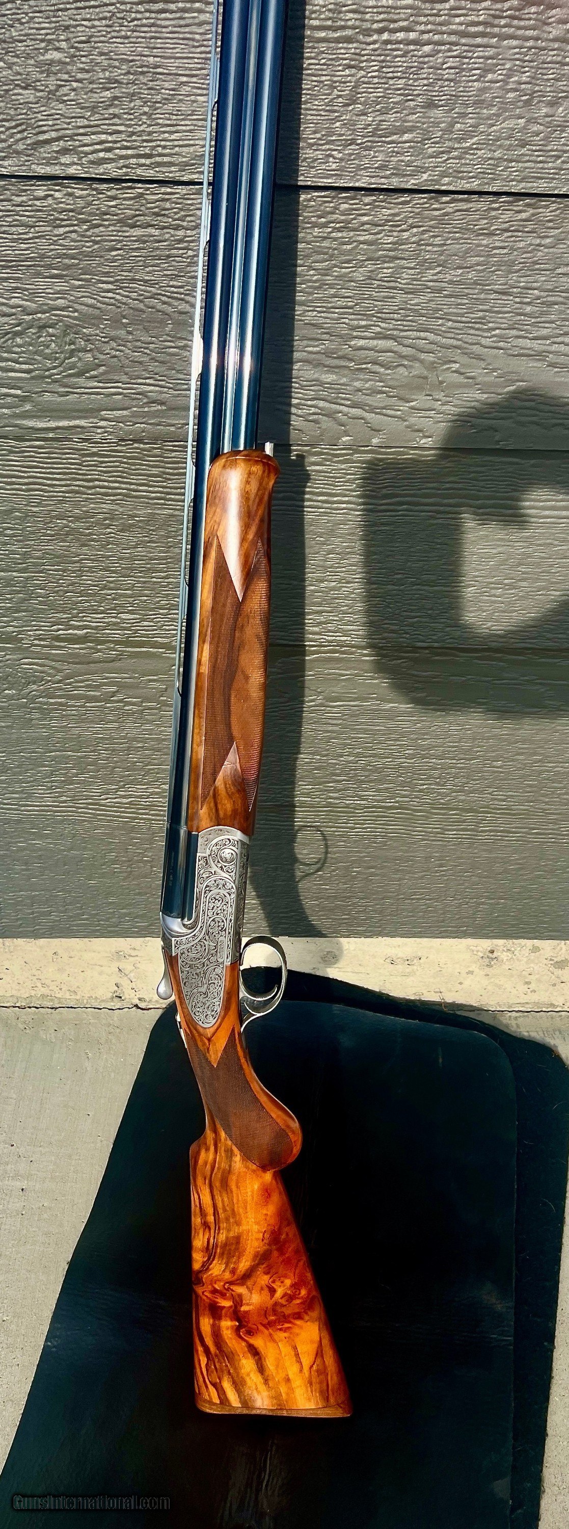 Description: Absolutely Georgous CG Maxum field 20ga!! You won't find many possessing wood this special without paying for an upgrade. Used but well loved and maintained. The stock has been shortened by Caesar Guerini to 14.25 inches and retains the factory wood butt plate. The gun comes with all original chokes, case, owners manual, gun socks, and wrench. The Maxum is a true collector grade shotgun, featuring deep relief floral scroll hand finished engraving on the receiver, side plates, and forearm assembly. The hand work and design are from the studios of the world renowned Italian engraving house, Bottega Incisioni C. Giovanelli. An elegant coin finish complements the strikingly detailed classic style engraving, creating a functional work of art. Balancing the beauty of the deeply sculpted engraving is a deluxe grade of Turkish walnut, featuring precision cut 26 lines-per-inch checkering and a natural oil finish hand rubbed to a stunning sheen. The lightweight barrels have a high luster deep blue finish. The Maxum Field is available in 20 gauge with 28″ barrels as a standard offering. All Caesar Guerini field guns come with a velvet lined lockable hard case and five precision patterned flush chokes (CYL, IC, M, IM, F). A plastic choke case is also included. MSRP $9725 Shotgun Gauge: 20 Gauge Manufacturer: Caesar Guerini Model: Maxum Barrel Length: 28 Bore Info: 20ga Chambers: 3 inch Ejectors: Fully functional Condition: Very Good Metal Condition: Very Good Wood Condition: Very Good with light handling marks Bore Condition: Excellent Barrels: Blued Barrel Type: O/U Triggers: Single Selective Stock: Walnut Stock Comb: 1.5 Stock Heel: 2.25 Stock Cast: Right Hand Fore End: Walnut Schnabel Butt Pad: Factory Wood LOP: 14.25 Rib: Vented Finish: Hand Rubbed Oil Weight: 6.4 lbs Sights: Single Silver Bead Chokes: 5 Flush Mounted Case: Factory Price: $5,750.00 Contact Seller |