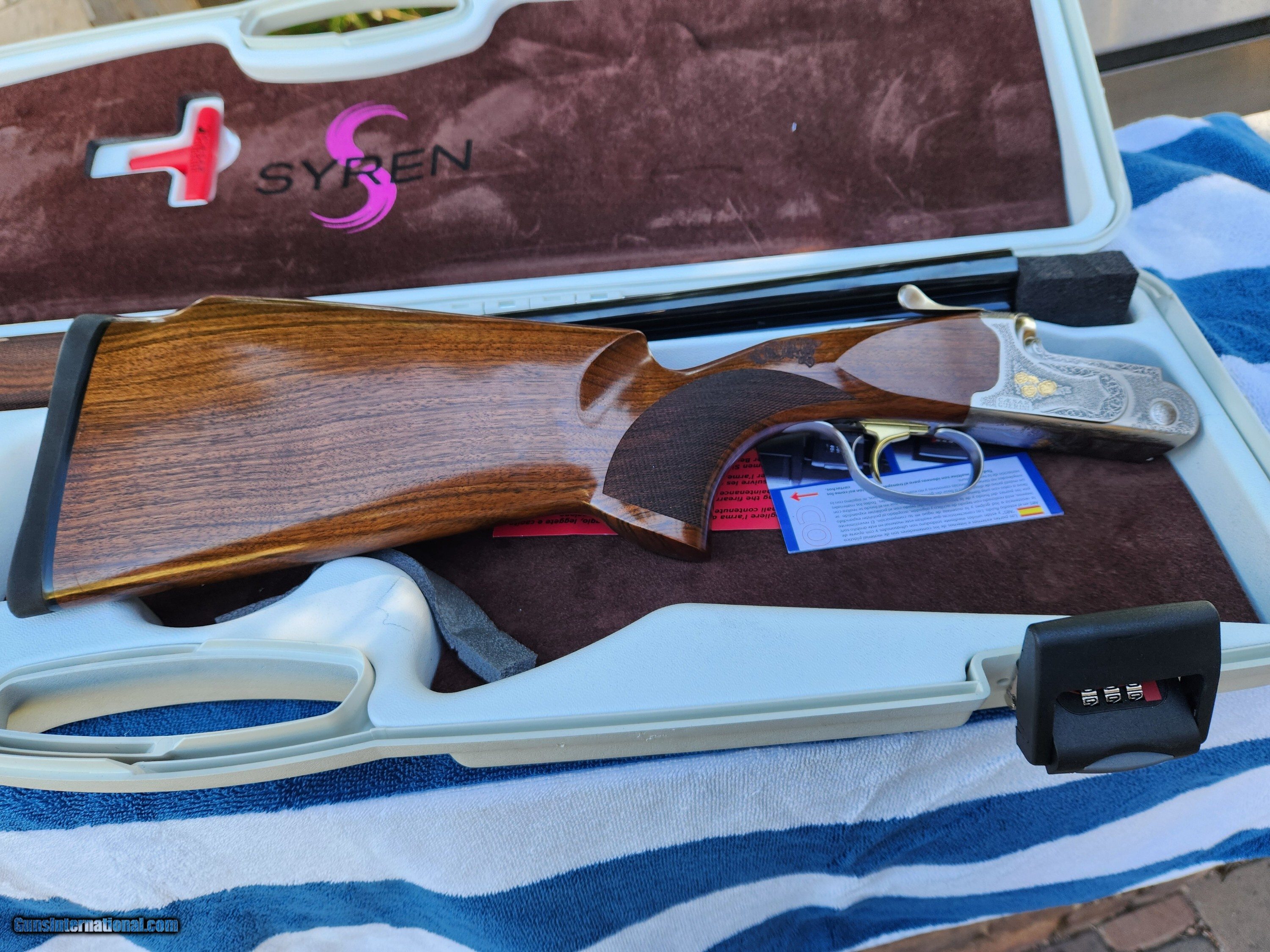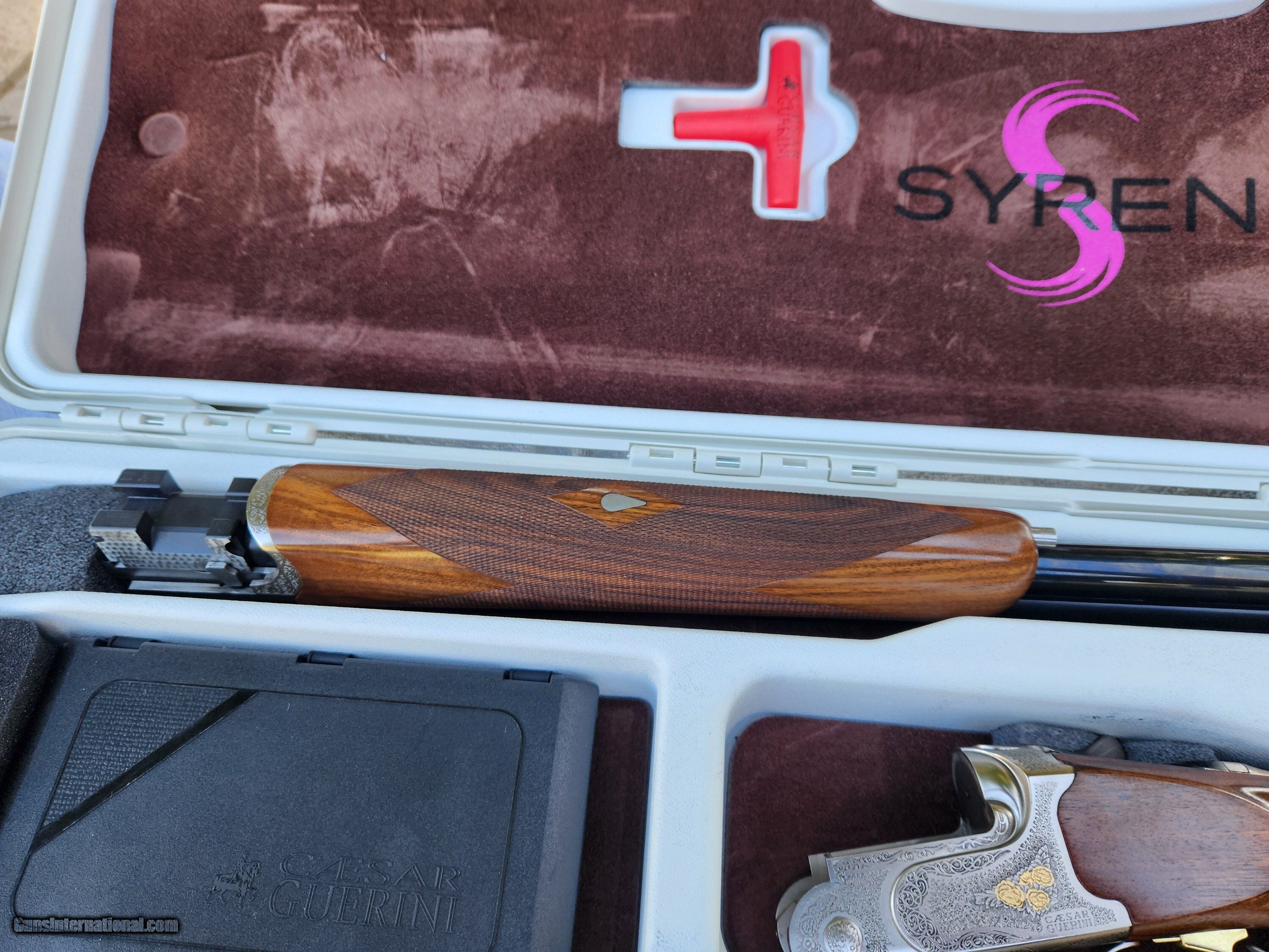 Description: Like new Caesar Guerini Syren Tempio 20 Gauge with 28 inch barrels. Caesar Guerini has developed the Syren line for ladies and smaller frames shooters with shorter grip radius, higher comb and shorter length of pull to allow better fit right out of the box. The fit and finish is outstanding with gold enhanced roses engraved in the reciever and laser engraved roses in the stock on the handleThis gun was sold as unfired but may have a few rounds through it. It’s like new and will make a fine gun for a younger shooter moving up in the clay sports or a lady wanting to look the part in the quail or pheasant woods. I know some smaller stature men using the Syren’s as well. Weighing in at 7.5 lbs it is the perfect in between weight to reduce recoil on high volume clay days or to carry in the field. Feel free to call with any questions. Shotgun Gauge: 20 Gauge Manufacturer: Caesar Guerini Syren Model: Tempio Barrel Length: 28 Bore Info: 20 Chambers: 2 3/4 Ejectors: Y Condition: Excellent Metal Condition: Ecxellent Wood Condition: Excellent Bore Condition: Excellent Barrels: O/U Barrel Type: O/U Action: O/U Triggers: Single Stock: 13.9 Stock Drop: 1.375 Stock Comb: 1.75 Weight: 7 Lb 6 oz Chokes: 8 maxis Choke Left: Multi Choke Right: Multi Engraving: Yes Case: Yes Item Location: Arizona Price: $4,125.00 Shipping: $100.00 Contact Seller |