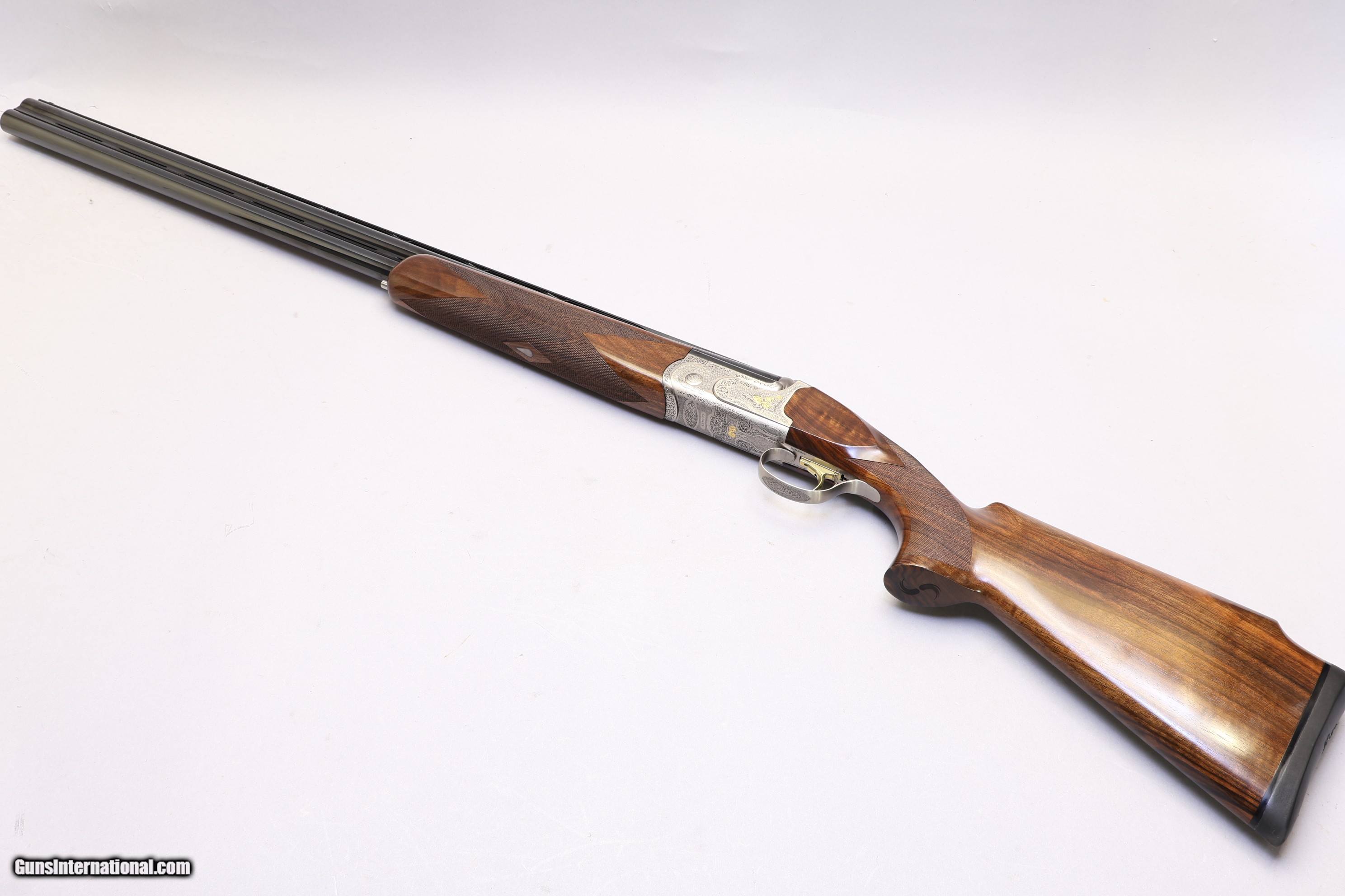 Description: 3" Chambers | Multi Choke (8 chokes) | Caesar Guerini ABS hard case The Tempio Syren Over/Under shotgun in 12 Ga is an Italian-made model designed to offer smooth handling, dependable operation, and well-balanced performance. It uses a ventilated tapered rib and a strong Over/Under action, paired with a walnut stock shaped for steady control. It is built to give confident performance for a variety of shooting needs. This example was previously used as a demo and shows exceptionally light use, with very few rounds fired and only faint marks on the wood. It includes a Monte Carlo-style fit that helps smaller-framed shooters maintain better comfort and control, and it comes with the full factory bluing on the barrels and detailed scroll engraving with gold rose accents on the receiver. A white front bead sight and rubber butt pad add to its comfort. It is supplied in a Caesar Guerini ABS hard case with all extended choke tubes and the choke tool, and remains in near?pristine condition.