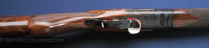 Description: This one is a real stunner! Another one fresh off the ship. The pictures do it justice and show the stunning grain in the wood and the color case hardening. 28" barrels, 45"overall, weighs 8 lbs 6 as you see it. 14 3/4" LOP, stock is cast off. 1 1/2" DAC, 2 1/8" DAH. Comes in the factory hardcase with all chokes, padding, inserts, paperwork, tools, etc. $50 shipping to the lower 48, 3% surcharge for using a CC. If you choose to pay with a personal check, we will hold the item for up to 10 days to make sure that it clears. Please expedite such pymts as we will hold an item on your word for 5 days. SOLD Shotgun Gauge: 12 Gauge |