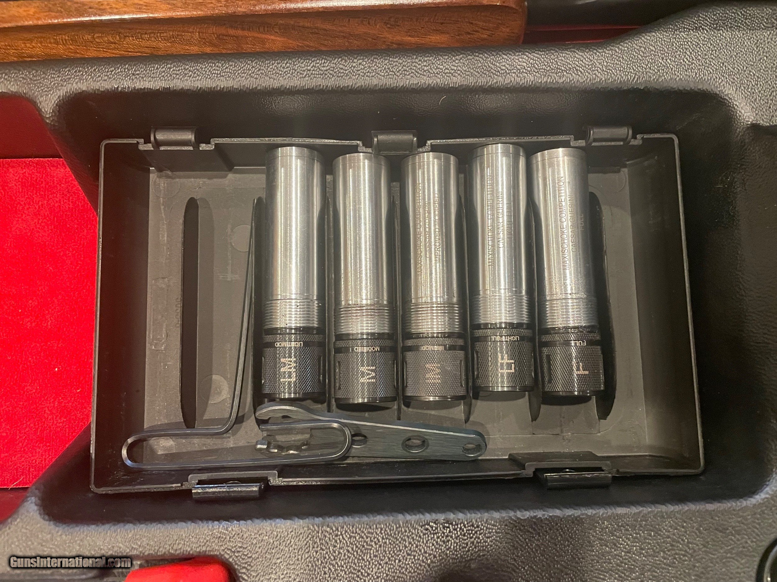 Description: SOLD!! This is a Right Hand Caesar Guerini Summit Trap O/U 12ga. Purchased October 2021 from Scheels for $5,999.00 plus tax. RADII recoil system with Kick-Eeze recoil pad added for an additional $550. No more than 2,000 rounds through it. Absolutely beautiful gun with very minor handling marks. This also has the new DAMASCUS BARREL BLOCKS. Unfortunately I wasn't able to make this gun work for me and ended up buying a Kolar Combo that fits me much better. My loss is your gain. No Pit Stops have been used. Buyer pays insured shipping to destination FFL. SOLD Shotgun Gauge: 12 Gauge Manufacturer: Caesar Guerini Model: Summit Trap O\U Serial Number: 168379 Barrel Length: 32 Bore: .735, “MAXIS” bore, chrome lined Chambers: 2.75” Condition: Used - Like New Metal Condition: Like New Wood Condition: Very Good - very minor handling marks Bore Condition: Bright and Shiny Action: Break Open Triggers: Pull - New DTS trigger system with two trigger pull weight options, take up, over travel and length of pull adjustments Stock: Monte Carlo Stock Comb: DTS 4 way adjustable comb Fore End: Semi-beavertail with finger grooves Butt Pad: Kick-Eeze LOP: 14 1/8 to 15 1/4 Rib: 12mm tapered rib, DTS adjustable from 60/40 to 100 Finish: Hand Rubbed Oil Weight: Approx. 8 pounds 15 ounces Sights: White Bradley style front, Silver center bead Chokes: 5 “MAXIS” competition chokes, LM, M, IM, LF, and Full Extras: Stock and trigger wrench, choke case, friction choke wrench, RADII Wrench and T-Handle, Owner's Manual & Registration Card Case: Plastic hard case with fit interior and velvet stock sleeve and barrel sleeve Item Location: Garden City, KS |
