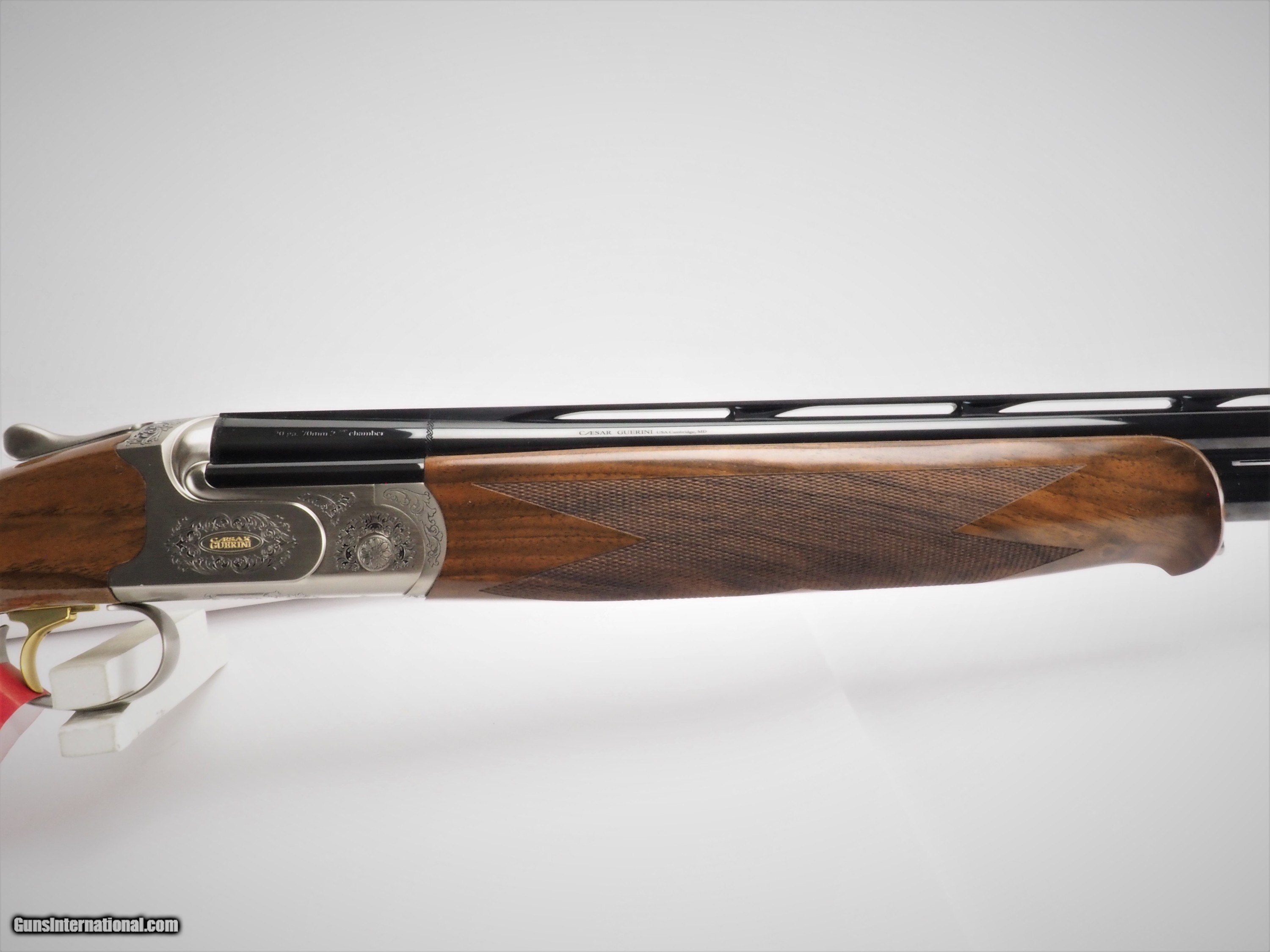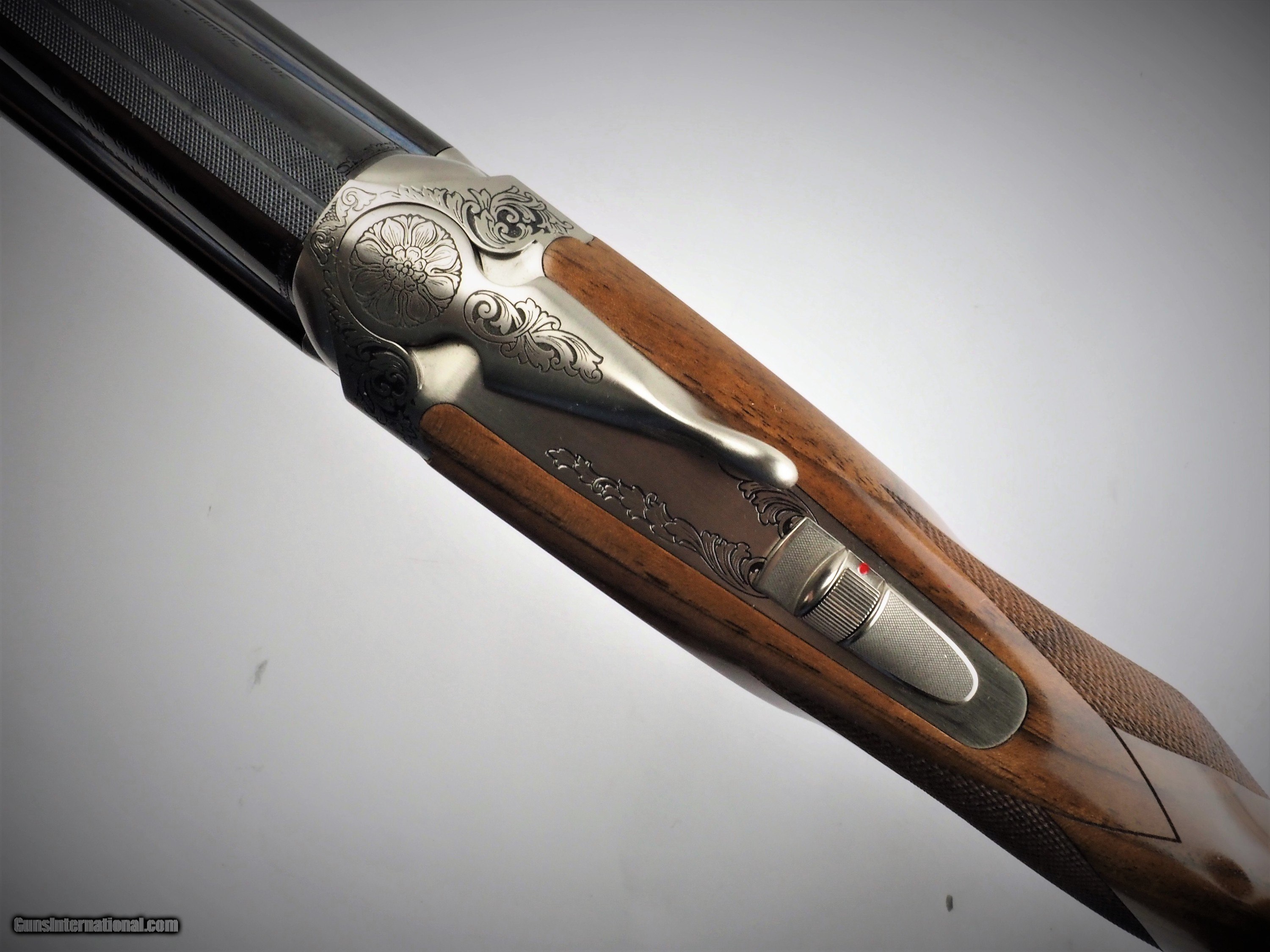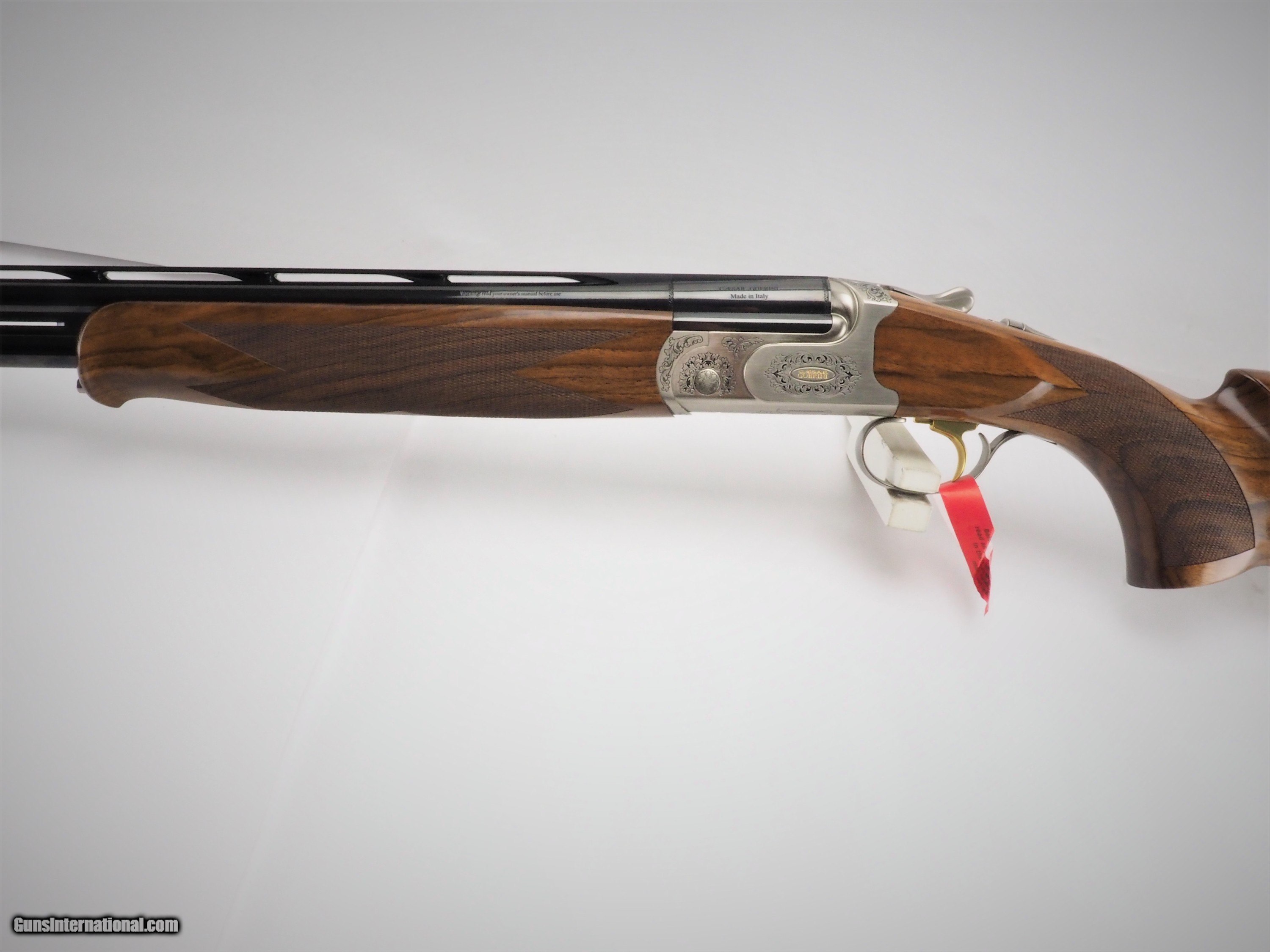 Description: The Summit Sporting is Caesar Guerini's workhorse flat rib gun that performs equally well on the skeet and sporting clays fields. Quite honestly, we find it hard to beat the Summit's combination of durability, aesthetics, and handling in the $3k-$4k price bracket. Add to that the truly top-shelf service and support of the CG gunsmith shop, and you have product value that remains untouched in the industry. For smaller-statured shooters, the Summit Compact is available. Drop at comb: 1.5" Drop at heel: 2.25" Length of pull: 14.75" Cast at heel: .12" Cast at toe: .2" Pitch: 5° Gauge: 20ga Barrel length: 32" Avg. Weight**: 8lbs. Receiver finish: Hand polished coin finish with Invisalloy™ protective Stock Finish: Hand rubbed oil Checkering: 26 lines per inch Recoil Pad: Black rubber Chamber: 2 3/4" Top Rib Width: 10mm (.4") parallel and ventilated Rib Height*: 6mm Center Rib: Ventilated Forcing Cones: 5" DuoCon Avg. Barrel Weight: 32"-1.52kg (3.35lbs.) Avg. Bore: .735, Chrome lined Chokes: C, SK, IC (x2), LM, M Sight(s): White Bradley style front - Silver center bead Fore-end: Schnabel Trigger: New DTS trigger system with length of pull adjustments. Factory selective release triggers available in single and double release for 12ga Safety: Manual (automatic is optional) Accessories: Stock and trigger wrench, choke case, friction choke wrench Case: Plastic hard case with fit interior and velvet stock sleeve and barrel sleeve SOLD |