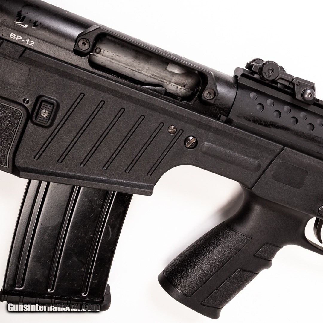 Description: Guns Listing ID: 513157 The Centurion BP-12 Bullpup Shotgun 12ga is very similar to the Panzer Arms AR-12, with the controls being completely ambidextrous. There are multiple Picatinny rails for easy mounting of optics or accessories. The BP-12 has a top AR-15 style charging handle to accommodate both left and right-handed shooters, as well as a side charging handle for right-handed shooters. This BP-12 is in very good condition and includes one 5-round magazine and three chokes (full, modified, and improved cylinder). SOLD Manufacturer: CENTURY ARMS Model: CENTURION BP-12 Condition: Used - Certified Barrels: 20 BARREL Gauge Info: 12 GA Finish: BLACK |
