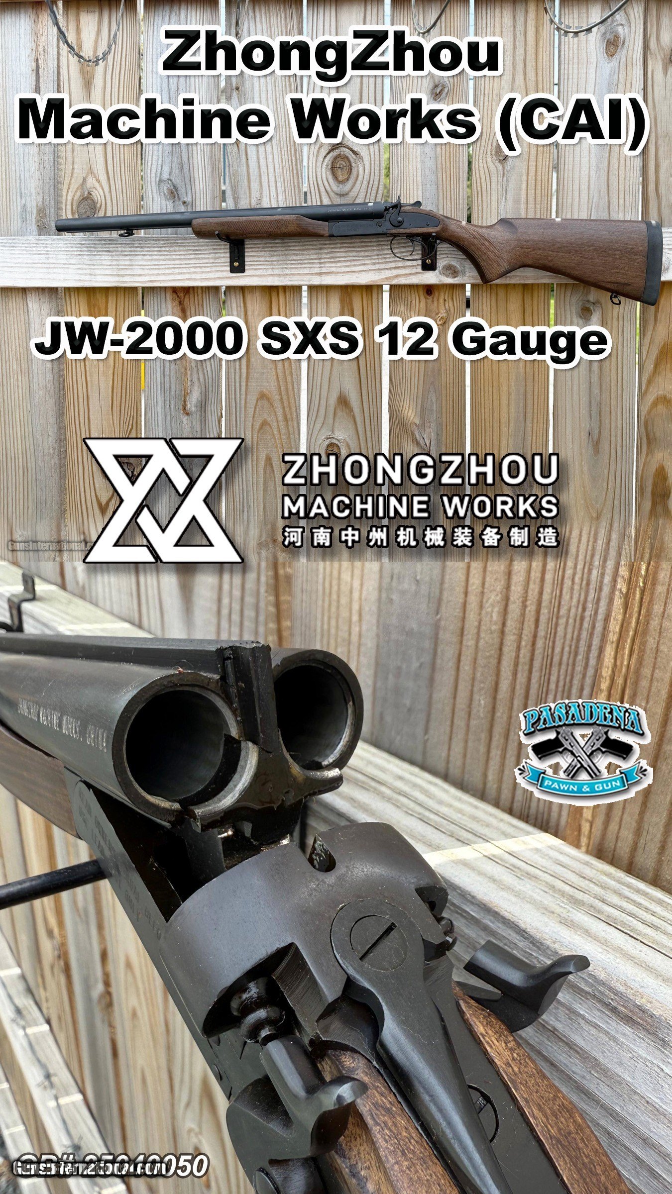 Description: Here we have a ZhongZhou Machine Works JW-2000 12-gauge side-by-side shotgun, imported by Century Arms International (CIA). This shotgun is designed for classic break-action reliability and can handle a variety of shells. Specifications: