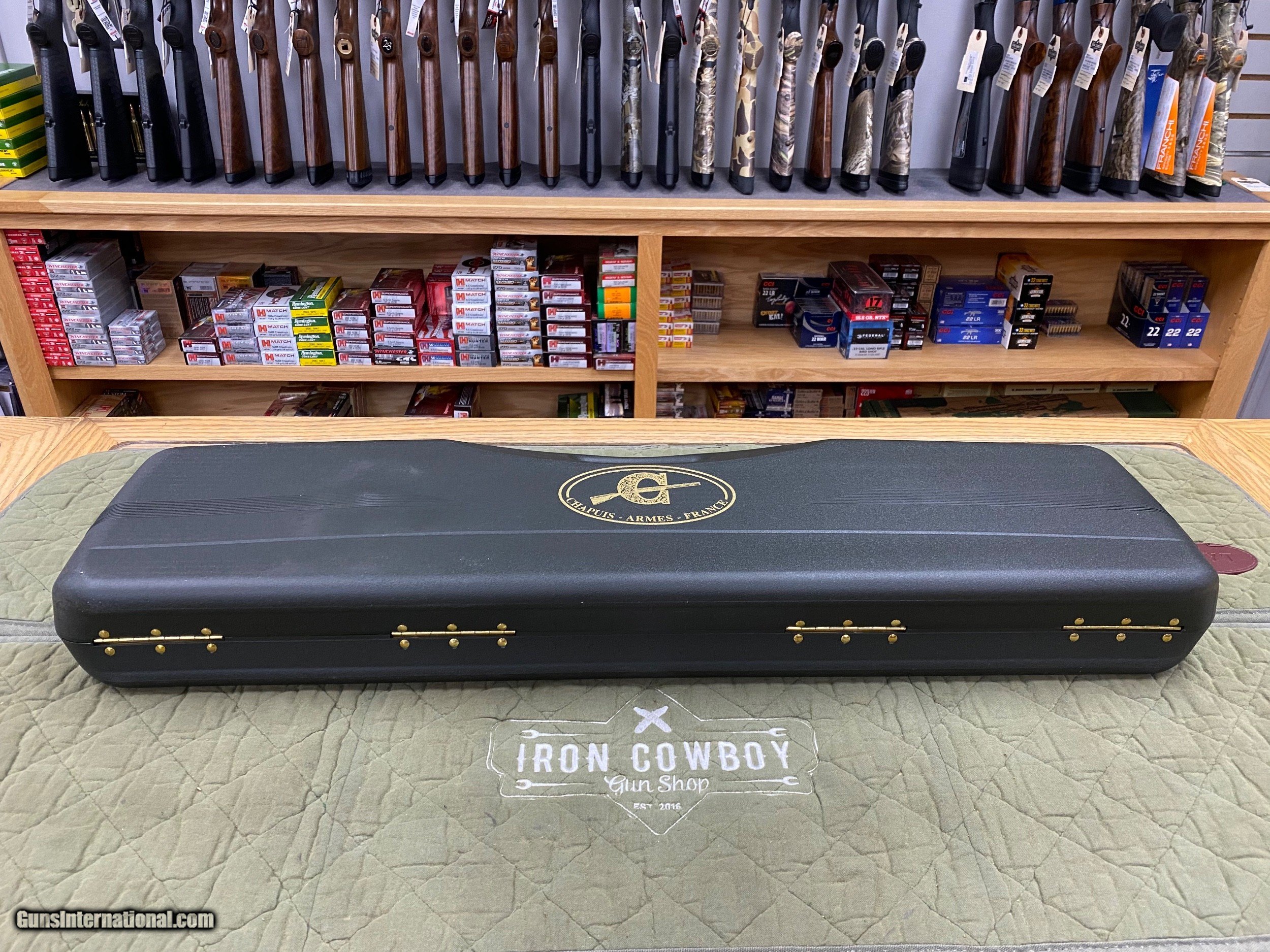 Description: Up for sale we have a beautiful Chapuis Armes Faisan (French for “pheasant”). This game gun is chambered in 28GA and sports 28’’ barrels. Auto safety & ejectors are standard. Below you will find a list of the specs & my personal opinions on the look, feel and mounting. AT FIRST GLANCE At the first look I was pleasantly surprised in the knurling on the ventilated rib. It’s not your normal run of the mill knurling. It has the look of a hand filled rib. I know what you’re thinking, there are other features that will catch your eye, however the little details like that are what get me interested. The LOP is longer than most lines on the market. This will benefit taller shooters. It is nice to take something out of the box and have it work for you. If you need a 15+ lop and you don’t want to add a rubber pad this deserves a good look. A note on the wood butt plate: at the top of but plate it has a chamfered edge for fast snag free mounting. This is something you would not notice unless you needed it and is a great feature to have as standard. On this model the engraving is laser cut. It looks very pleasing to the eye (Hand engraving available on Artisan Models). All steel round body action. The stock has beautiful figure and a right-hand palm swell, that is another love of mine. This feels like it just belongs in your hands. It balances just right. I will own a Faisan in the near future. This belongs in a gun rack of a Mule drawn wagon in the heart of south Georgia’s Quail belt. MY TAKE ON THIS LINE Most shotgunners think Italian or English when you think fine gun. Well, that is not the case here. The French might not be well known in the US market for their production of fine sporting arms; however, they should be. Chapuis is—and has always been a brand known throughout Europe for producing fine guns. Chapuis prides itself in being an all-French brand: all stages of manufacturing and finishing are carefully and lovingly executed in our St.-Bonnet-Le-Château facility, resulting in some of the most strikingly beautiful hunting guns you will ever see. When it comes to premium-level aesthetics and sophistication, very few nations in history have been able to rival France’s reputation for excellence. If you are looking for something different, here it is. I am extremely excited to offer Chapius rifles & shotguns to my clients. WHY IRON COWBOY? Buying a fine gun is not shopping cart transaction. Buying from Iron Cowboy means buying a gun from me. It means buying from someone as passionate as you about fine guns. I want you to get the right gun both for you and your application, and my advice reflects what I feel is in your best interests. No clerks, no ‘other’ salesman – just me. Odds are we will have a discussion on my shooting experience with the gun you are after, and every transaction gets my personal best. Credit cards are welcome; however, a 3% fee will apply Thank you, as always, for looking. GROWTH THROUGH SERVICE Everyone is a customer at some point. I’ve taken the good from my experiences and apply it to my transactions. I’ve taken the bad and sworn to never pass that same experience on to my customers. I strive to act the way I would respect someone else for acting. In this way, Iron Cowboy differentiates itself with growth through service and repeat business. It’s my commitment to you, my customer. Iron Cowboy Gun Shop, LLC Edward Kondraski III (570) 733-2042 AAA-Grade Satin Walnut wood Receiver Finish: Laser-engraved, coin finish, box-lock Round Body Action Barrel Finish: Gloss blue Barrel Length: 28" Trigger: Single trigger Chokes: C, IC, M, IM, F Brass front bead Length of Pull: 15’’ Drop at Comb: 1 ¼’ Drop at Heel: 2’’ Overall Length: 45" 6 Pounds Even Automatic Ejector Hard Case: Molded plastic, custom-fitted MSRP: $6,699 Call for Best Price!!! SOLD Shotgun Gauge: 28 Gauge |