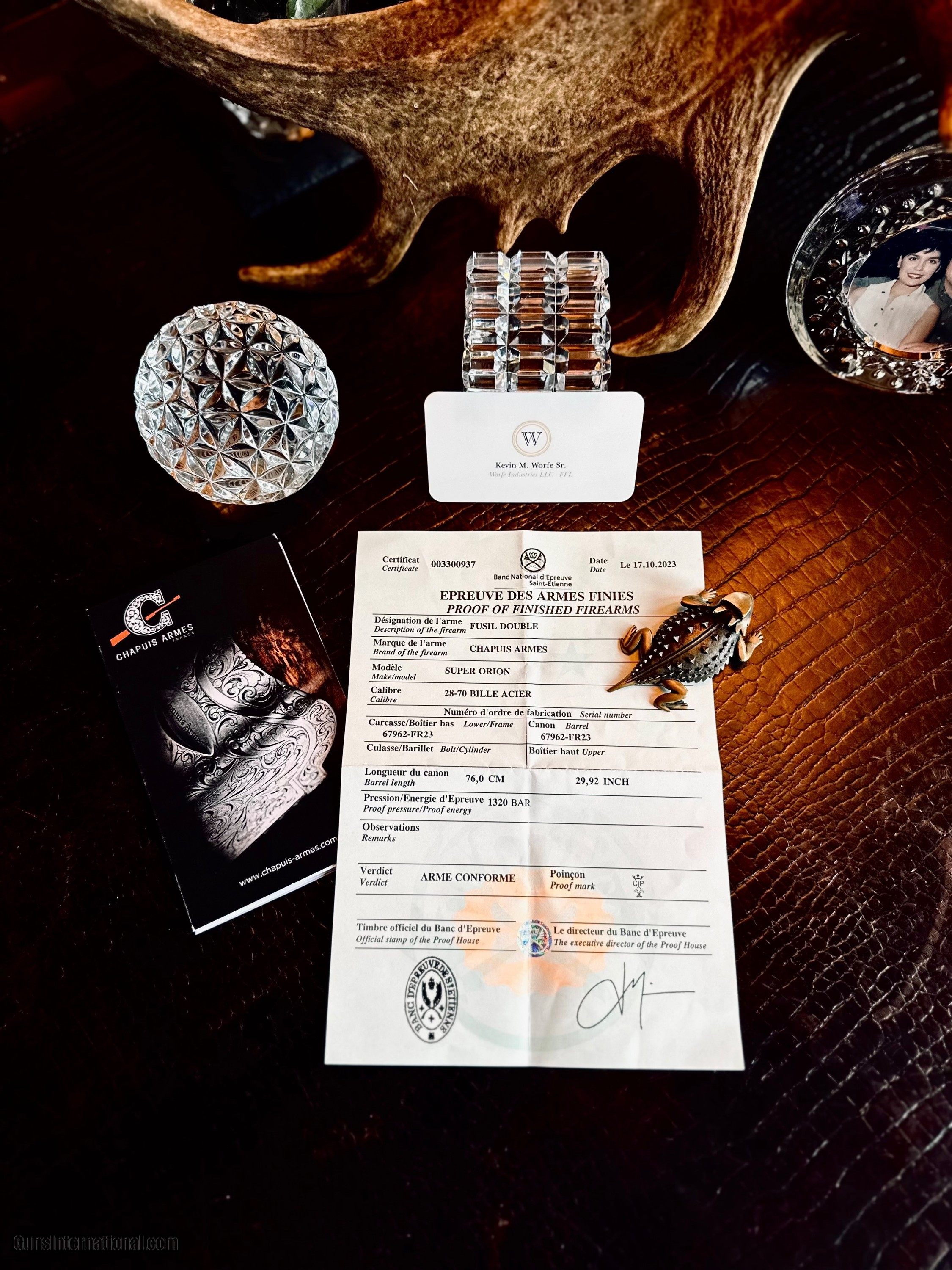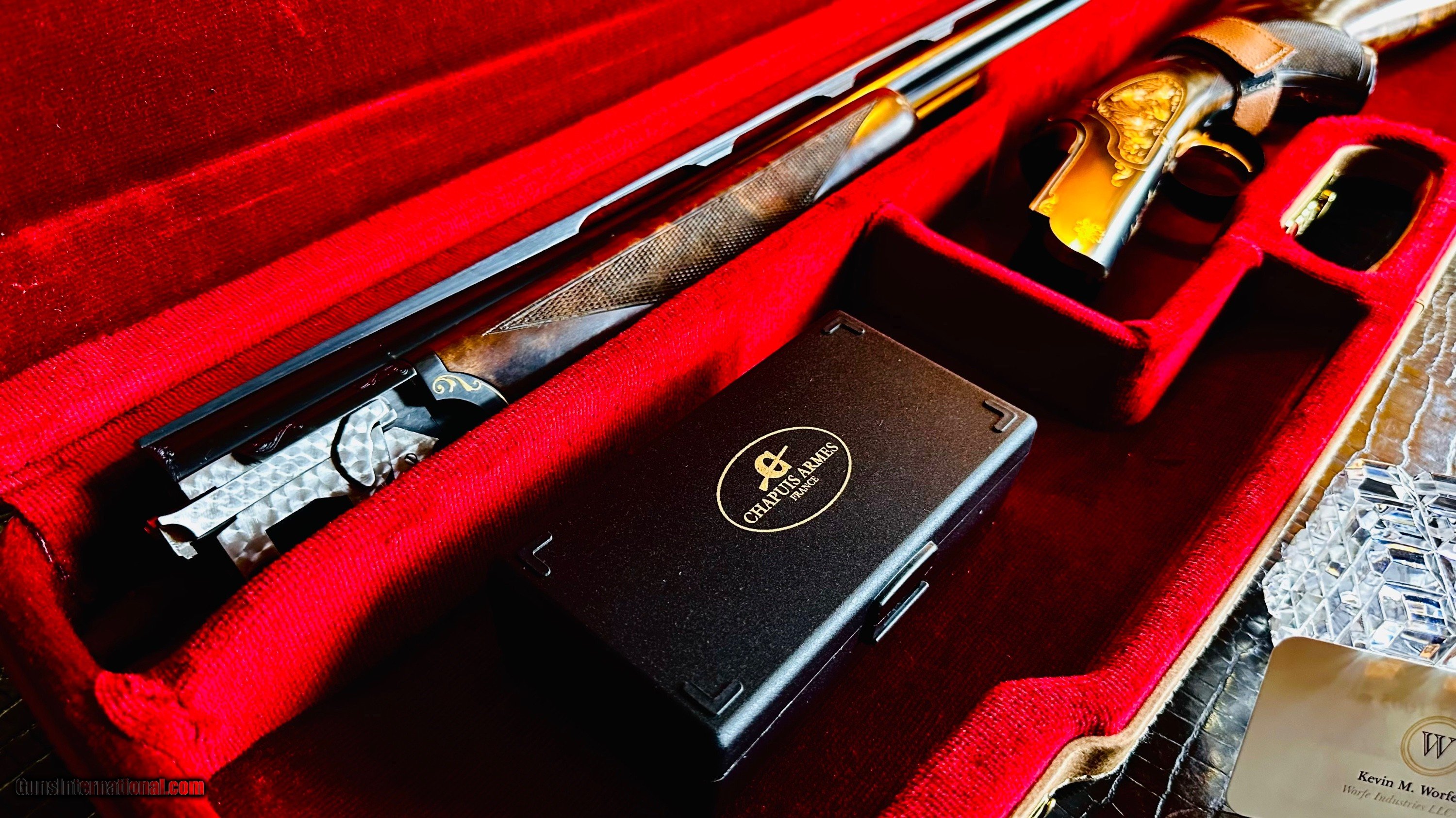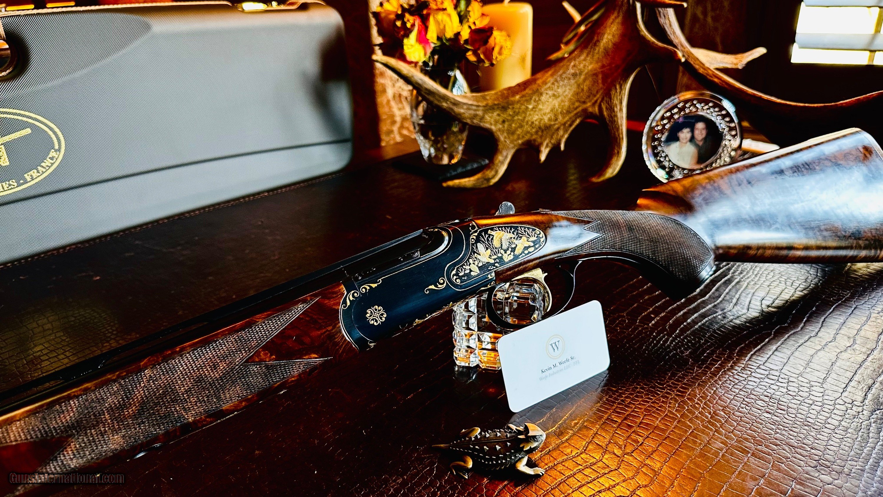 SOLD Shotgun Gauge: 28 Gauge Manufacturer: CHAPUIS ARMES - FRANCE Model: SUPER ORIÓN CAPECE MASTERPIECE CUSTOM FOR CHAPUIS Serial Number: 67962 Barrel Length: 30” Condition: NEW Stock Comb: 1 3/8 Stock Heel: 2 1/4 Stock Cast: RIGHT HAND ROLLED TRIGGER GAURD WITH ONLY A HINT OF RIGHT HAND CAST Fore End: SLENDEREST FIELD FOREND Butt Pad: WOOD CHECKERED BUTTPLATE LOP: 15” Finish: HAND RUBBED OIL Weight: 6 LBS Chokes: 5 SCREW IN CHOKES & TOOL (BOX) Case: NEGRINI CUSTOM CHAPUIS CASE |