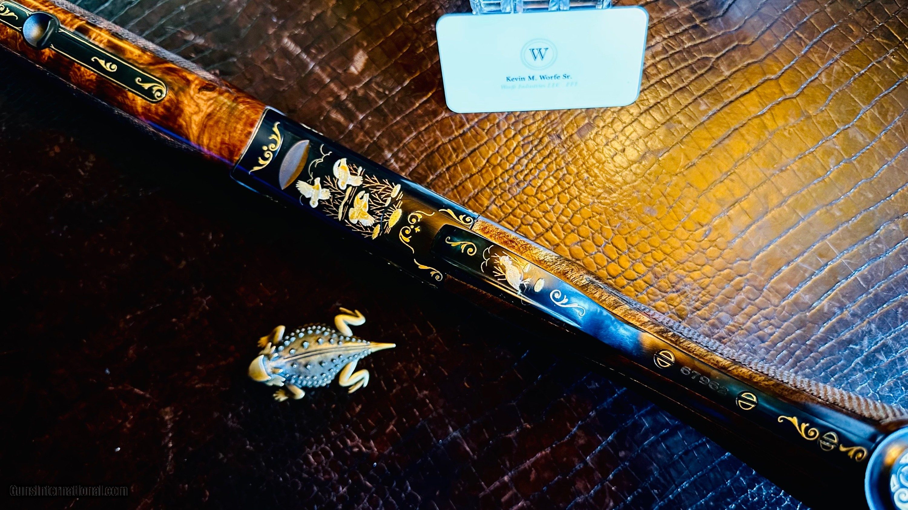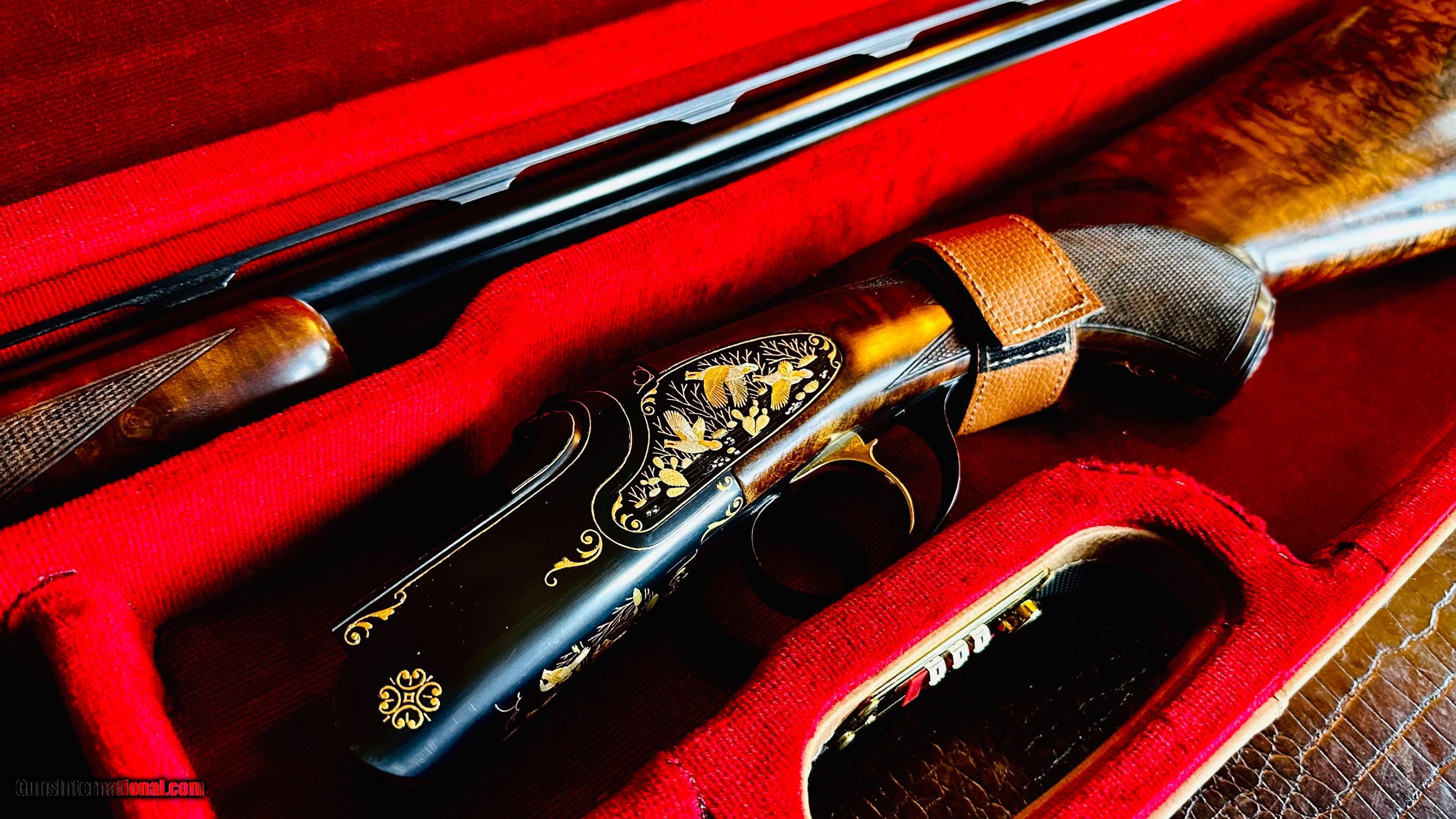 Description: CHAPUIS CAPECE MASTERPIECE 28GA “ONE OF THREE” 30” "THE QUAIL GUN" PISTOL GRIP CAP - CHECKERED BUTT SCALED TINY FRAME - MARBLED TURKISH WALNUT - NEW - SIGNED BY CAPECE ON THE TRIGGER FLOOR PLATE - THE DETAILS ARE THE FINEST OF ROCCO'S WORK - 6 LB MAGIC WAND FOR THE GUNROOM OR DELIGHT IN THE FIELD WITH FAMILY AND FRIENDS - CUSTOM NEGRINI MAKER'S CASE 5 SCREW IN CHOKES - THIS IS THE FINEST CHAPUIS I HAVE EVER LISTED - THE PERFECT ENSEMBLE IN EVERY WAY - BOBWHITE'S ON THE BOTTOM - MEARN'S QUAIL ON THE TRIGGERGAURD - SCALED QUAIL ON THE LEFT PLATE - GAMBEL'S QUAIL ON THE RIGHT PLATE - ORNATELY GOLD ADORNED PISTOL GRIP CAP AND FOREND LATCH Shotgun Gauge: 28 Gauge Manufacturer: CHAPUIS ARMES - FRANCE Model: SUPER ORIÓN CAPECE MASTERPIECE CUSTOM FOR CHAPUIS Serial Number: 67962 Barrel Length: 30” Condition: NEW Stock Comb: 1 3/8 Stock Heel: 2 1/4 Stock Cast: RIGHT HAND ROLLED TRIGGER GAURD WITH ONLY A HINT OF RIGHT HAND CAST Fore End: SLENDEREST FIELD FOREND Butt Pad: WOOD CHECKERED BUTTPLATE LOP: 15” Finish: HAND RUBBED OIL Weight: 6 LBS Chokes: 5 SCREW IN CHOKES & TOOL (BOX) Case: NEGRINI CUSTOM CHAPUIS CASE