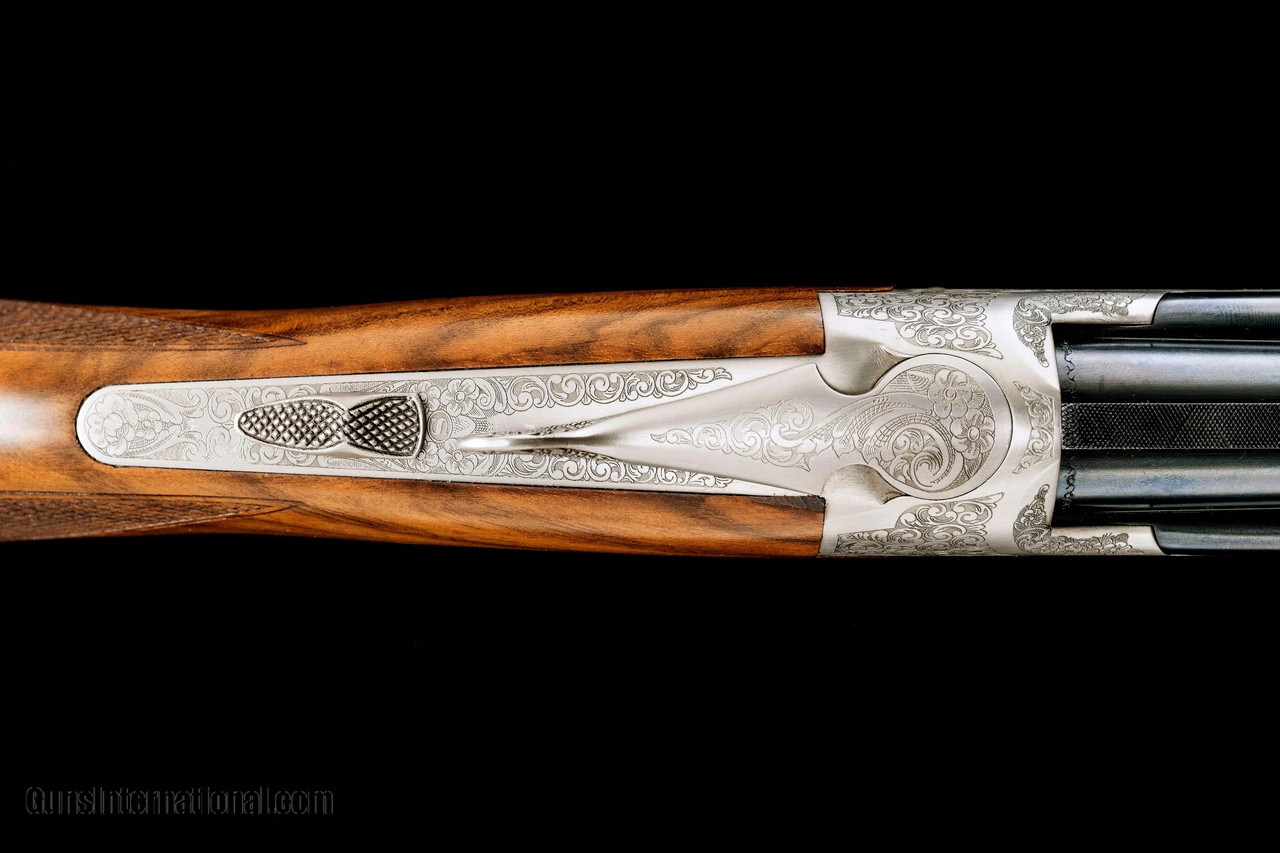 Description: The Faisan (French for “pheasant") is a shotgun designed for versatility. Its natural environment is the upland field, where it excels thanks to its features, pointability, impeccable balance and ideal weight. But it is also eminently suitable for the sporting range, where its fast handling and extreme durability will make it quite at home—or even for the occasional waterfowl jaunt. It comes in three gauges with scaled-down receivers—12, 20 and 28, with interchangeable flush chokes and 3" chambers (2 ¾" for 28 gauge). Grade 3 walnut stock, pistol grip, laser engraved boxlock. SOLD Manufacturer: Chapuis Caliber Info: 28 Gauge Action: Over / Under Triggers: single selective Gauge Info: 28 Gauge Stock Comb: 1 1/4 Stock Heel: 2 1/8 Stock Cast: 1/8" off LOP: 14 1/2 Rib: vent Weight: 7.0 |