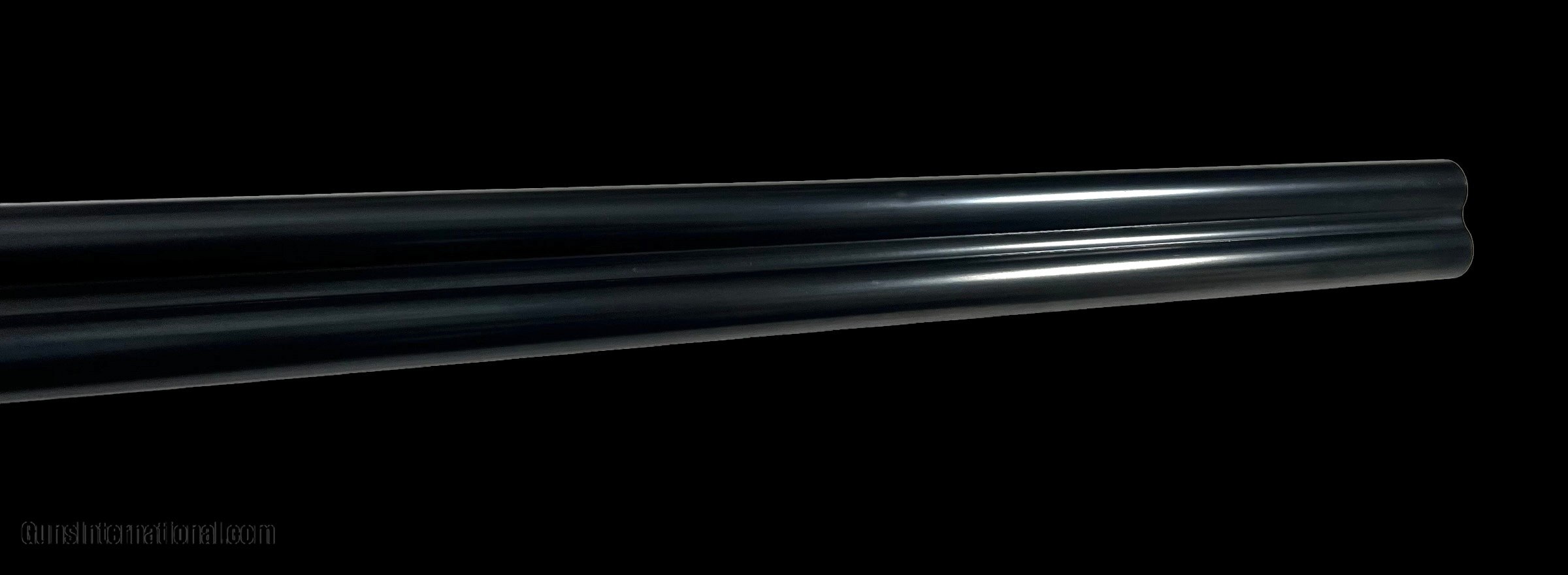 Description: Charles Boswell Best quality boxlock ejector 28" sleeved ejector barrels with flat hand filed rib Excellent bores Strong ejectors 2 1/2" 3 ton nitro proof Choked: .019/.025 M/IM Bores: .729/.729 proofed at .729/.729 Minimum wall thickness: R: 30/1000 L: 31/1000 Lockup is tight (no movement between barrels and action with the forend removed) LOP 15 DAC 1 1/2 DAH 2 1/8 Cast off 3/8" 6lbs 14oz Nice antique Boswell with deep carved fences/full coverage scroll engraving, stunning walnut stock with great dimensions, and tight chokes. Stock has some handling marks and barrels have one very minor dent (6" from the muzzle) on the bottom of the right tube that can be seen in the pictures. Great useable upland gun. We have 2 1/2" shells available for this gun. Open to reasonable offer. No FFL needed for purchase SOLD Antique: Yes Shotgun Gauge: 12 Gauge |
