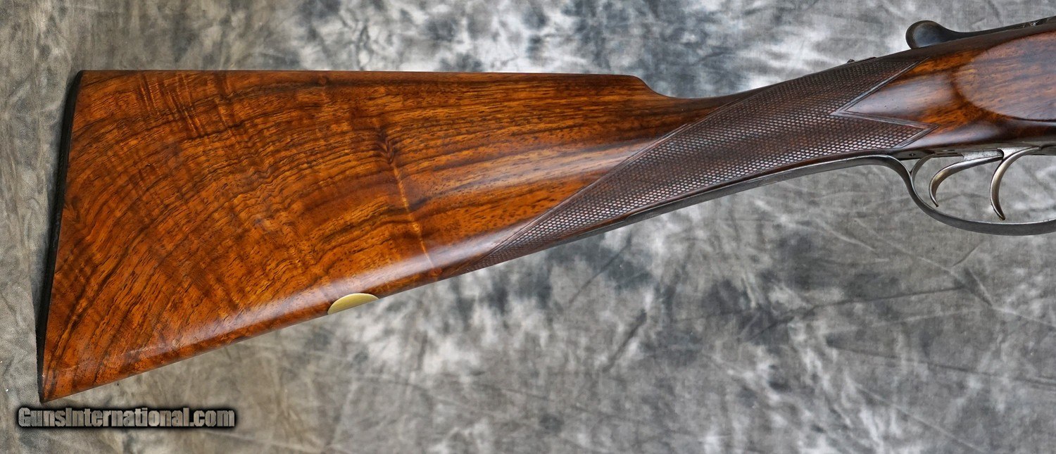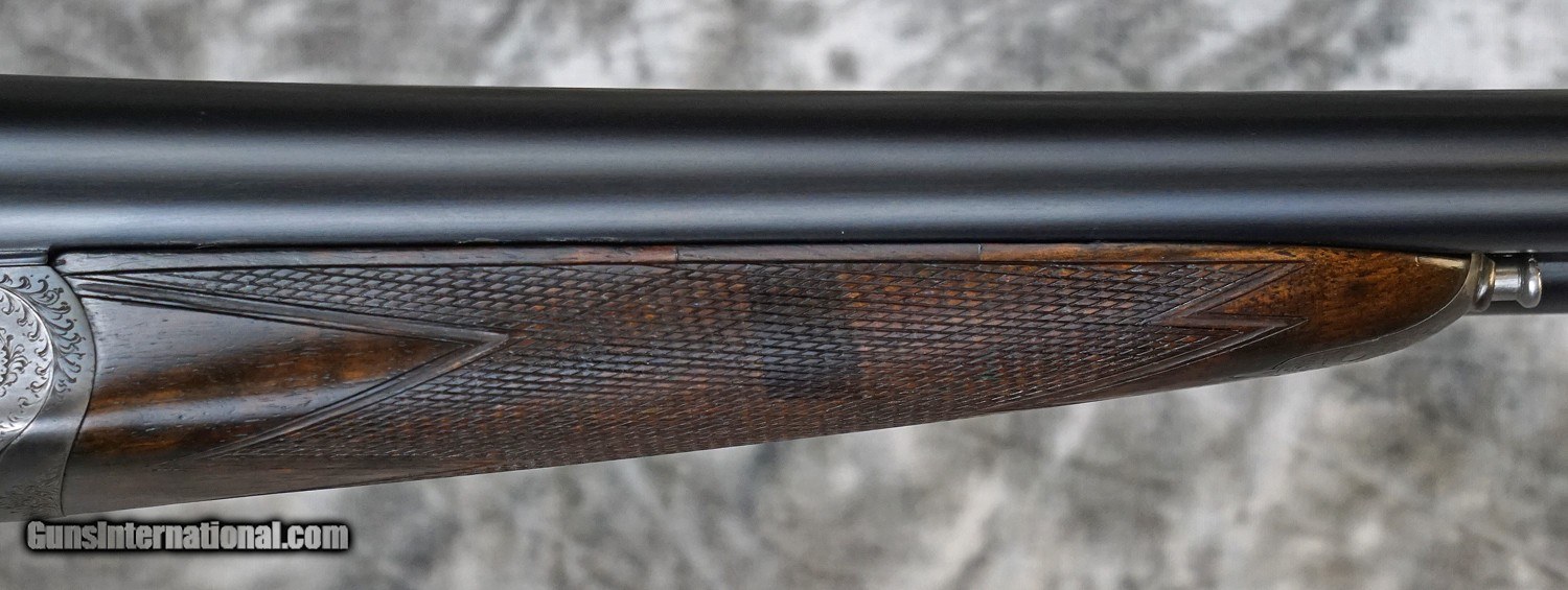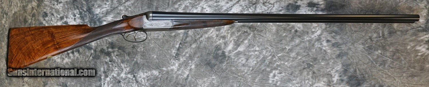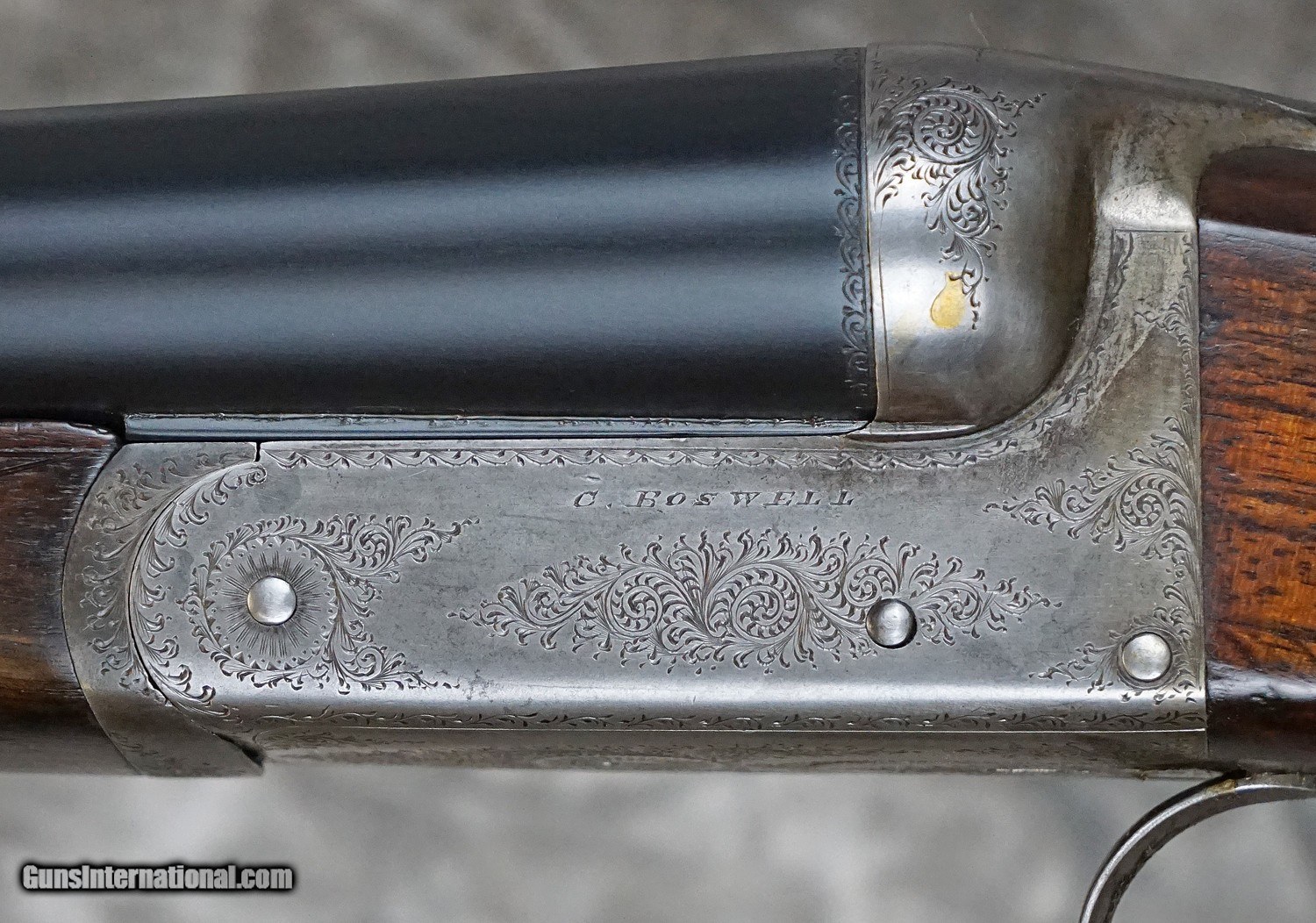 Description: Pre-Owned C. Boswell Boxlock game 12GA with 30" fixed choke (.010/.035) barrels, swamped game rib. Barrels have been stripped, re-laid and re-blued professionally. W.C. Scott style boxlock action with extractors, double triggers. Factory case-color finished action, English scrolls, finish had faded heavily, factory English straight-hand stock to butt plate and splinter forearm. Stock/forearm are highly figured and re-finished. Does not include case, consignment ineligible for trade-ins. SOLD Shotgun Gauge: 12 Gauge |