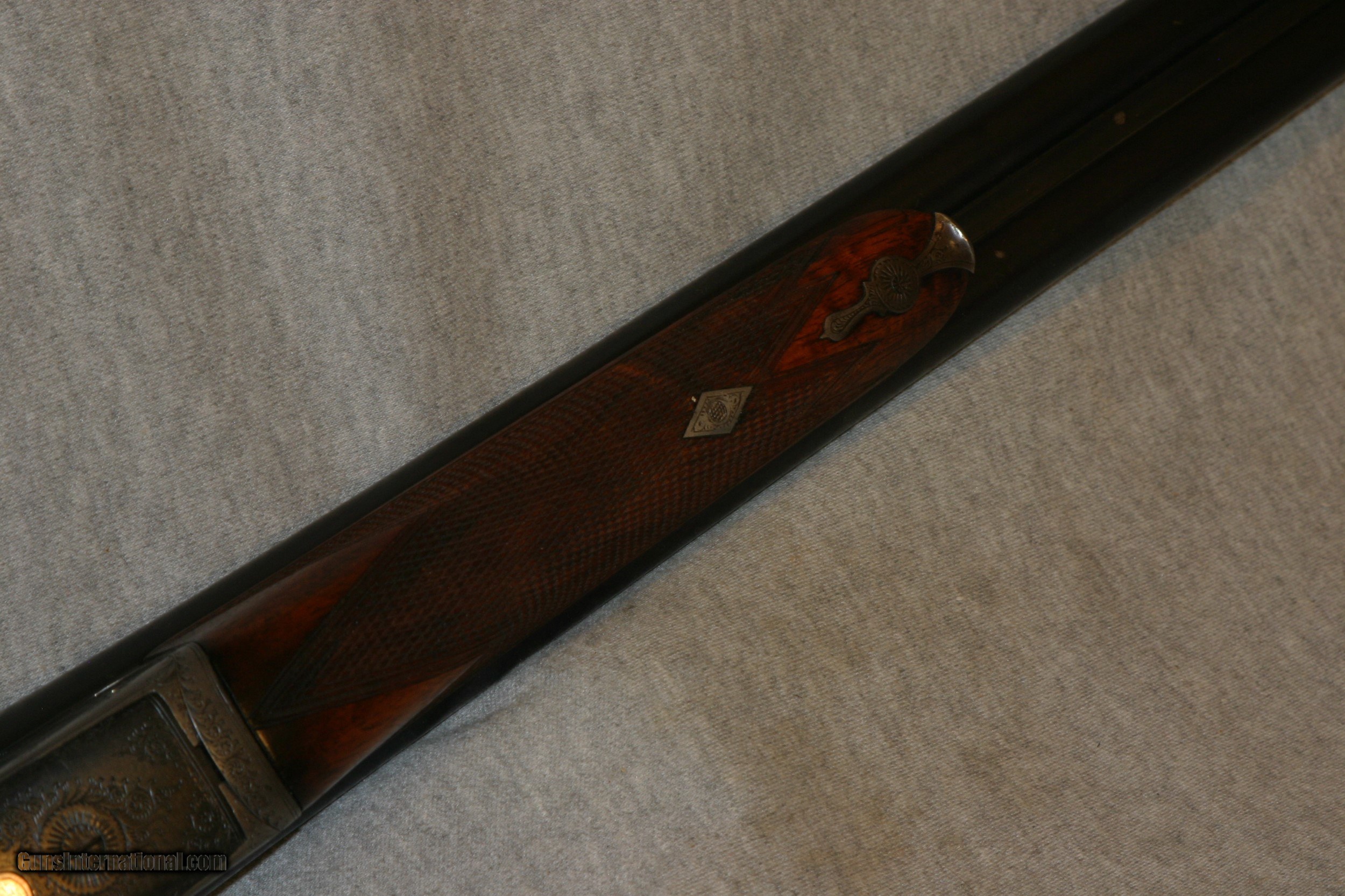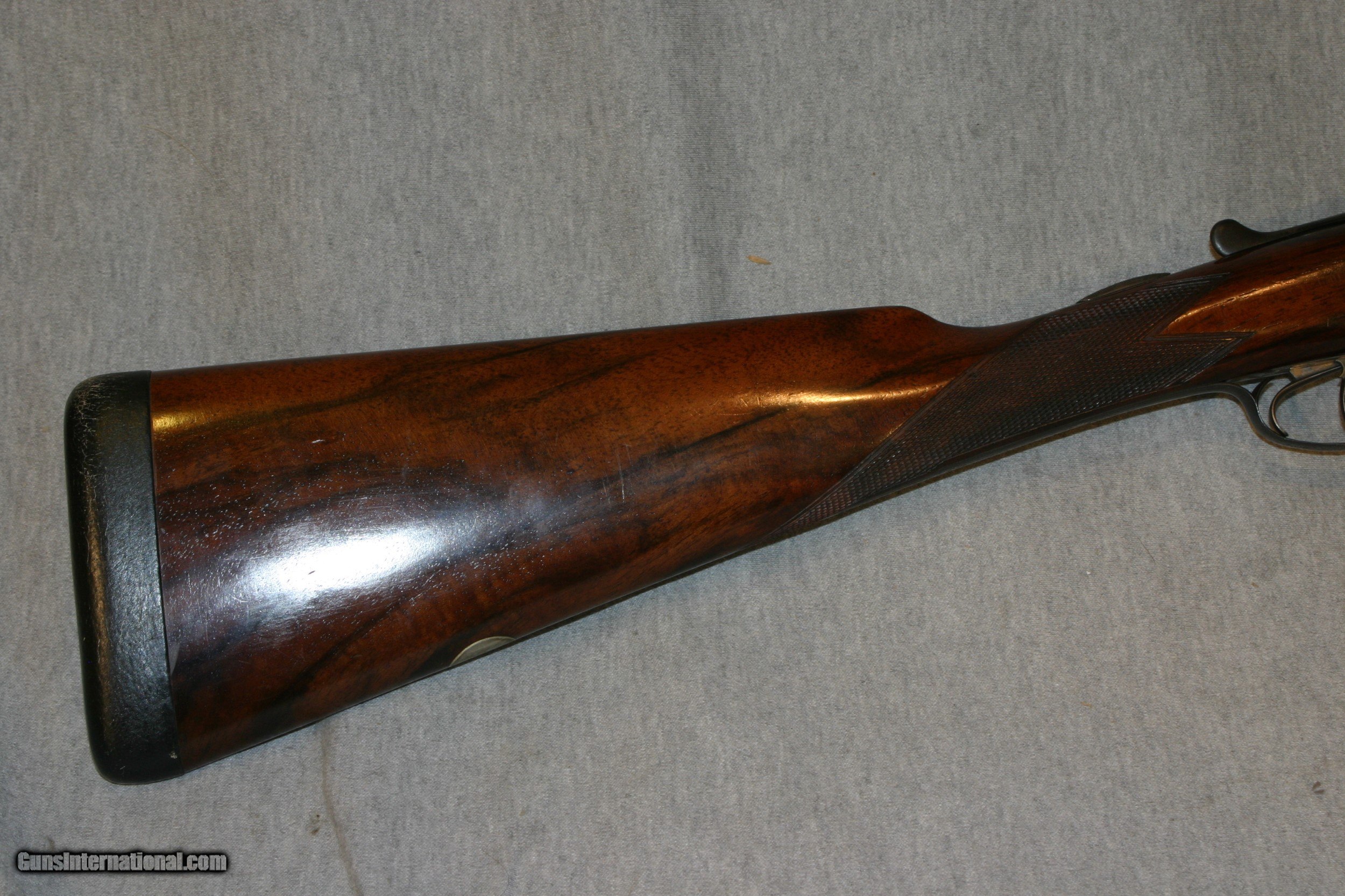 Description: CHARLES BOSWELL,LONDON BOXLOCK WITH 27 3/4" BARRELS IN 28 GAUGE WITH 2.5" CHAMBERS. EXTRACTORS LEATHER PAD.BARRELS APPER TO HAVE BEEN RE-BLACKENED AT SOME POINT. NICE TIGHT ENGLISH BIRD GUN! I/C-SKEET CHOKES. STOCKS ARE SOLID AND GREAT COLOR! 4.75LBS LOP 14 1/2"-1-1/2"- 2-1/4" SOLD |