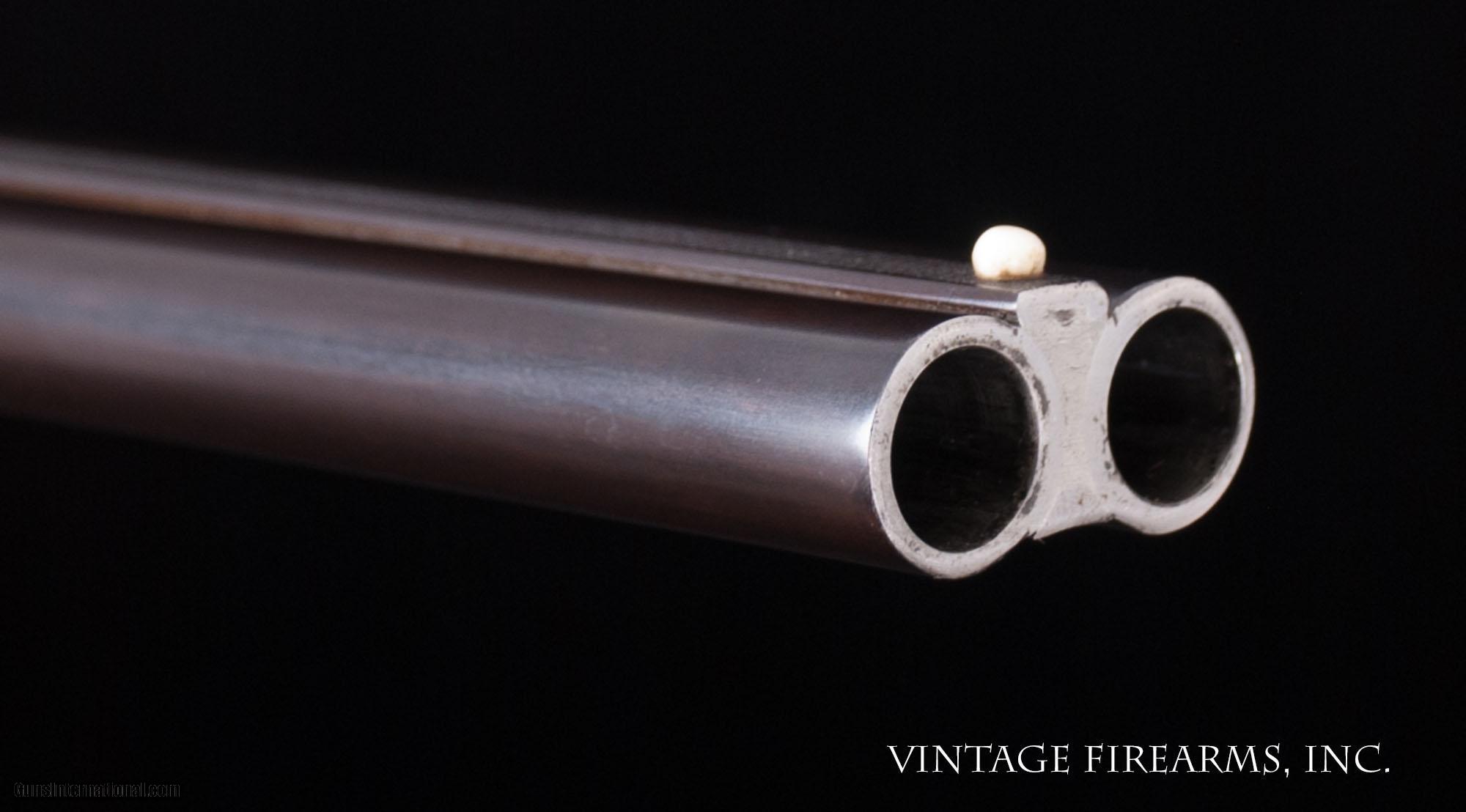 Description: Charles Boswell .410 Bore Side by Side SIDELOCK, EJECTOR, AS NEW, CASED, PRICED RIGHT! General Specs: Charles Boswell, Year 1980's, .410 Gauge, 6lbs 6oz, SxS Serial Number: 410113 Here we have a very well-known British maker in Charles Boswell, and a handy little .410 bore built on a fine sidelock ejector action with a London address inlaid in gold on the rib. Charles Boswell began as a gunmaker in the 1870’s and the family kept the business alive until WWII. The Boswell name has been exchanged a few times in modern days and is now again a Best Gun maker in England. This little .410 bore, sn410113 was made in modern days, likely the 1980’s or 1990’s with modern steels and methods and represent a true British Sidelock ejector gun in the desirable and hard to find .410 bore. The gun is in near new condition, with fine hand cut scroll engraving, fine 28LPI hand cut checkering with mullered border and drop points, checkered but, modern “MAN” sized stock dimensions, stocked to the fences, sculpted frame, gas vented firing pins, intercepting sears, vacant silver stock shield…all of what you would expect in a fine English SLE. It even comes in a decent leather case with trade label and accessories. The gun is made to shoot as well, with a weight of 6lbs. 6oz. and balanced just ahead of the hinge pin so it is not whippy like some .410 bore guns, even with the 26” SK/IC choked barrels with 3” chambers. The balance point of the gun is what effects the dynamic handling characteristics, not the length of the barrels as some mistakenly think. Balanced 3/16” ahead of the hinge pin is ideal for crossing shots. The bores are mirror perfect, blue is 100% factory new, case color remains 99%, perfect screws, auto safety, ivory front bead, perfect mechanics with strong well timed ejectors…what’s not to like? There are few British SLE guns available in .410 bore so don’t hesitate or this one will belong to someone else! Thanks for looking. Barrels Barrel Length: 26" Chokes: SK/IC Bores: mirror Bore Diameter: .414/.415 % Blue: 100% factory new Chambers: 3" Ribs: tight Sights: ivory front Action Action: tight Ejectors or Extractors: ejectors, strong, timed Case Color: 99% factory Screws: perfect Engraving: clear sharp, 50% coverage scroll Trigger Type: double, crisp Trigger Guard Color: 99% Stock Type: pistol grip/splinter forend LOP: 14 3/8" LOP To End Of Wood: same DAH: 2 1/4" DAC: 1 3/8" Cast: 3/8" off Checkering Condition: 28lines per inch, excellent Butt Treatment: checkered butt There are more photos upon request. We offer a 30 day mechanical warranty on this fine shotgun. Call us for full details. PLEASE SEE MY OTHER FINE VINTAGE FIREARMS. Just open one of my ads and click on the line that says “see all items from this seller” and a very nice list of fine sporting and collectible arms will appear. I have many more fine sxs shotguns not yet listed. Thanks for looking! We employ a full time gunsmith on premises and can perform alterations to suit your needs within a few weeks of purchase. Payment Methods: Money Order, Certified Check, Personal Check, Wire Transfer Inspection Period / Return Policy: Three Days from the date the item was received. Sales Tax: 6% Michigan Only Shipping & Insurance: Ground $55.00 We ship internationally! Item Condition: Used Requires FFL?: Yes If you have any questions about this item or payment, please email or call us directly, at #616-292-6240. Thanks! Jay Shachter, Vintage Firearms, Inc We employ a full time gunsmith on premises and can perform alterations to suit your needs within a few weeks of purchase. Common requests are: -stock bending to suit your particular requirements -addition of any specified butt pad to increase length of pull -alteration of chokes to suit your shooting preferences -lengthening of chambers and forcing cones -darkening stock color with penetrating stains -restoring any part of the gun including rust blue, charcoal blue, bone and charcoal case color, wood restoration and checkering recuts. If you like one our guns but it needs "tweaked", let us know and we can quote you a time and price. Some enthusiasts like the guns "as found" and others want them "just so". We often list guns as found and let the particular buyer choose how they want their gun to fit or look. SOLD |