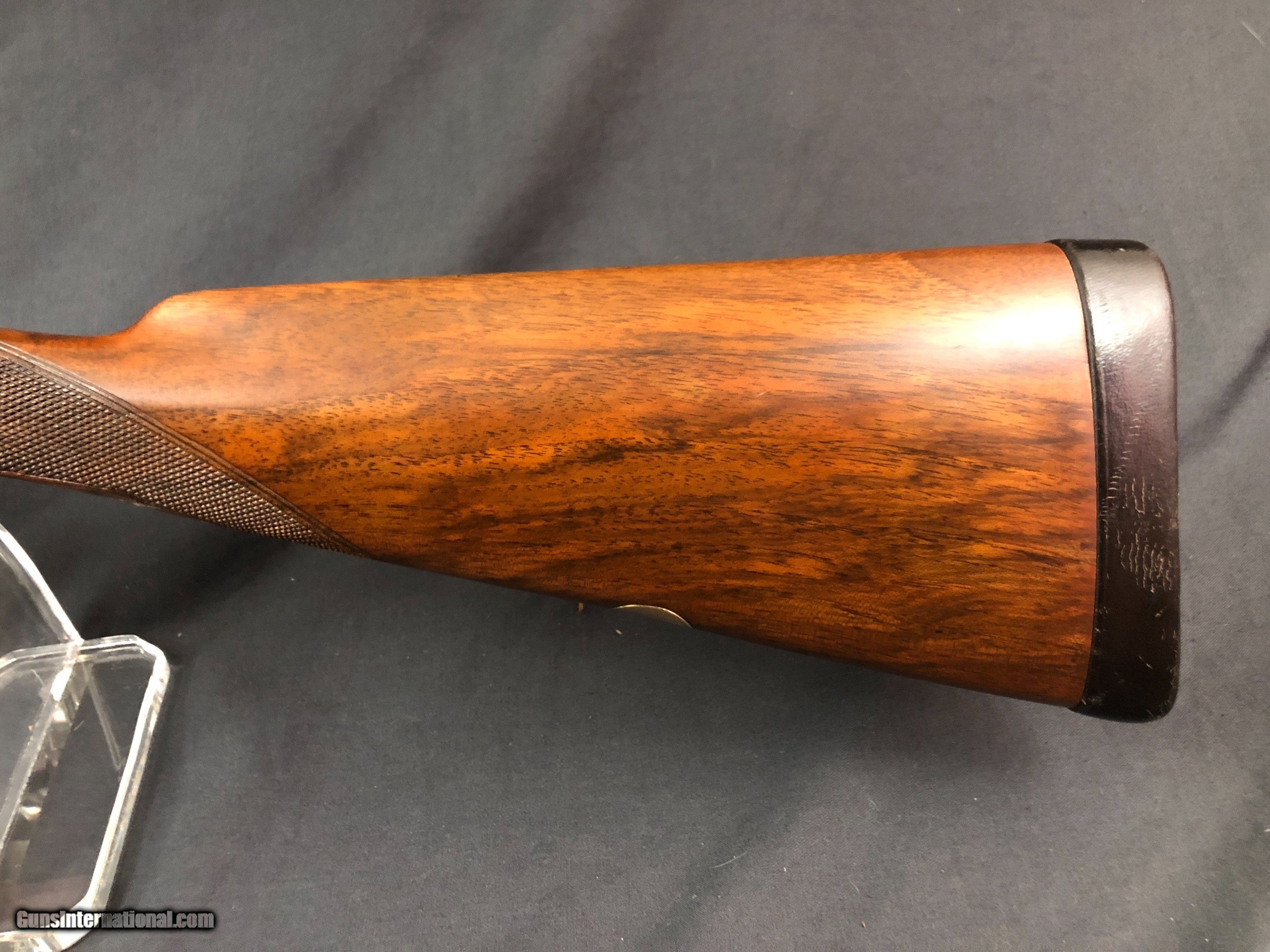 Description: Sale Pending. A very nice London made English game gun. Locks up tight. Barrels ring. Bright bores. Metal restored by Bachelder . Please call Mark 715-814-1295 Pack and ship $45 LAYAWAY: Layaway is available with 1/3 down of final total price including shipping/insurance within 7 days . Balance due in 45 days. Layaway Sales and guns modified at time of sale are FINAL with no refunds, no inspections, no returns. Chokes my be opened to your choice at time of sale for $50 per barrel . SOLD Shotgun Gauge: 12 Gauge Manufacturer: CHARLES BOSWELL Barrel Length: 28IN Chambers: 2 3/4 Ejectors: YES Condition: EXCELLENT RESTORED Bore Condition: BRIGHT Stock Comb: 1 3/4IN Stock Heel: 2 3/4IN Butt Pad: LEATHER COVERED LOP: 15 1/2IN Weight: 7LB 6OZ Choke Left: MODIFIED Choke Right: SKEET Engraving: HAND ENGRAVED GAME Proof:Nitro: YES |