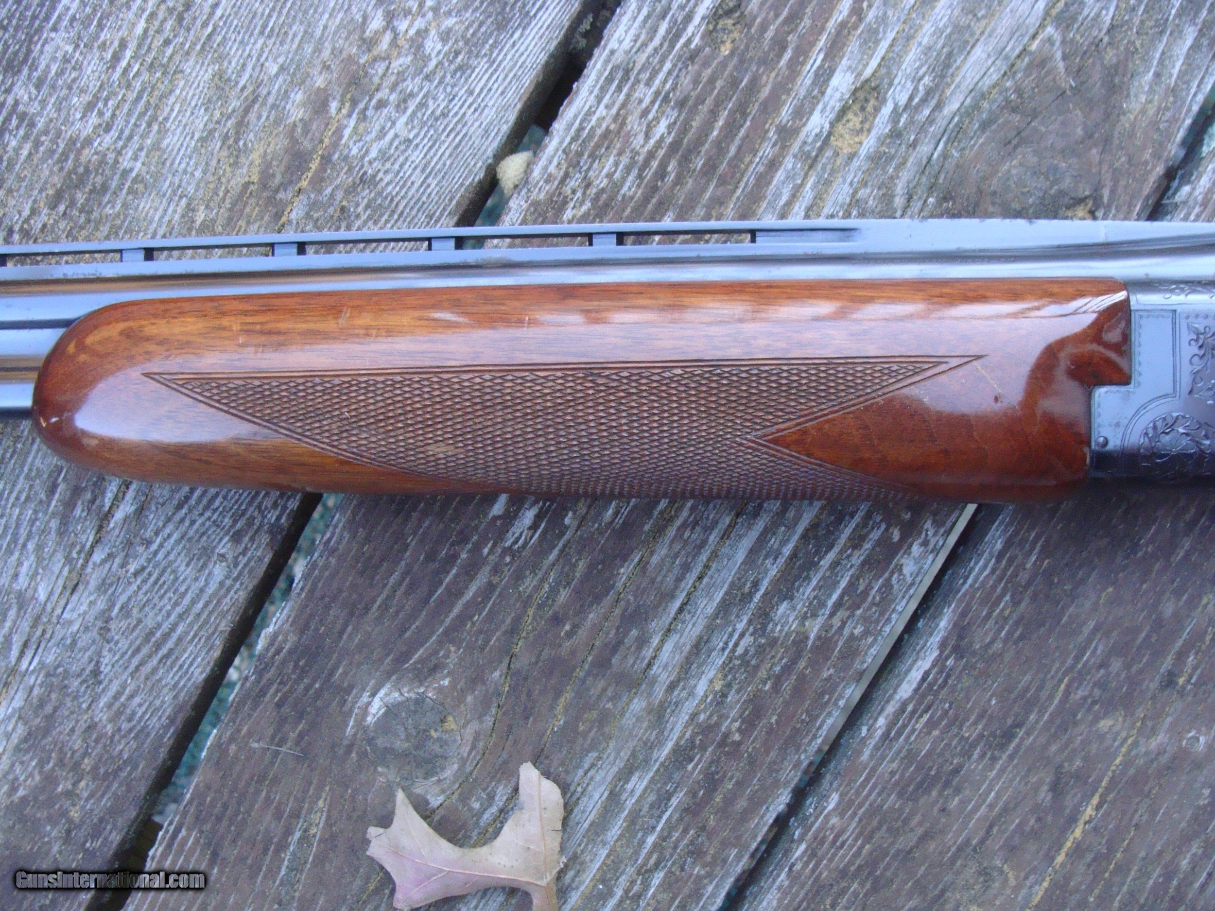Description: We are always delighted to be able to bring in one of these fine vintage Charles Daly Over Unders in sub gauges, esp hard to find in 410. Made in the same facility as were the Browning O/U Citoris but more similar in appearance to the Belg made 410 Superposed ....410 Superposed now fetch up to almost 5 k if excellent. This gun is in good condition for a field gun only a few modest marks on stocks with most finish remaining, blue on receiver is exceptional but there is light crud on outside of barrels esp near the front half and some tiny specs on t. guard. If someone wanted it to be a show piece the barrels only could be reblued for not too much $ at some future date but fine for hunting, skeet and field use. LOP on handsome nicely checkered butt stock is approx 14" to factory butt plate, drop at comb approx 1 1/2 and at heel approx 2 1/2 or perhaps a shade more. Desirable round knob pg. Barrels are 26" and bores are mirror. Will shoot 2 1/2 or 3" ammo, choked approx IC/IC. The overall appearance of this gun is still very good to excellent, the imperfections and freckles on outside of barrels is especially noticble up close but they are there...if you are someone who cannot stand these this is not the gun for you. Top lever is more or less straight and checkering is still clean and sharp. Gun locks up very tight and does not appear to have been used much This is a bargain at this price ! Shipping is $ 49.00 to any location in the lower 48 states USPS priority WE ARE AN FFL 01 IN THE NORTHEAST WHERE MANY FINE US MADE GUNS WERE PRODUCED AND WE OFTEN GET SOME FAIRLY HARD TO FIND AND HARDLY USED GUNS. WE HAVE OVER 1500 SALES ON ALL SITES WITH AN A+ RATING ON ALL (WE ALSO KEEP AN INVENTORY OF OLDER PERIOD CORRECT SCOPES; CALL WITH NEEDS) WE MOSTLY PICK VERY CLEAN GUNS, PRICE THEM FAIRLY AND WORK WITH MODEST MARGINS WE ARE HAPPY TO TAKE CONSIGNMENT GUNS AND COLLECTIONS OR WILL BUY YOURS OUTRIGHT. WE SOMETIMES ARE EMPLOYED FOR ESTATE PURPOSES AND VALUATIONS. CT RESIDENTS MUST CONTACT US TO UNDERSTAND OUR IN STATE TRANSFER POLICIES. WE CAN TAKE A CREDIT CARD HOWEVER THERE IS A 3% ADD ON BASED ON THE TOTAL FOR USE OF A CARD. IT IS ALWAYS THE BUYERS RESPONSIBILITY TO GET US A COPY OF YOUR RECEIVING FFL'S LIC AND WE REQUIRE A COPY OF YOUR PHOTO ID BEFORE THE GUN SHIPS YOU MUST CALL YOUR FFL.WE DO NOT CALL FOR YOU. LAYAWAY PURCHASES NOT COMPLETED OR ANY RETURNED ITEM UNLESS NOT AS DESCRIBED ARE SUBJECT TO A 10% RELISTING/RESTOCKING FEE AND MUST BE RETURNED WITH NO MARKS OR SCRATCHES, SENT BACK INSURED, PRIORITY SIGNATURE REQUIRED WE DO NOT OFFER AN INSPECTION PERIOD PER SE HOWEVER GUNS MAY BE RETURNED IF NOT EXACTLY AS DESCRIBED BUT UNDER NO CIRCUMSTANCE MAY ANY GUN TO BE RETURNED HAVE BEEN REMOVED AT ANY TIME FROM RECEIVING FFL DEALERS PREMISIS AND WE MUST AUTHORIZE AND AGREE IN WRITING PRIOR. SOLD |