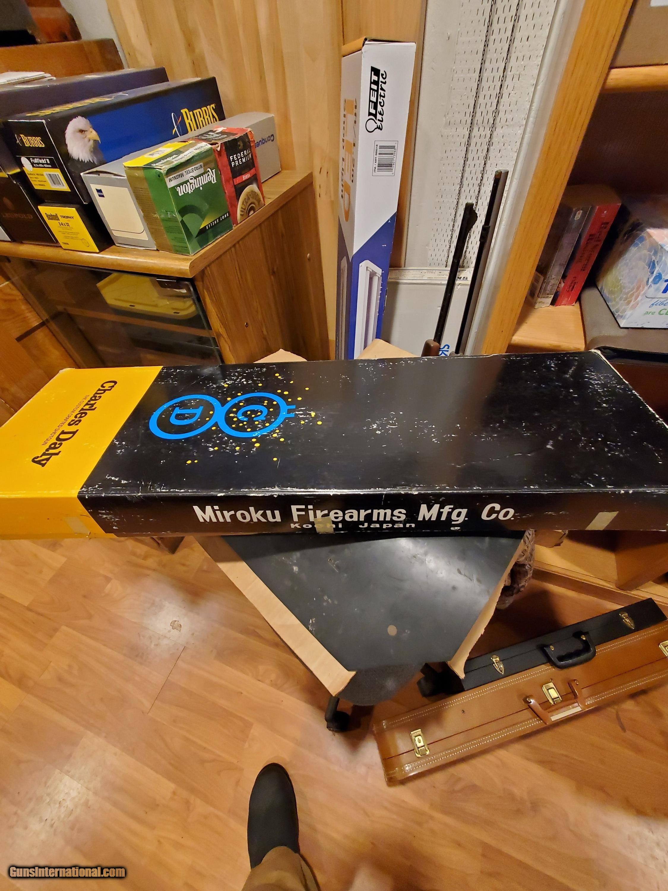 Description: Price Reduced This is a very nice example of an early Charles Daly/Miroku Superior grade Trap shotgun. The wood is in very nice shape with minor handling marks. The bluing is also in very nice shape. This gun has beautifully engraved stainless steel. The shotgun only shows minor wear and handling marks as shown in the pictures. There is a very small dent in the barrel which I have shown in the last picture. You can just see a tiny mark on the inside of the barrel. It comes in the boxes it was originally shipped in. The Charles Daley box does not go with this gun. The box is for a Hunter Grade that has a different serial number and the info on the end of the box showing this has been partially marked out but is easy to read. I don't know how that happened but you get that box plus the box that the Daly box was shipped in that shows the original owner and the store it was ordered from. Both will be shipped in a newer box so they don't get any more wear than they alrready have. I always like to keep the original boxes with the guns to preserve the history. This gun is on consignment with me so feel free to shoot me an offer if you'd like and I will forward it to my client. Price does not include shipping Please contact me with any questions. Thanks for looking. Robert Northwest Firearms Service 509-860-1773 SOLD Shotgun Gauge: 12 Gauge Manufacturer: Miroku Model: 800 Serial Number: 112805 Barrel Type: O\U Butt Pad: Rubber Manufacture Date: Mid 1960's Chokes: Full/Full Engraving: Yes Case: Original boxes Item Location: Washington |