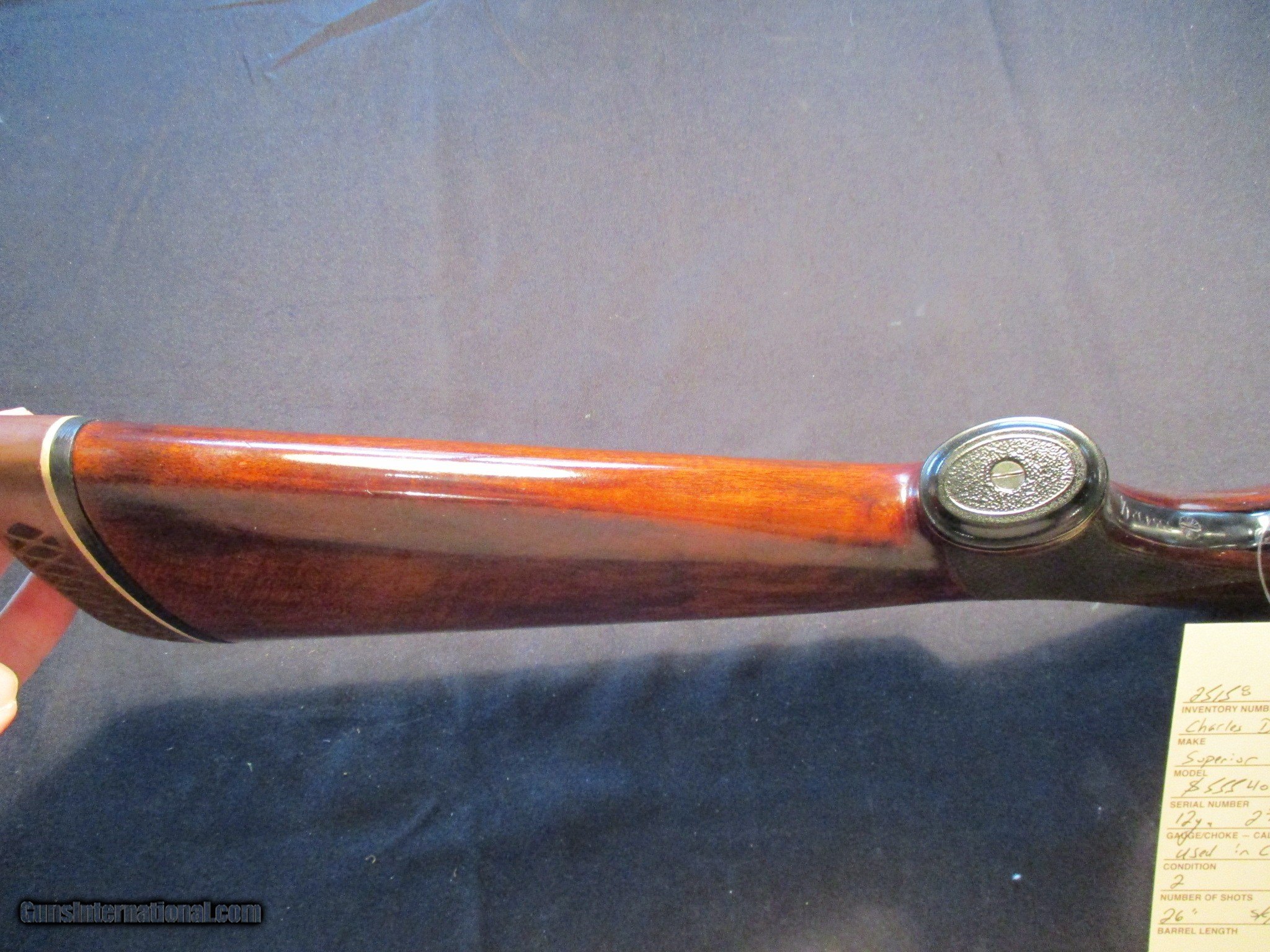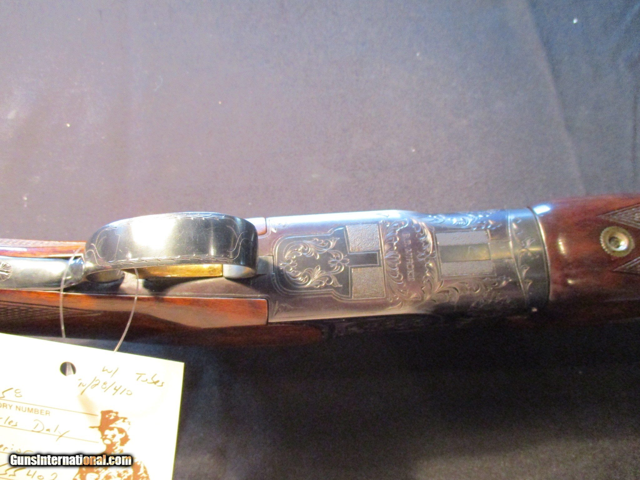 Description: Charles Daly (Miroku, Made in Japan) Superior, 12ga, 26" barrels, 2.75" chambers, Fixed Skeet and Skeet chokes. Factory finish on both wood and metal, nice clean gun. LOP is 13 3/4" as pictured. The gun has also been fitted with a set of 20ga, 28ga, 410ga small gauge tube set. All packed in the aluminum hard case as shown. Sn is S5554xx. Email me if you would like these pics sent to you, they will come through bigger and better than on the listing page here. We do offer Lay-A-Way. Our standard terms are 25% down, 90 days. Initial deposit is not refundable. Email me with any questions. I am a store front dealer, and I will close s if the gun sells locally. Once it has aI will pull it from my shelves. Please check your local laws to confirm it is legal to own in your state! Buyer pays $25 shipping and insurance to your FFL in the lower 48. AK, HI or PR is extra. I will ship to California, NO PROBLEM! All my guns come with a non firing, 3 day unconditional return privilege, from the day UPS delivers to your dealer. Buyer pays shipping both ways if the gun comes back. I can add a new hard case by PLANO for secure shipping for $25 if the buyer wishes (highly recommended, cheap insurance, really helps keep the UPS monster from eating my guns!). No sales tax on guns ship out of Kansas, guns sold in Kansas are subject to Kansas sales tax. I am a licensed FFL, and will include a copy of my FFL with the gun for your dealers records. I will ship to a C&R if the gun is eligible. I will ship to California, but you need to confirm the gun is legal where you are, California or other. I am always looking for good clean, old original Winchesters to buy, consign, or trade, especially pre '64's model 70's and model 54's. WE ALSO TRADE FOR CLASSIC CARS AND TRUCKS! Email me with any questions, and good luck! SOLD |