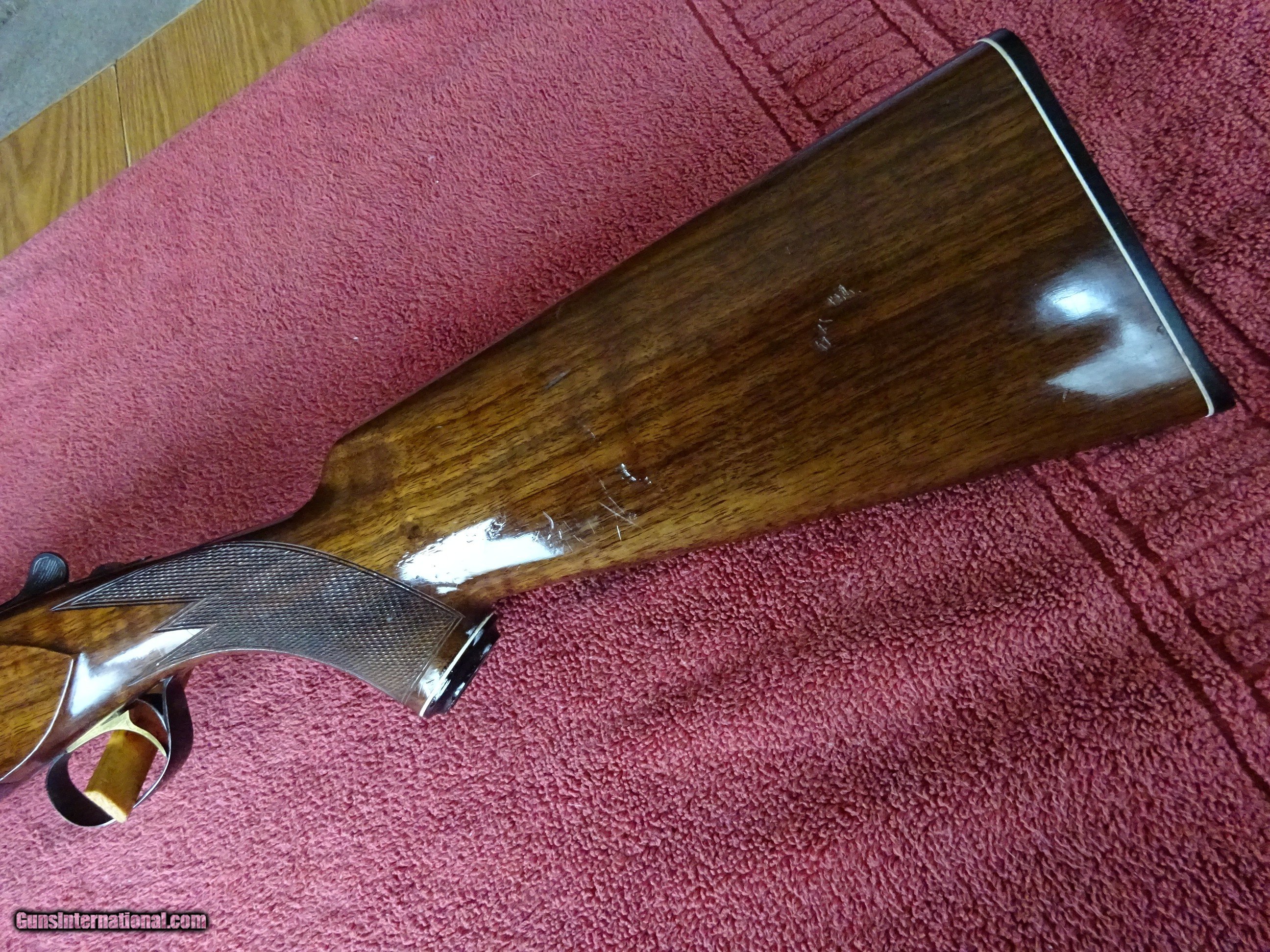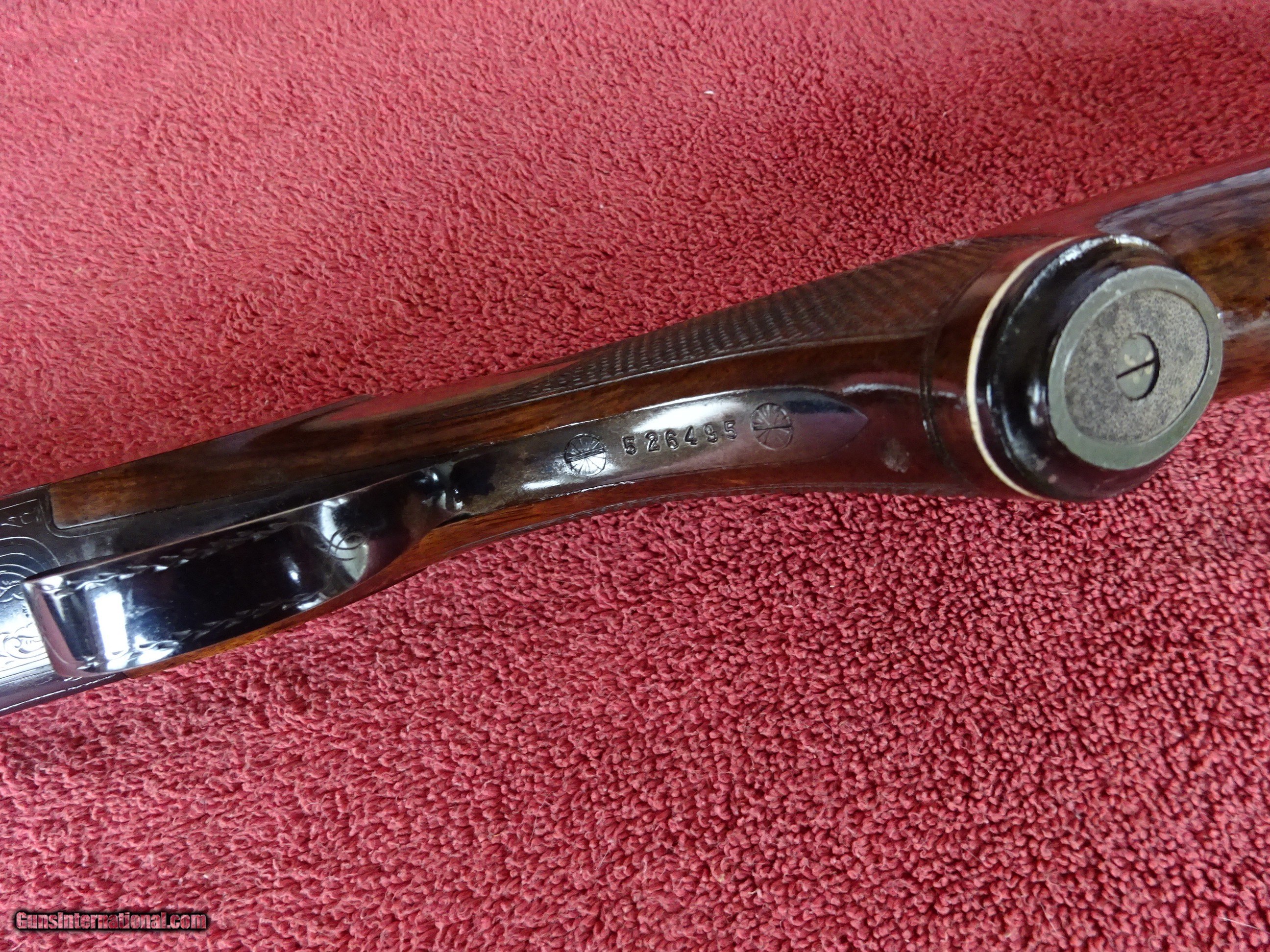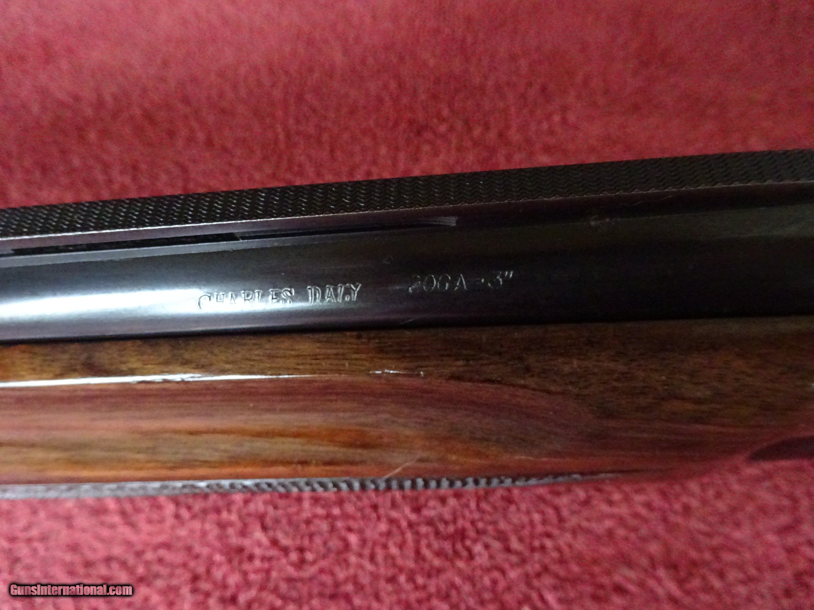 Description: CHARLES DALY, MIROKU KOCHI, JAPAN, SUPERIOR GRADE 20 GAUGE OVER/UNDER. 28" VENT RIB BARRELS, EXCELLENT BLUE, NO MUZZLE OR EDGE WEAR. IMP. CYL. AND MODIFIED, 3" CHAMBERS, AUTOMATIC EJECTORS. ATTRACTIVE DEEP CUT SCROLL ENGRAVING, GOLD SINGLE SELECTIVE TRIGGER. PISTOL GRIP STOCK, BEAVERTAIL FOREARM, EXCELLENT CHECKERING. SCUFFS AND DINGS IN THE VARNISH FINISH. ORIGINAL GRIP CAP AND MIROKU MARKED BUTTPLATE, 1 1/2" X 2 1/4" X 14", 6 POUNDS 11 OUNCES. HIGH QUALITY GUN, LOOKS AND HANDLES LIKE A BROWNING SUPERPOSED. MADE 1963 TO 1972. $875.00 + $70.00 Insured shipping to an FFL address. Layaway is available. See all Pats gun listings on this site! We also have hundreds of ORIGINAL gun company advertising & memorabilia pieces available for sale on our site SPORTINGCOLLECTIBLES. We have no reprints or reproductions. Email for more information. If you need to call, morning or evening is best, and please note the Seller's Inventory number. SOLD Curio/Relic: Yes |