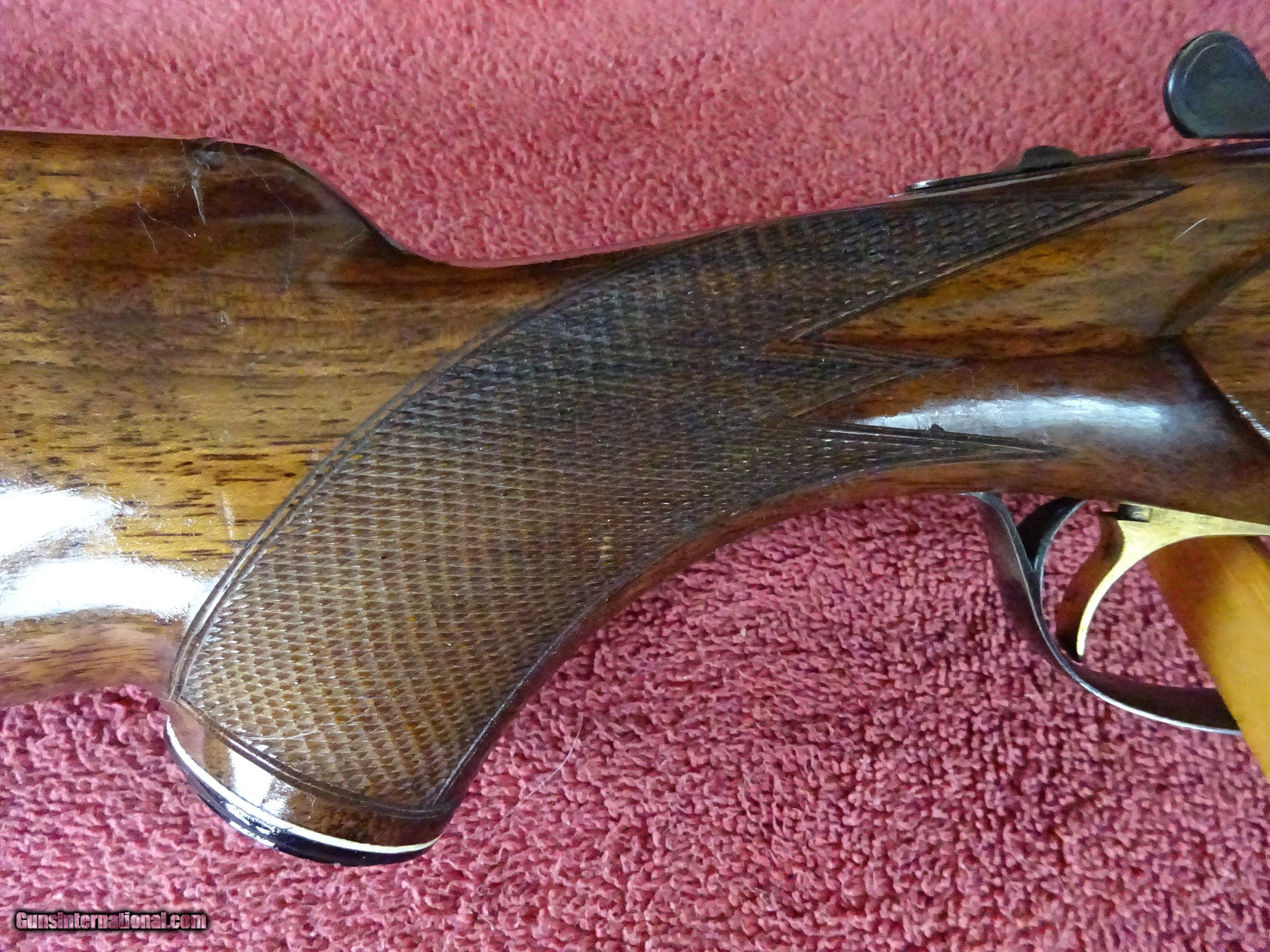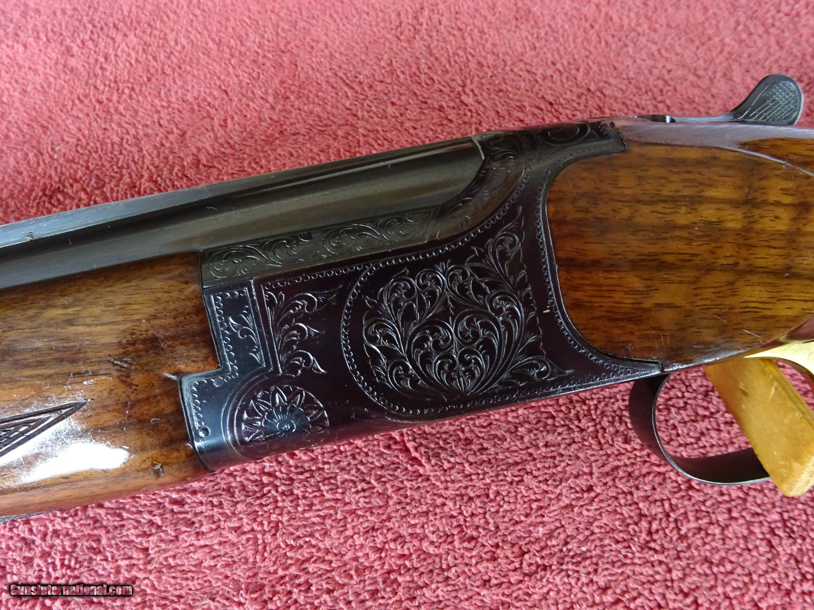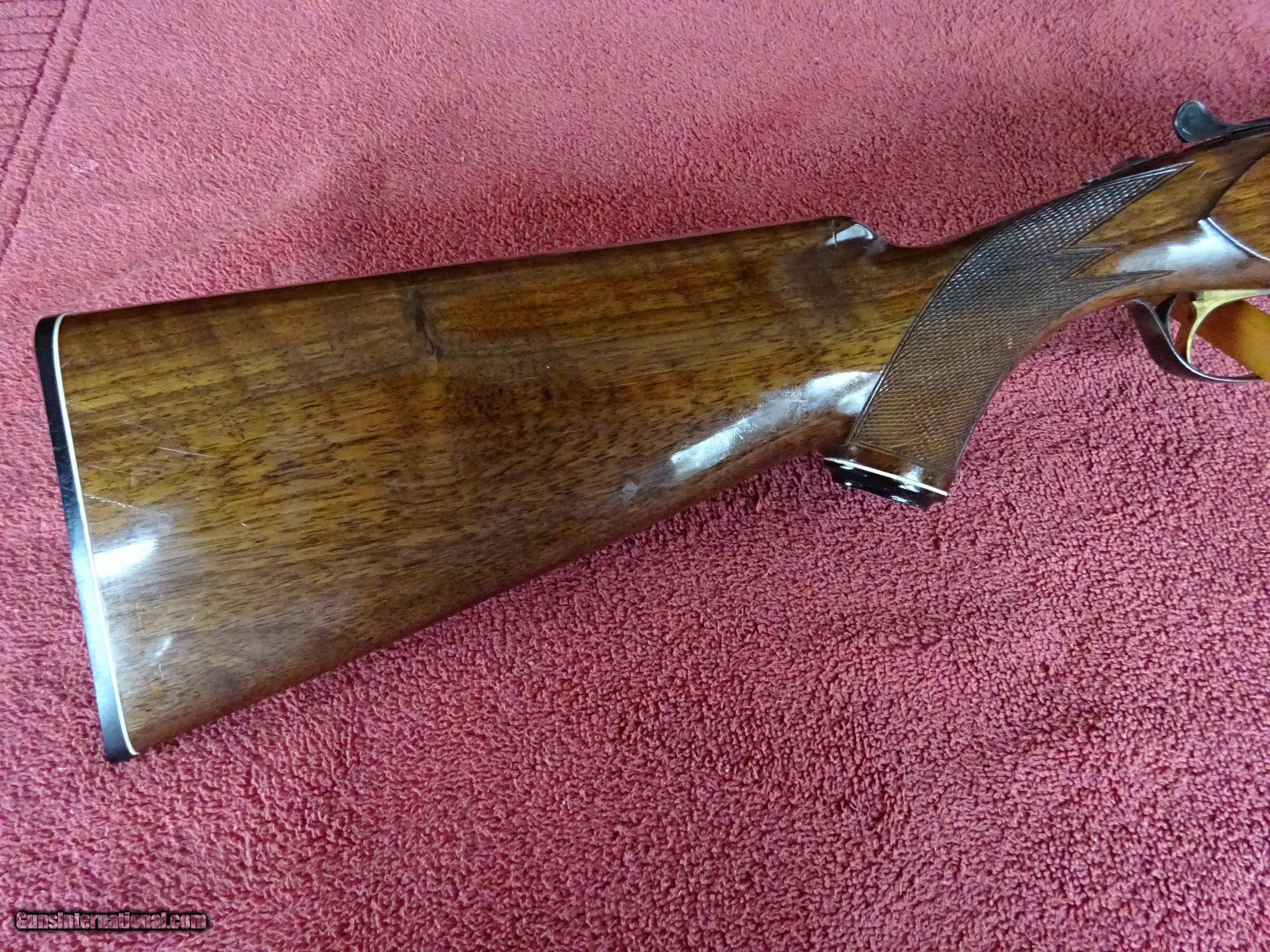 Description: CHARLES DALY, MIROKU KOCHI, JAPAN, SUPERIOR GRADE 20 GAUGE OVER/UNDER. 28" VENT RIB BARRELS, EXCELLENT BLUE, NO MUZZLE OR EDGE WEAR. IMP. CYL. AND MODIFIED, 3" CHAMBERS, AUTOMATIC EJECTORS. ATTRACTIVE DEEP CUT SCROLL ENGRAVING, GOLD SINGLE SELECTIVE TRIGGER. PISTOL GRIP STOCK, BEAVERTAIL FOREARM, EXCELLENT CHECKERING. SCUFFS AND DINGS IN THE VARNISH FINISH. ORIGINAL GRIP CAP AND MIROKU MARKED BUTTPLATE, 1 1/2" X 2 1/4" X 14", 6 POUNDS 11 OUNCES. HIGH QUALITY GUN, LOOKS AND HANDLES LIKE A BROWNING SUPERPOSED. MADE 1963 TO 1972. $875.00 + $70.00 Insured shipping to an FFL address. Layaway is available. See all Pats gun listings on this site! We also have hundreds of ORIGINAL gun company advertising & memorabilia pieces available for sale on our site SPORTINGCOLLECTIBLES. We have no reprints or reproductions. Email for more information. If you need to call, morning or evening is best, and please note the Seller's Inventory number. SOLD Curio/Relic: Yes |