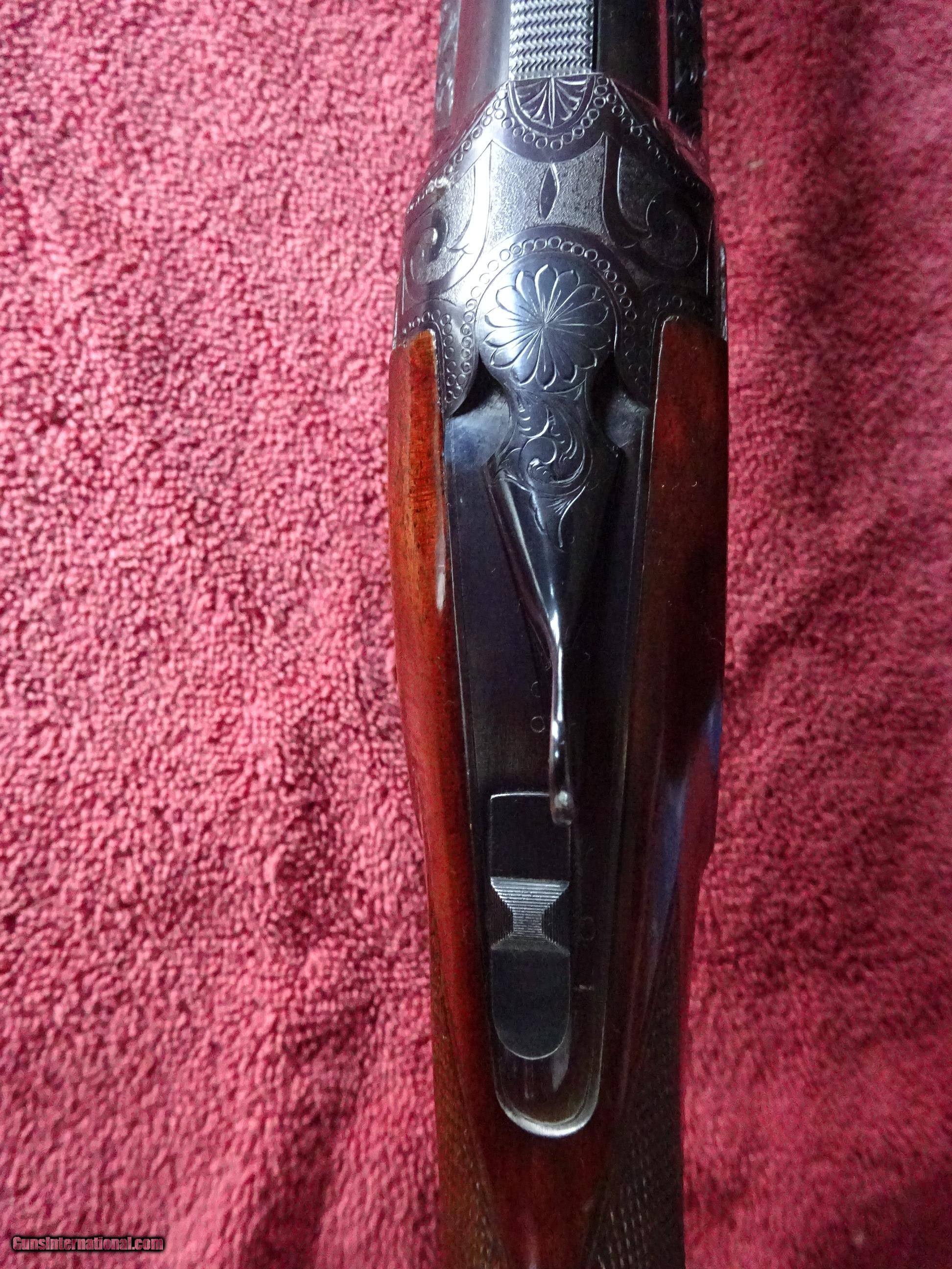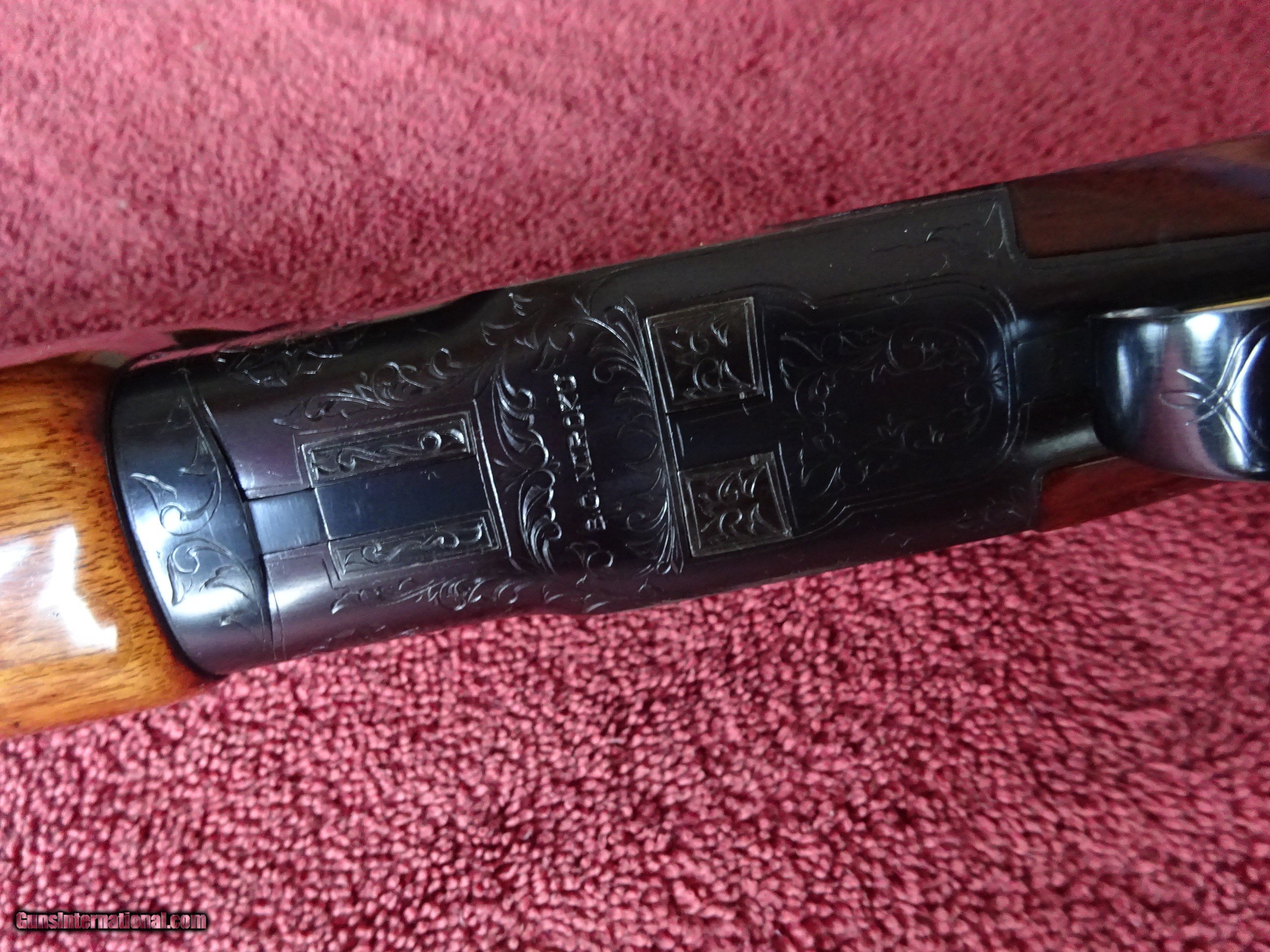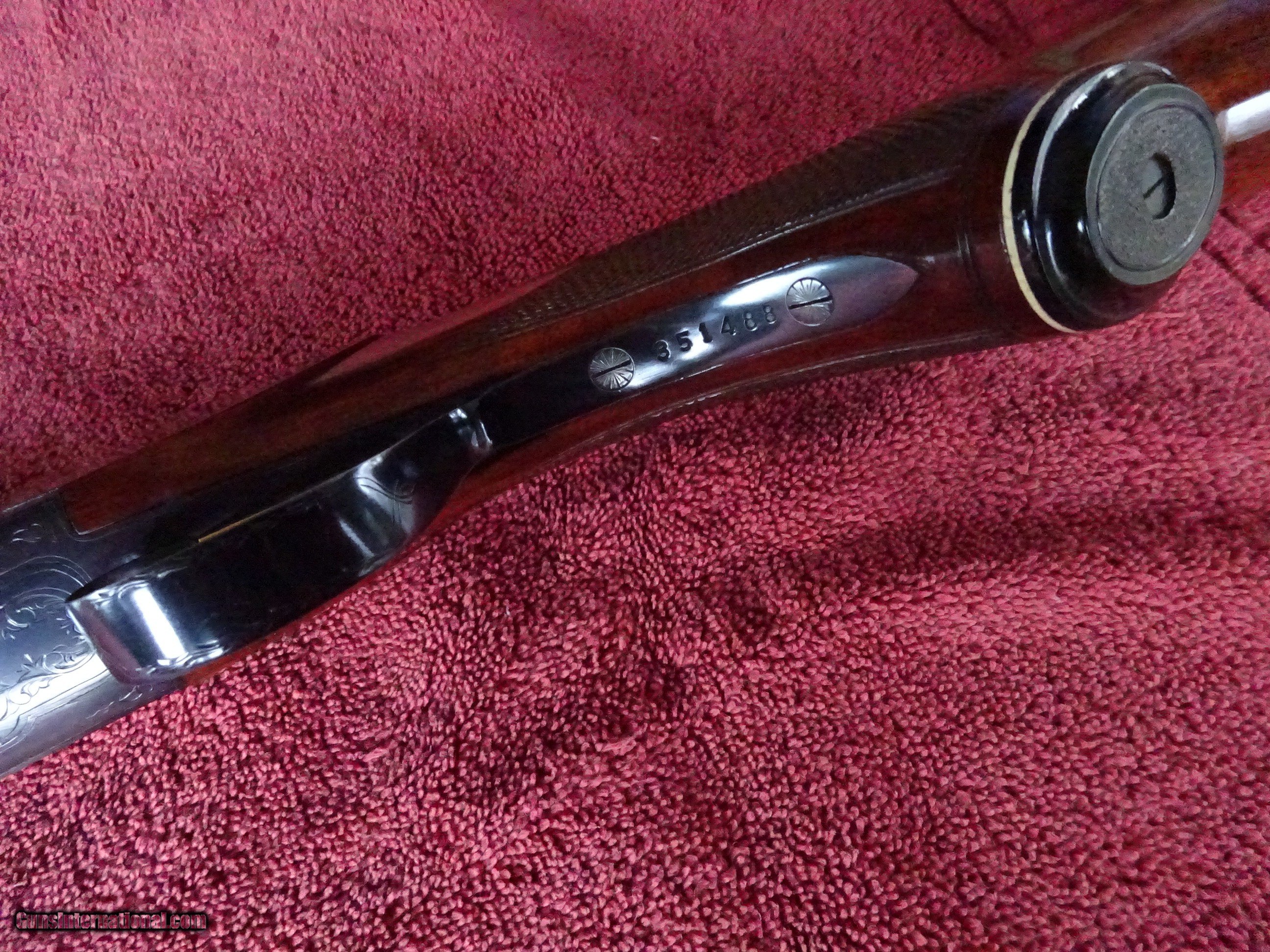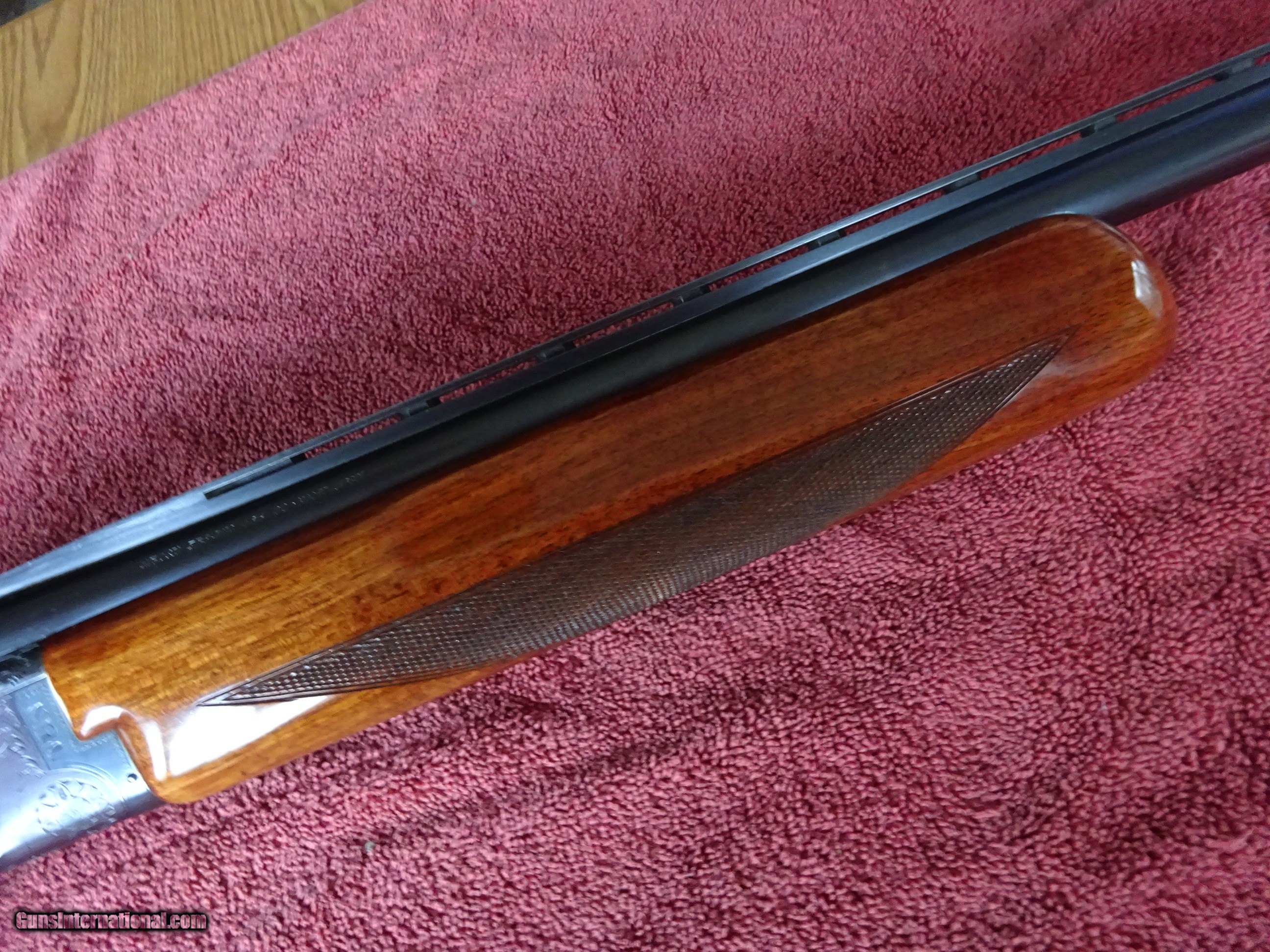 Description: CHARLES DALY, SUPERIOR GRADE 12 GAUGE SINGLE BARREL TRAP GUN. 32" WIDE MATTED RIB, TWIN IVORY BEADS, FULL CHOKE (.035), 2 3/4" CHAMBER, MIRROR PERFECT BORE, 99% OVERALL BRIGHT BLUE. ATTRACTIVE DEEP-CUT SCROLL ENGRAVING, ENGRAVED SCREWS. PISTOL GRIP MONTE CARLO STOCK, BEAERTAIL FOREARM, PERFECT FINE CHECKERING, EXCELLENT WOOD FINISH. ORIGINAL GRIP CAP AND BC MIROKU MARKED RECOIL PAD. MADE IN THE SAME JAPANESE FACTORY THAT MADE WINCHESTER 101 AND BROWNING TRAP GUNS. B C MIROKU - KOCGHI JAPAN, 1963 TO 1976. VERY HIGH QUALITY TRAP GUN IN VERY PLEASING ORIGINAL CONDITION 1 1/4" X 2" X 14 1/2", 7 POUNDS 12 OUNCES. $1450.00 + $70.00 Insured shipping to an FFL address. Layaway is available. See all Pats gun listings on this site! We also have hundreds of ORIGINAL gun company advertising & memorabilia pieces available for sale on our site SPORTINGCOLLECTIBLES. We have no reprints or reproductions. Email for more information. If you need to call, morning or evening is best, and please note the Seller's Inventory number. SOLD |