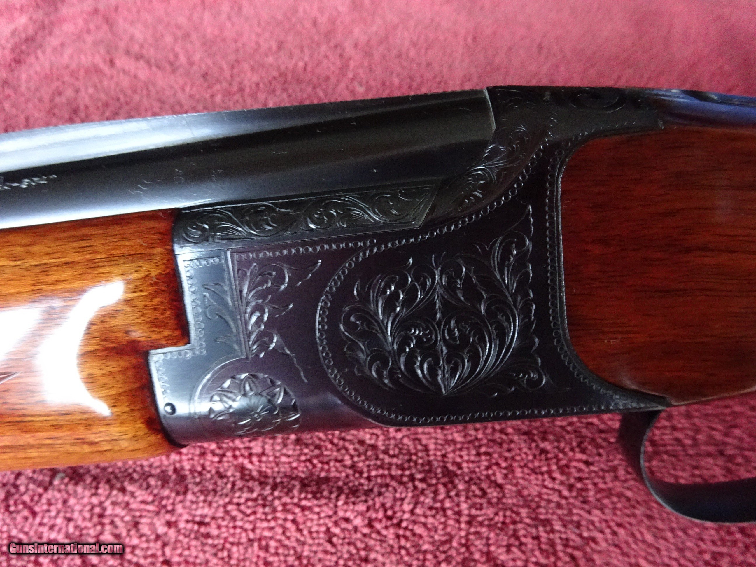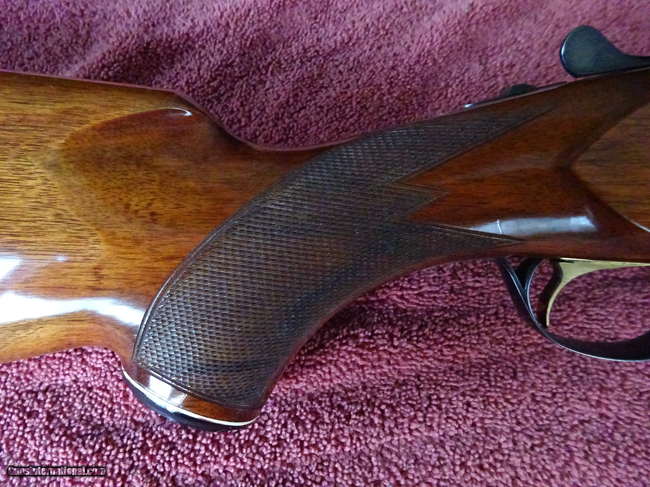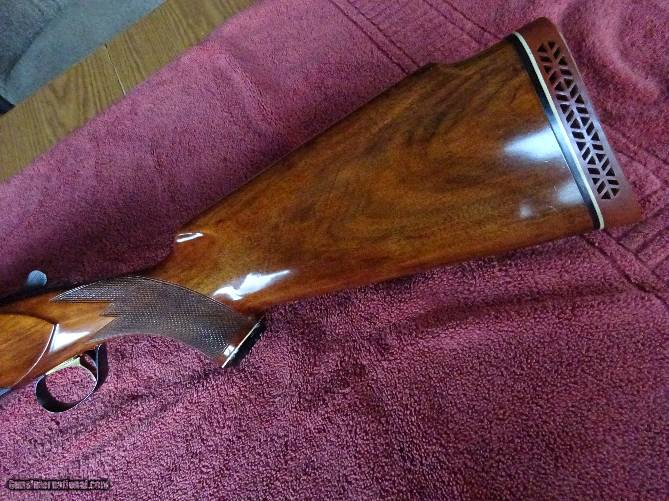 Description: CHARLES DALY, SUPERIOR GRADE 12 GAUGE SINGLE BARREL TRAP GUN. 32" WIDE MATTED RIB, TWIN IVORY BEADS, FULL CHOKE (.035), 2 3/4" CHAMBER, MIRROR PERFECT BORE, 99% OVERALL BRIGHT BLUE. ATTRACTIVE DEEP-CUT SCROLL ENGRAVING, ENGRAVED SCREWS. PISTOL GRIP MONTE CARLO STOCK, BEAERTAIL FOREARM, PERFECT FINE CHECKERING, EXCELLENT WOOD FINISH. ORIGINAL GRIP CAP AND BC MIROKU MARKED RECOIL PAD. MADE IN THE SAME JAPANESE FACTORY THAT MADE WINCHESTER 101 AND BROWNING TRAP GUNS. B C MIROKU - KOCGHI JAPAN, 1963 TO 1976. VERY HIGH QUALITY TRAP GUN IN VERY PLEASING ORIGINAL CONDITION 1 1/4" X 2" X 14 1/2", 7 POUNDS 12 OUNCES. $1450.00 + $70.00 Insured shipping to an FFL address. Layaway is available. See all Pats gun listings on this site! We also have hundreds of ORIGINAL gun company advertising & memorabilia pieces available for sale on our site SPORTINGCOLLECTIBLES. We have no reprints or reproductions. Email for more information. If you need to call, morning or evening is best, and please note the Seller's Inventory number. SOLD |