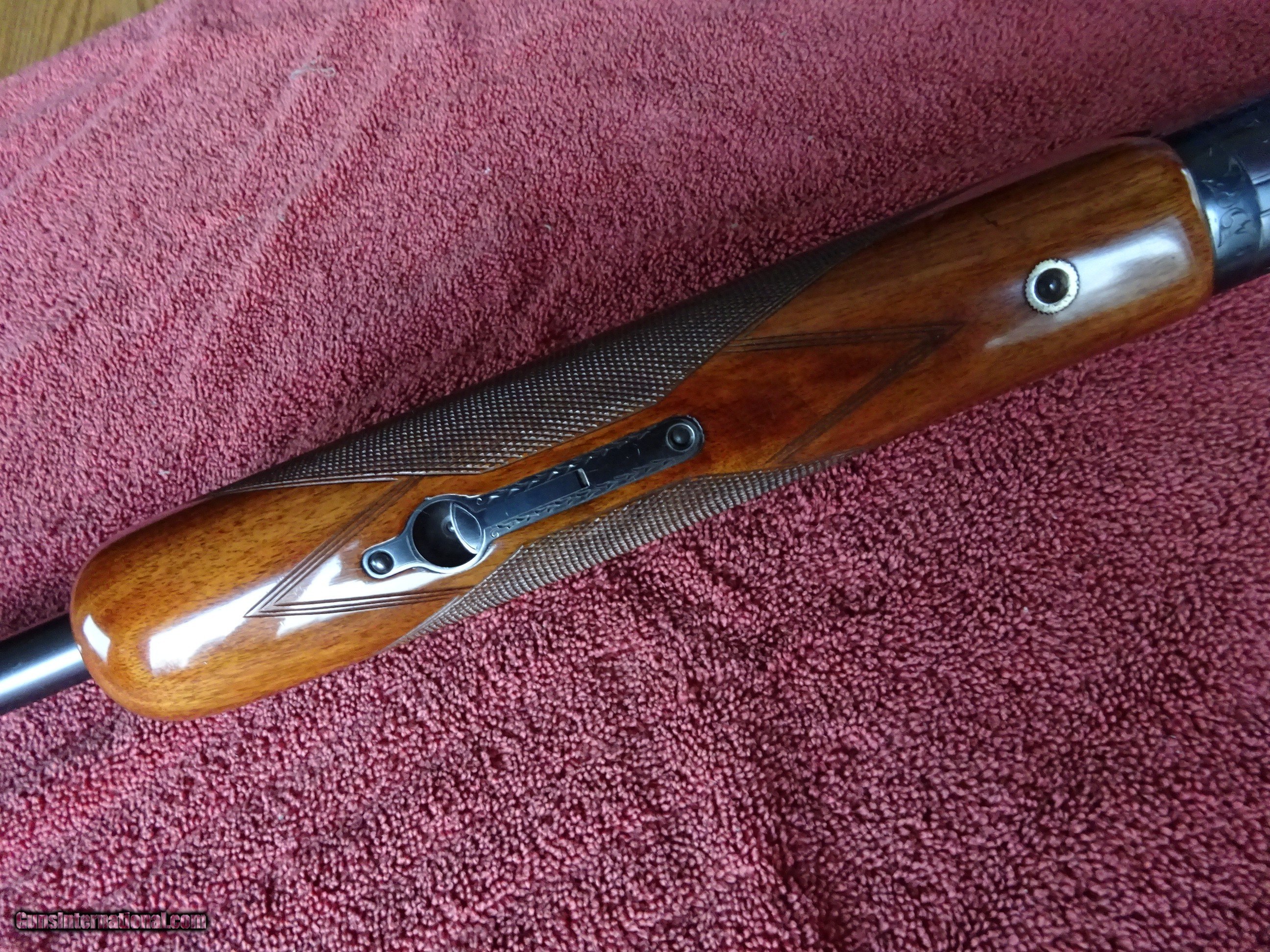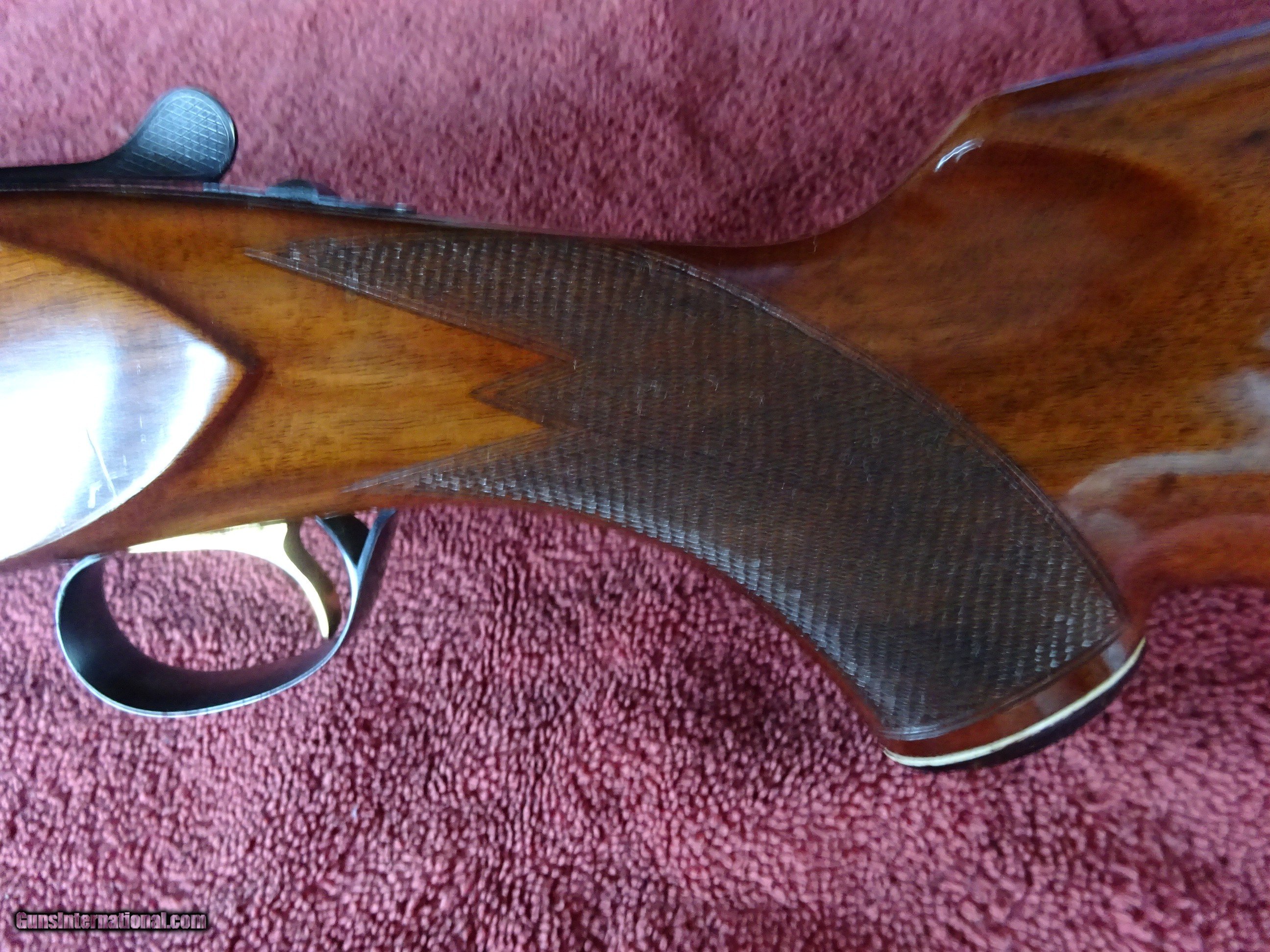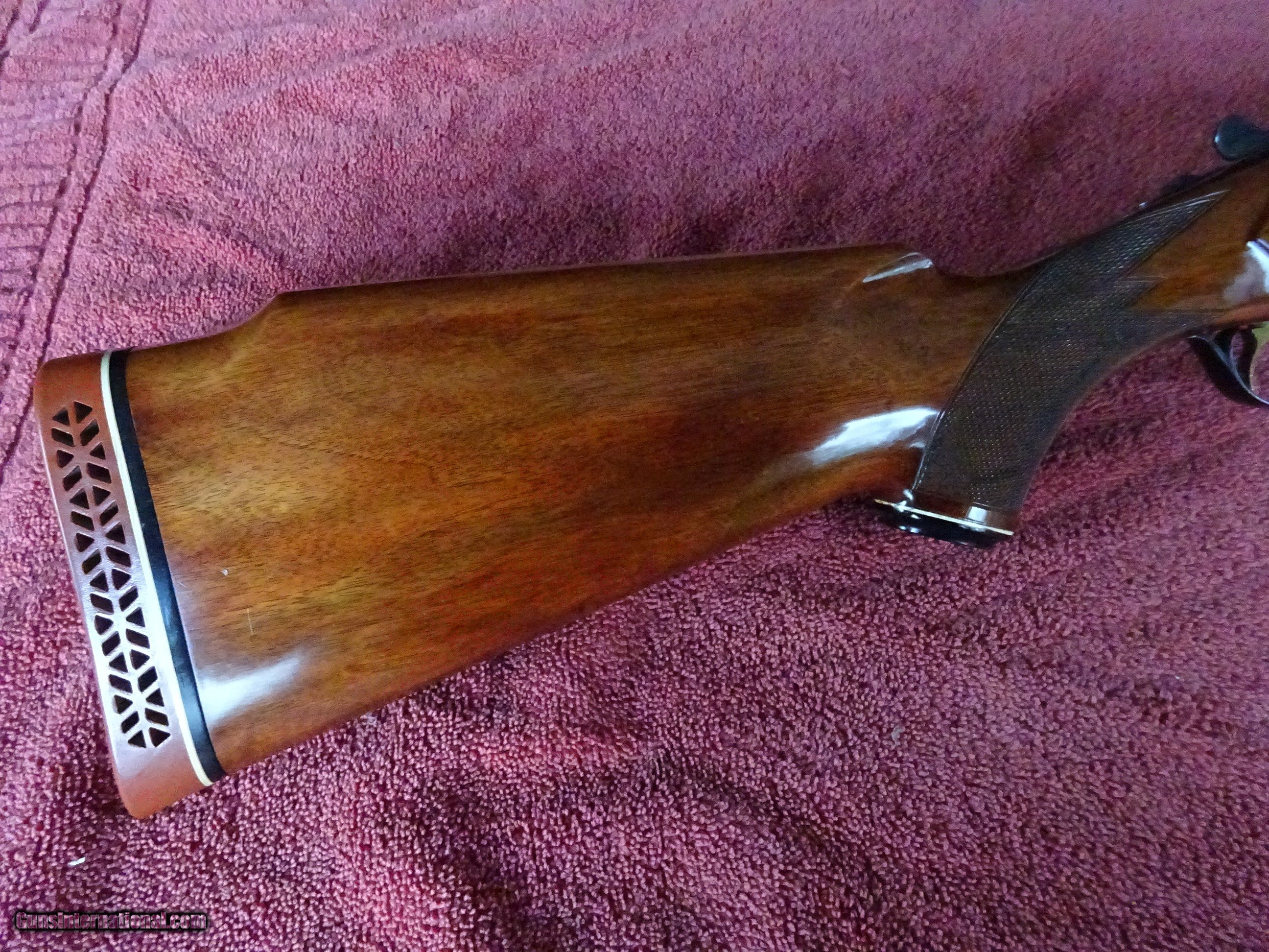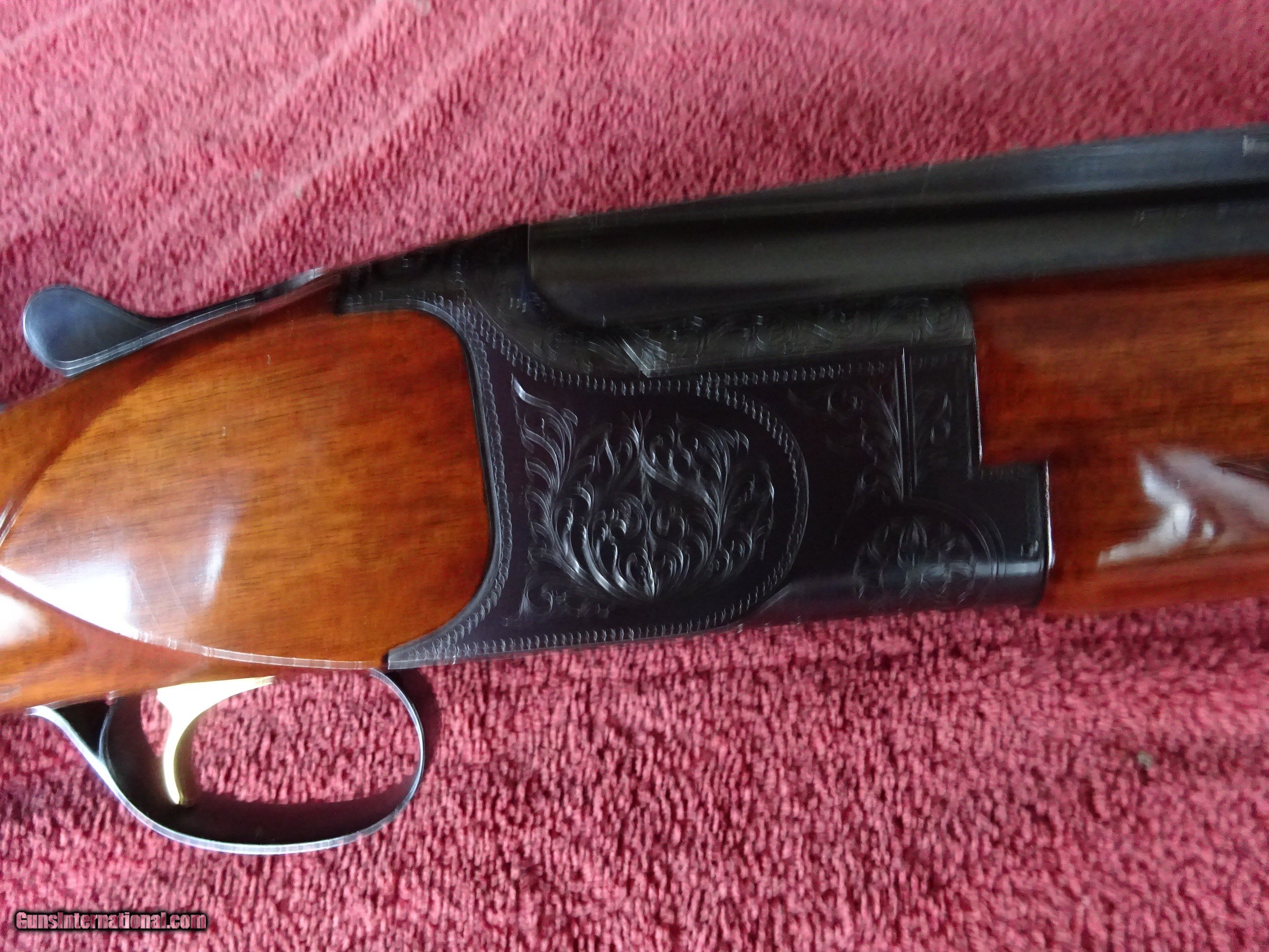 Description: CHARLES DALY, SUPERIOR GRADE 12 GAUGE SINGLE BARREL TRAP GUN. 32" WIDE MATTED RIB, TWIN IVORY BEADS, FULL CHOKE (.035), 2 3/4" CHAMBER, MIRROR PERFECT BORE, 99% OVERALL BRIGHT BLUE. ATTRACTIVE DEEP-CUT SCROLL ENGRAVING, ENGRAVED SCREWS. PISTOL GRIP MONTE CARLO STOCK, BEAERTAIL FOREARM, PERFECT FINE CHECKERING, EXCELLENT WOOD FINISH. ORIGINAL GRIP CAP AND BC MIROKU MARKED RECOIL PAD. MADE IN THE SAME JAPANESE FACTORY THAT MADE WINCHESTER 101 AND BROWNING TRAP GUNS. B C MIROKU - KOCGHI JAPAN, 1963 TO 1976. VERY HIGH QUALITY TRAP GUN IN VERY PLEASING ORIGINAL CONDITION 1 1/4" X 2" X 14 1/2", 7 POUNDS 12 OUNCES. $1450.00 + $70.00 Insured shipping to an FFL address. Layaway is available. See all Pats gun listings on this site! We also have hundreds of ORIGINAL gun company advertising & memorabilia pieces available for sale on our site SPORTINGCOLLECTIBLES. We have no reprints or reproductions. Email for more information. If you need to call, morning or evening is best, and please note the Seller's Inventory number. SOLD |