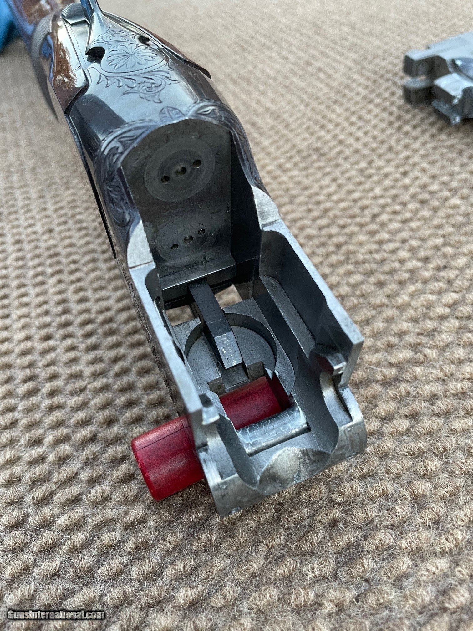 Description: Charles Daly - Miroku Superior Grade 28 gauge, 26" vent rib with mid-bead and both barrels choked skeet. Despite some minor flaws the gun shows very well. Flaws include some blueing loss at tang, some pitting towards the end of the lower barrel and some finish loss on stock resulting from removal of a pad on comb. Small line of old ahesive from pad slightly visible in a couple places and could possibly be removed. All of these deficiencies are visible in pictures. Bore is bright and shiny and blueing on most of the gun remains fantastic. Contact me with any questions and additional photos are available upon request. Buyer pays $35 ground shipping plus UPS Insurance to their FFL in lower 48 only and a three day inspection period is provided. SOLD Shotgun Gauge: 28 Gauge Manufacturer: Charles Daly - Miroku Serial Number: 231663 Barrel Length: 26 LOP: 13 7/8 Rib: Vent Chokes: Skeet Choke Left: Skeet |