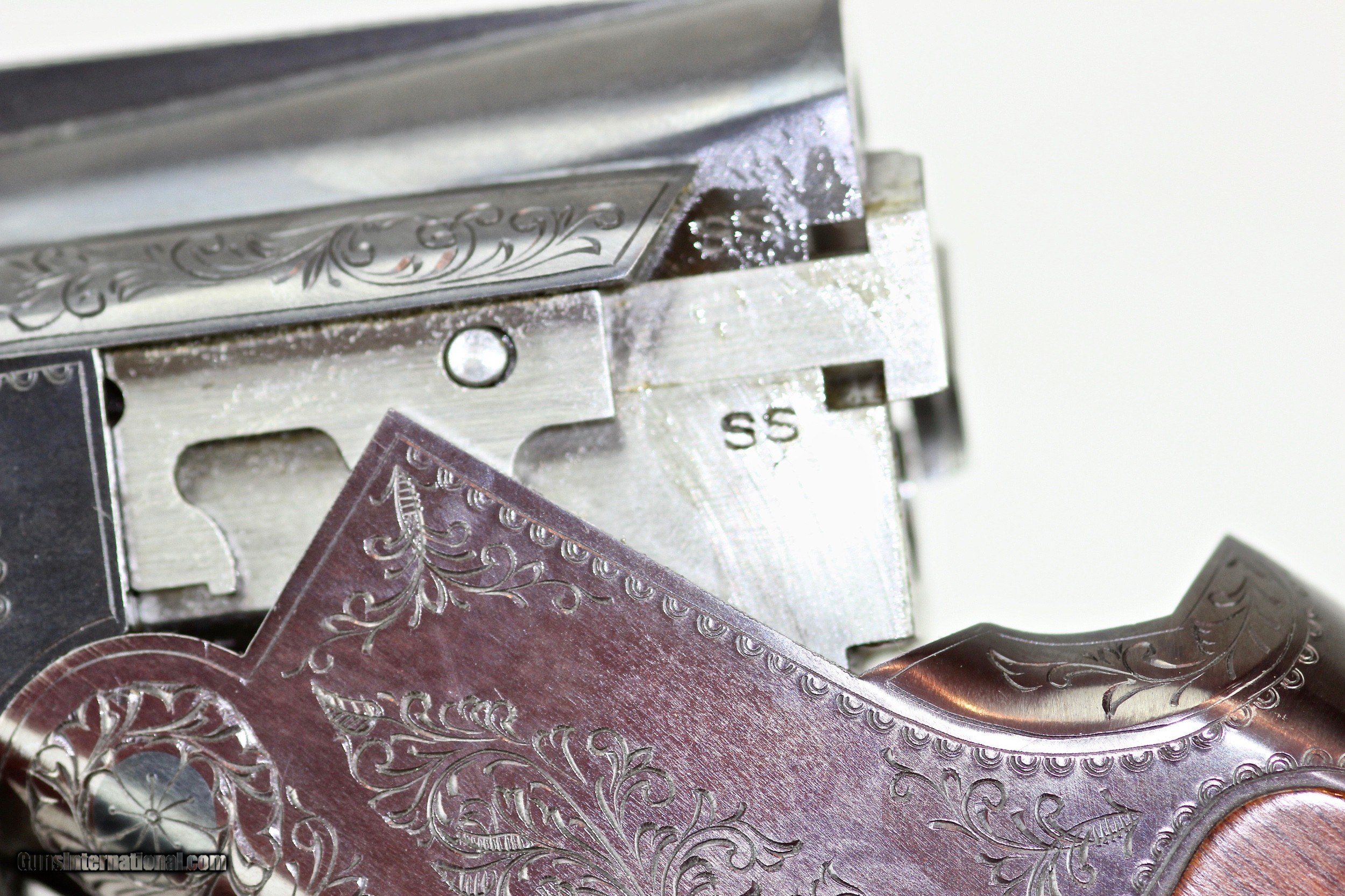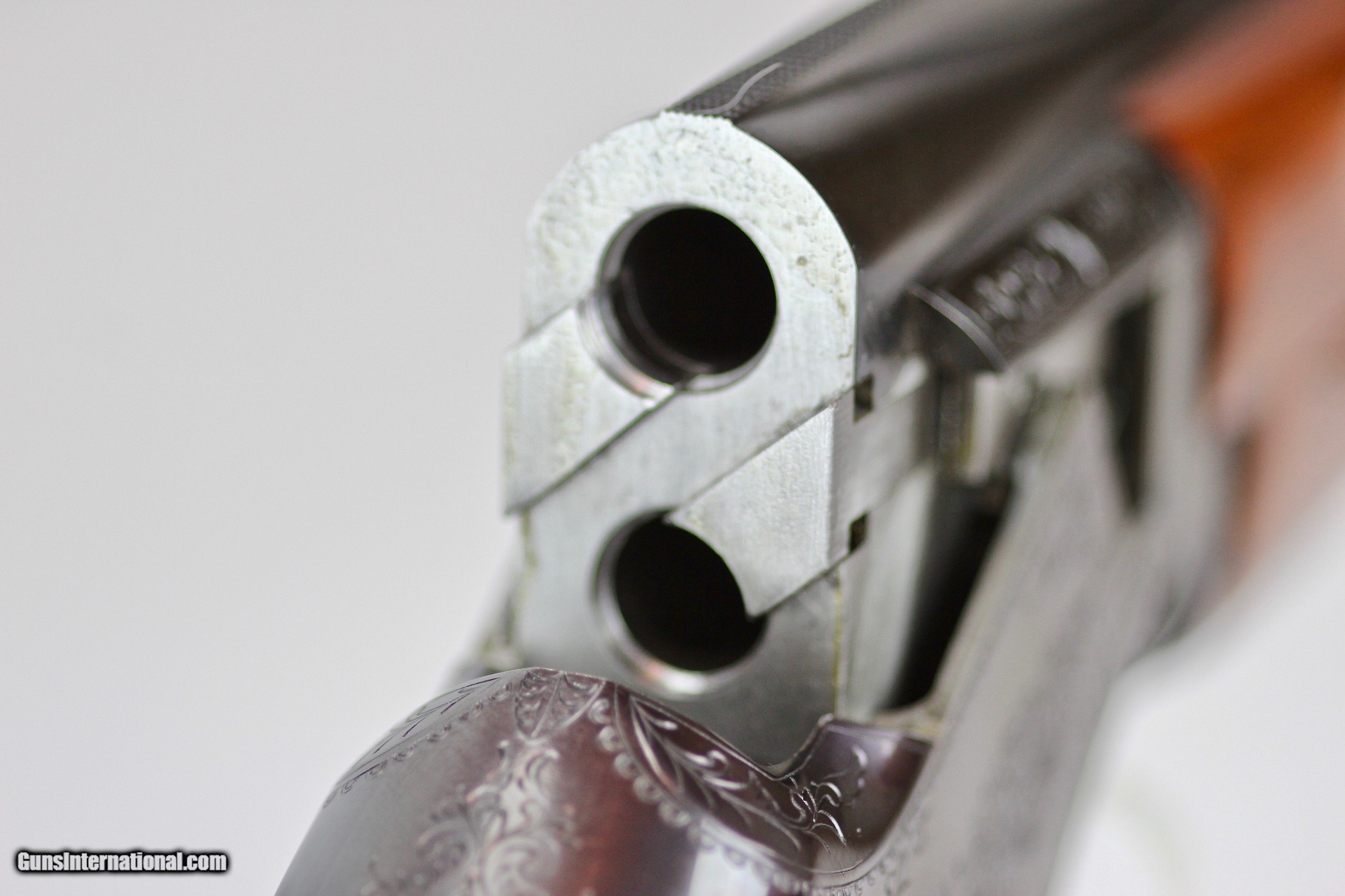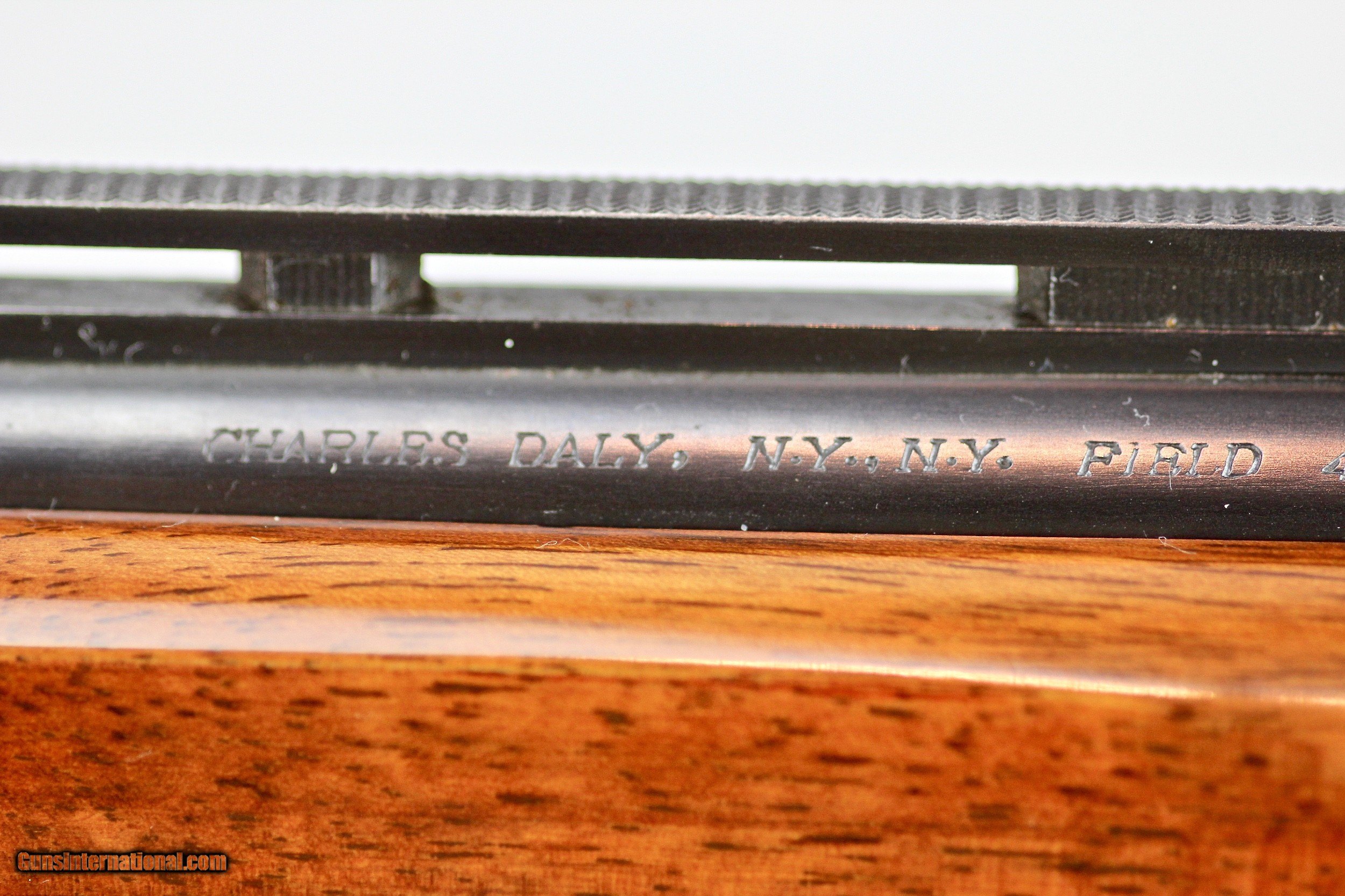 Description: This is an extremely nice Charles Daly Venture Grade Skeet O/U in .410. This shotgun features 26" barrels choked skeet/skeet, a beautifly hand checkered walnut stock and forend, and full figured engraving on the receiver. This gun looks very much like the Browning Superposed models for which Miroku made a number of parts in their last 10 years of production. This gun is in near new condition with the metal lsurfaces at 98% of original finish and the wood stock and forend in excellent condition with only very light handling marks on the left side of the stock. The bores are spotless. In short this is a beautiful little gun that you will be proud to show at the skeet range. SOLD Manufacturer: Miroku Arms Mfg. Co. Model: Charles Daly Venture Skeet O/U Serial Number: 594061 Chambers: 3 Ejectors: Selective Condition: Like New Metal Condition: 98% original finish Wood Condition: Excellent Bore Condition: Spotless Barrels: 26" O/U Action: Box lock Triggers: Single Selective Gauge Info: 410 Stock Comb: 1 5/8" drop Stock Heel: 2 1/2" drop Stock Cast: none Fore End: Hand Checkered Walnut Butt Pad: B.C. Miroku resin LOP: 14 1/8 Rib: Vented double bead Finish: laquer Weight: 6.25 lbs. Manufacture Date: 1963 - 1976 Chokes: Skeet/Skeet Engraving: Full cover on receiver Item Location: Coweta, Oklahoma |