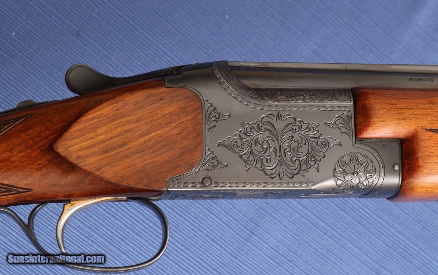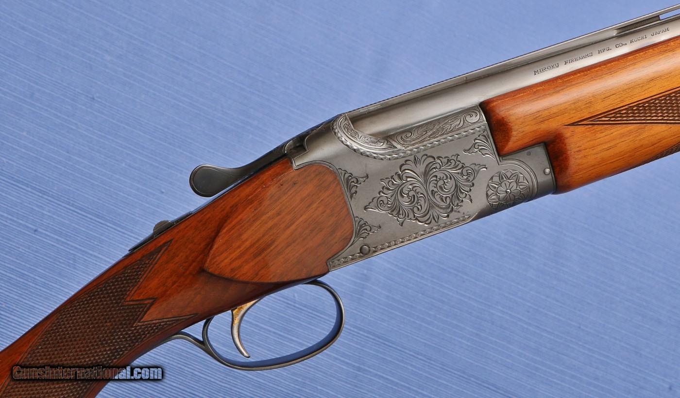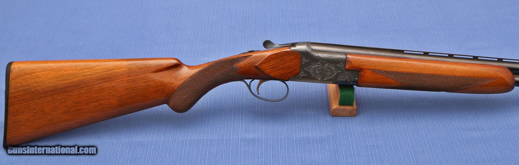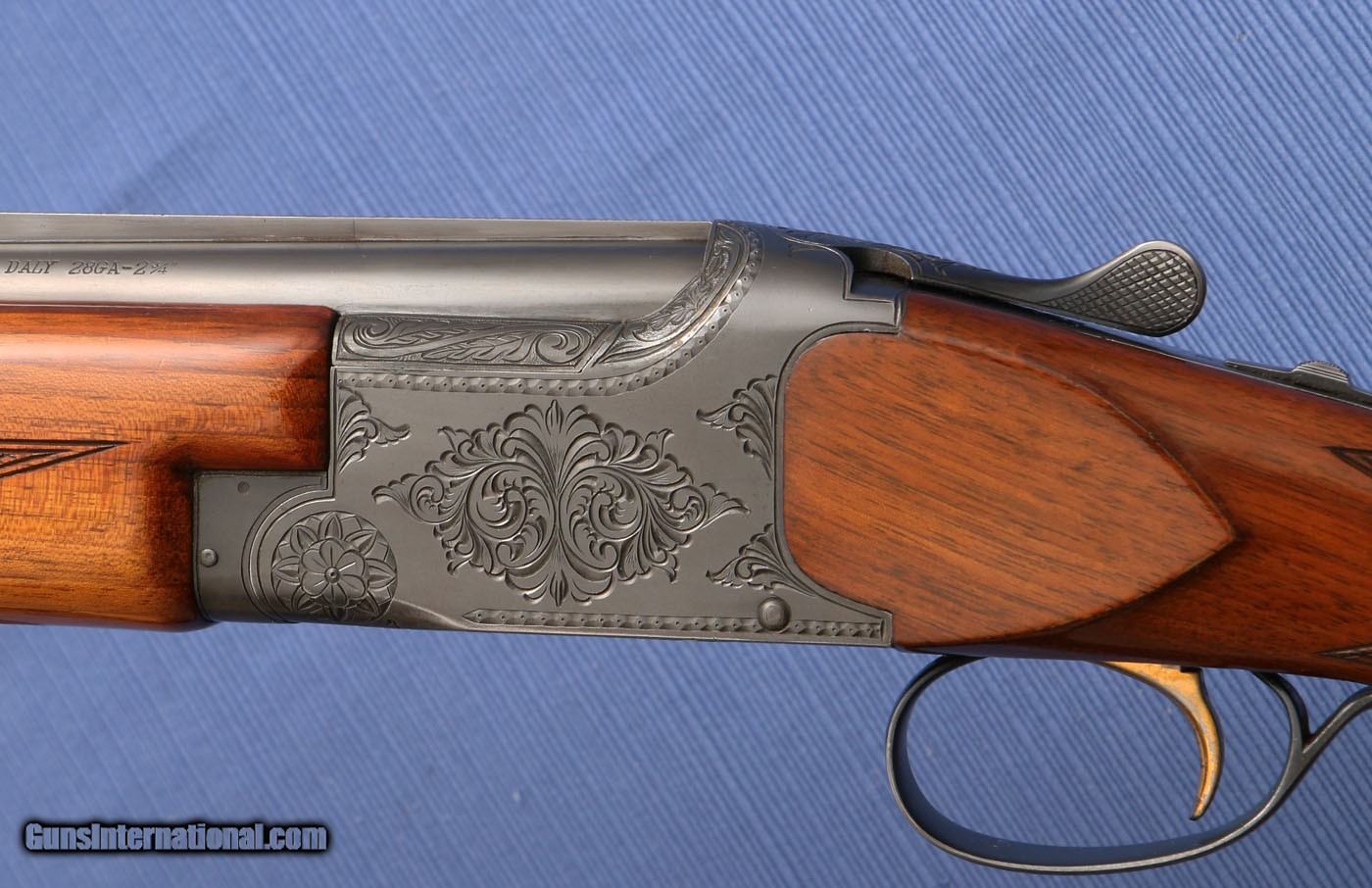 Description: S O L D - - - Pending Chas. Daly - Miroku - "Baby Frame" 28ga, 2-3/4", 26" SK / SK, Ejectors, Single Selective Trigger, LOP 14", Drop 1-1/2" to 2-3/8", Very Slight Cast Off, Weight - 5 lbs. 13 oz. Great Example of a RARE Gun. Excellent Condition. Some thinning of blue in high edge areas. Stocks are 98+% with just a scattering of very minor handling marks