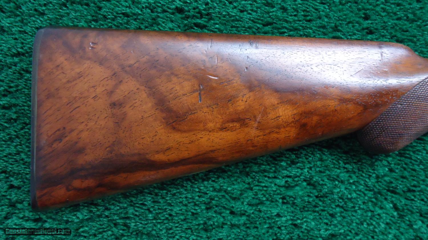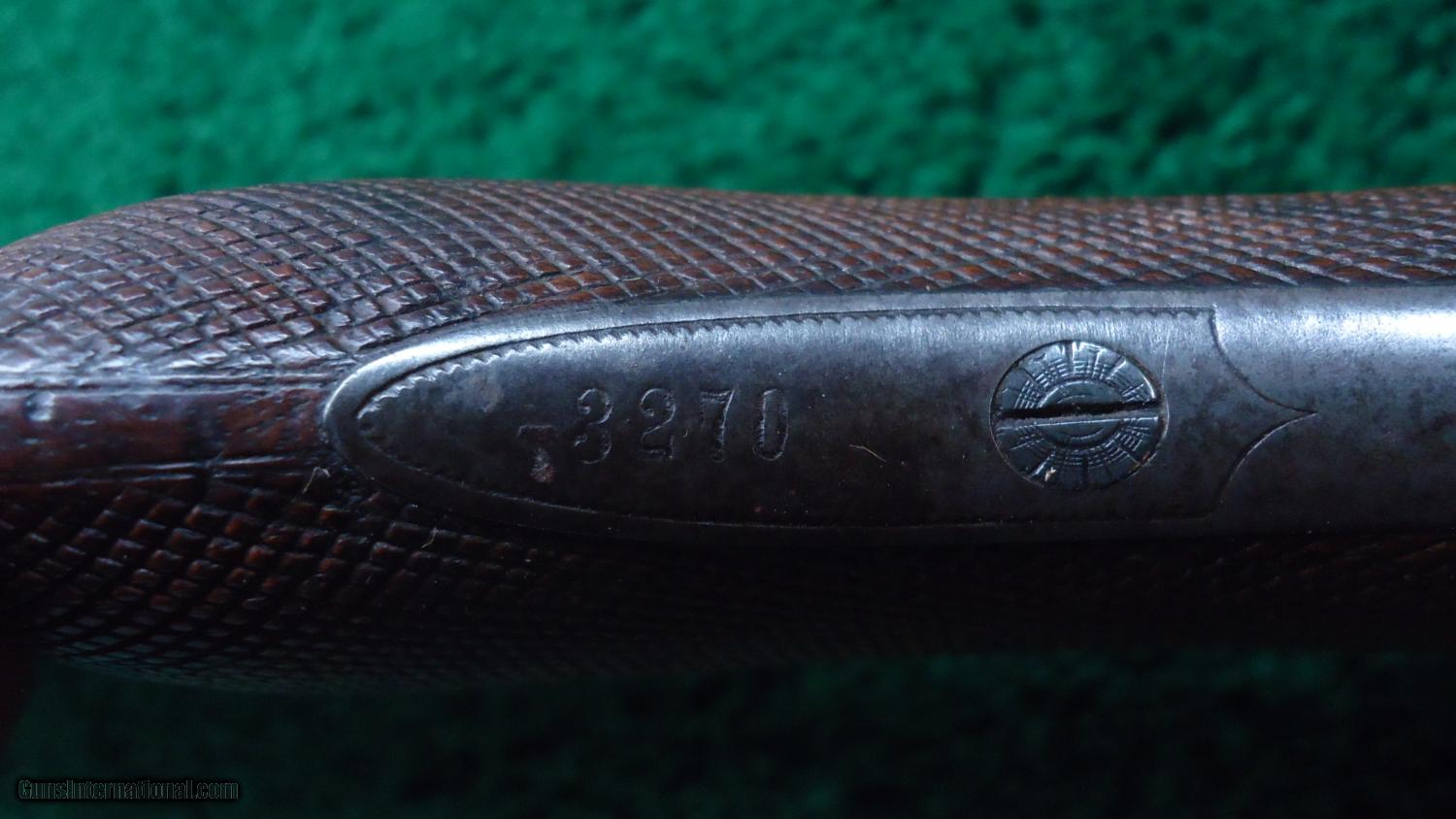 Description: This is a Charles Daly Prussian built SxS hammer 10 ga with 2-7/8" chambers. 32" bbls are an antique brown color. Good smooth metal. 2 light dings in the right hand bbl. Bores are good to VG, shinny and some light scattered pitting. Good solid lockup. Frame has Charles Daly on the sideplates. Smooth metal with a grey color. Wood is actually exceptional for the age of this gun. Nice fitting around the sidelocks. No missing wood in the delicate areas. Some hunting mars and dings. Original buttplate. Charles Daly's were noted for being superb shotguns! Leroy Merz Antique Firearms specializes in antique and vintage Winchesters and other fine American firearms. Since 1965 Mr. Merz has taken part in the world of firearms and has been a contributor to many well known reference books. Just recently we mailed the 126th edition of our privately-published catalog. We have hundreds of additional guns in every price range at our home online. Search for Merz Antiques in google. SOLD Antique: Yes |