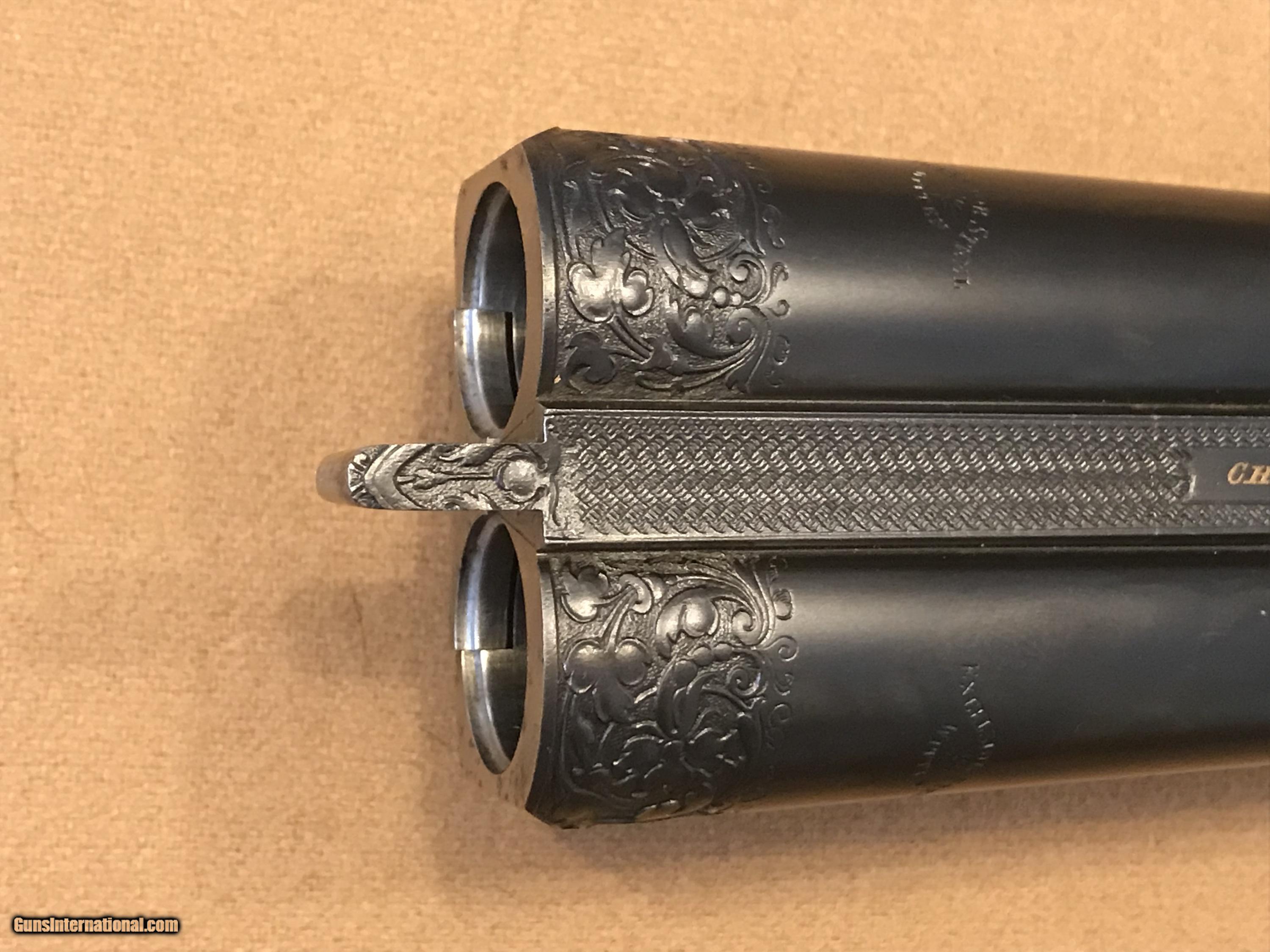 Description: CHARLES DALY (LINDER) *** REDUCED TO SELL - LOWEST PRICE****. This is a beautiful, highly sought after gun made for Charles Daly by Linder. H.A. Linder guns are legendary for quality, beauty and function. It is a Diamond Quality gun with S/N 1063 engraved on the bottom of the barrels. LOP: 14 1/2". This gun is a 12 gauge with side-by-side barrels that are 30" long with ejectors. This Charles Daly (Linder) is in Excellent condition and has a single selective trigger, leather pad on the butt and a checkered stock. It is a beautiful gun; deeply engraved in a floral pattern with 6 Gold inlays of a dog and birds, has 2 Ivory sight dots and a blank initial plate on the stock. It comes with a leather case that includes a cleaning rod, cleaning tools snap caps and an oil bottle. SOLD Curio/Relic: Yes Manufacturer: H.A. Linder Model: Side-by-Side Serial Number: S/N 1063 Condition: Excellent Gauge Info: 12 gauge LOP: 14 1/2 |